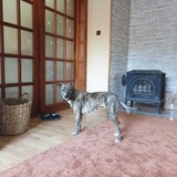 Dobře vychází POUZE se psy a fenkami submisivní povahy. Přesto bychom byli klidnější a rádi, kdyby šla do adopce do rodiny, kde by byla jedináčkem. Rozhodně není vhodná do domácnosti s kočkou. Problém je i s vypouštěním na volno. Meggie je lovec, tudíž je na místě opravdu velká opatrnost a nelze ji pouštět z vodítka! I proto jsme se rozhodli jí najít umístění v bytě, abychom se nemuseli bát, že někomu uteče ze zahrady u domu, o což se občas pokouší. Pravidelně s ní navštěvujeme individuální tréninky, kde nacvičujeme povely jako sedni, ke mně, chůzi u nohy, prolézání tunelem, chození po překážkách ve výšce atd. Meggie tak udělala obrovské pokroky a jsme na ní opravdu pyšní, nicméně na vodítku je to tahoun.