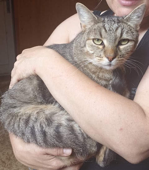 Toník je dvouletý tichý obr. Je velmi hodný a k člověku kontaktní. S ostatními kočkami vychází, ale větší skupina koček mu moc nevyhovuje, i když se nijak agresivně neprojevuje, jejich společnost nevyhledává. Kocourek byl dříve venkovní, ale zvykl by si i doma, kde bude mít konečně toho svého člověka. Má rád míčky a ještě raději baští. Ten, kdo adoptuje Toníka, získá přítele, který ho bude tiše následovat, nebude se dožadovat mazlení za každou cenu, ale bude moc rád, když se mu bude páníček věnovat.