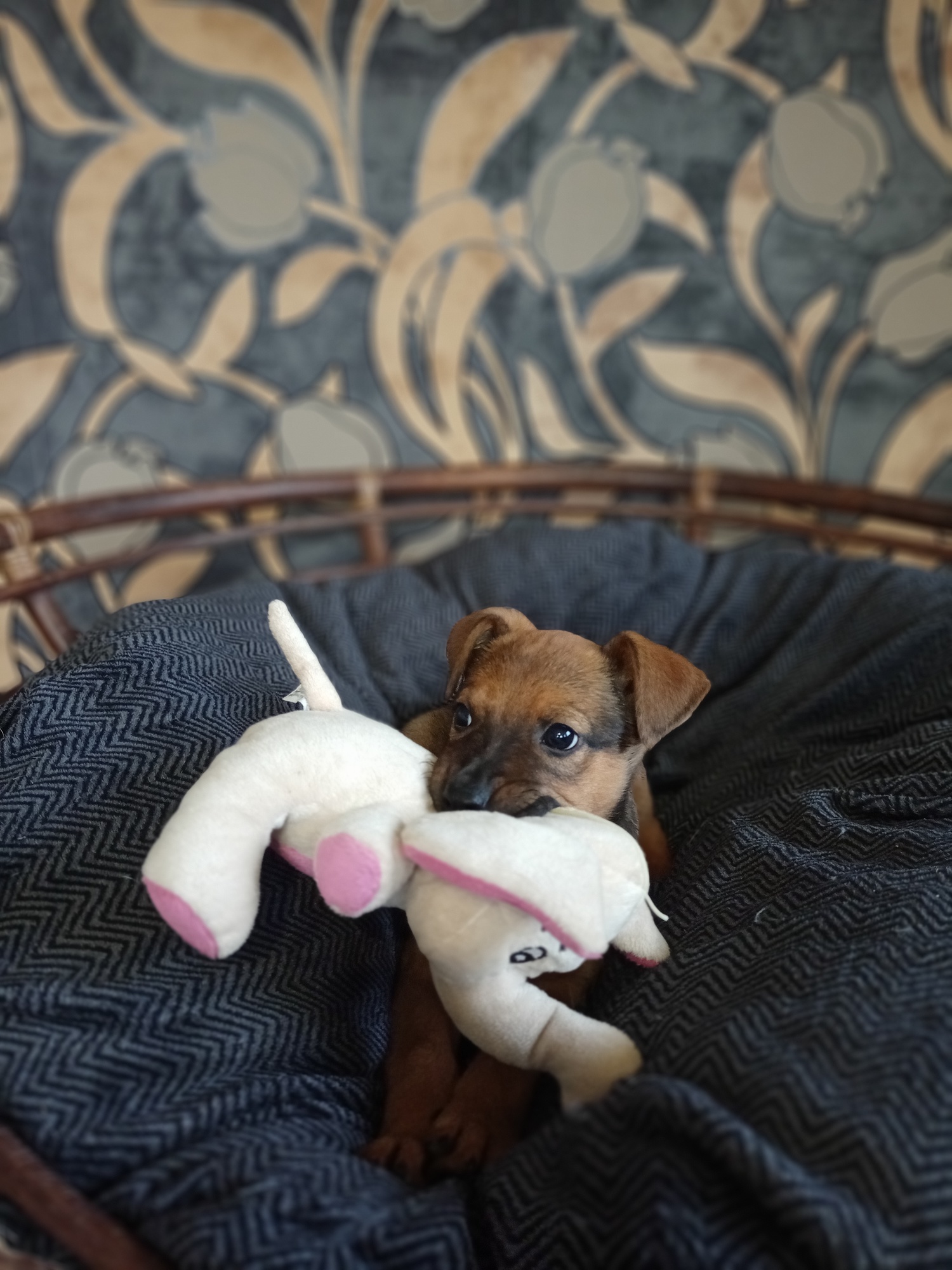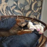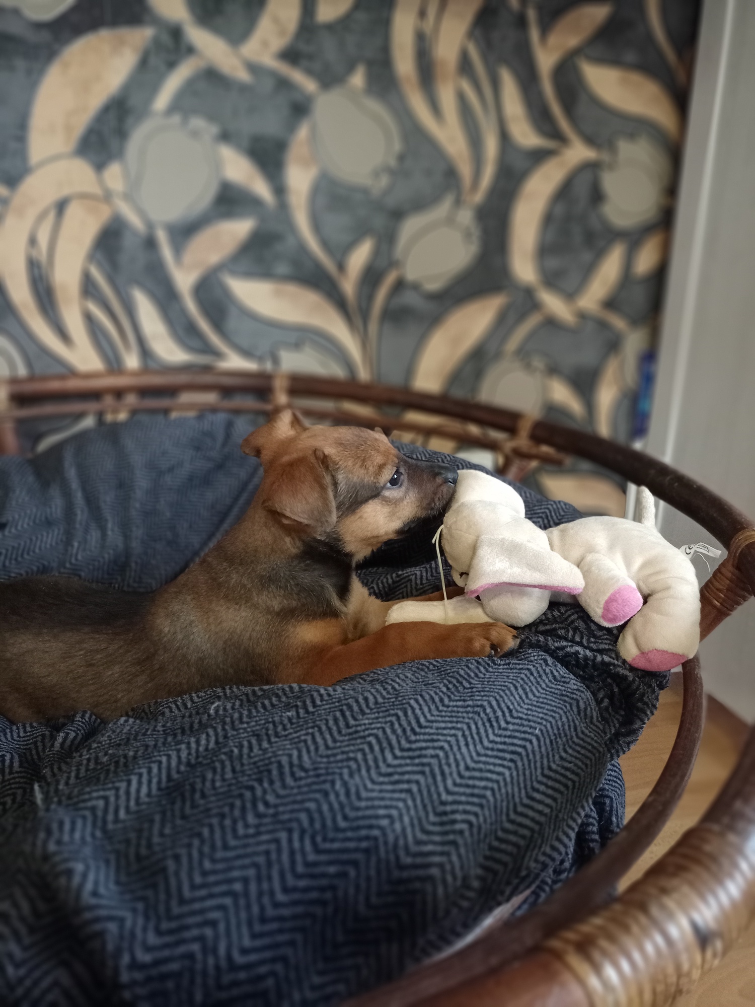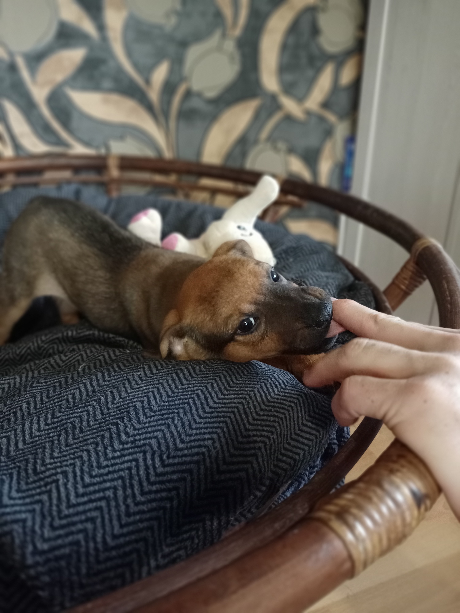 Gamma je společně s Gandhim jedno z nejmenších štěňátek, přesto jejím sourozencům není radno si s ní zahrávat :-D Je vzrůstem malá, ale zato velká bojovnice :-) Gamma je opravdu velmi roztomilá, kontaktní a šijou s ní všichni čerti :-)