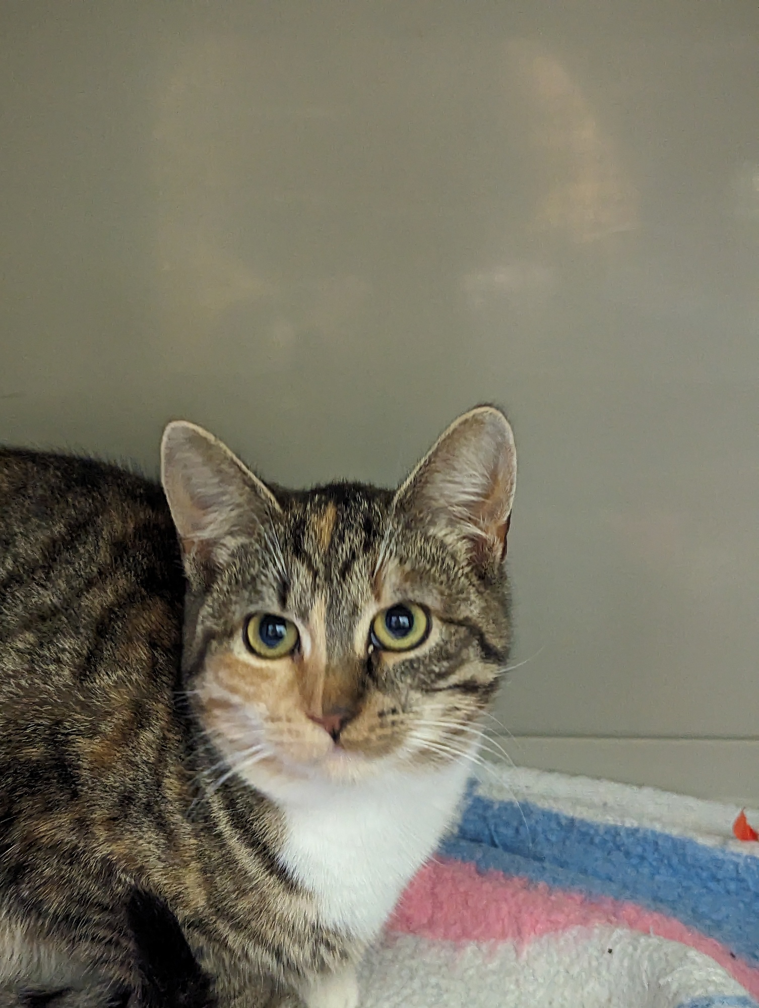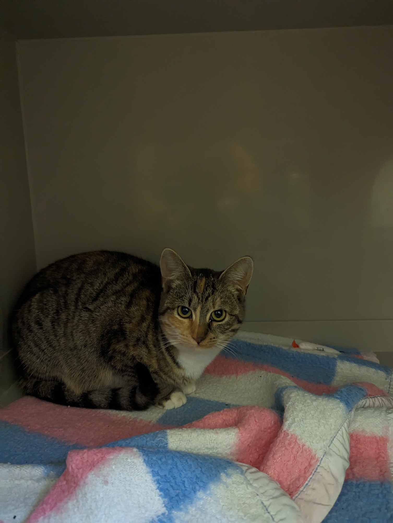 Nádherná kočička s úžasnou povahou kočkopsa. Bude u všeho asistovat stejně jako to dělala své krmičce v zahrádkářské kolonii. Zatím je v karanténě, brzy o ní přineseme více informací.