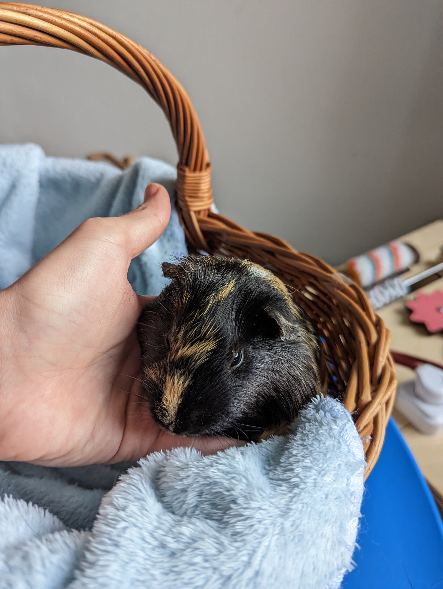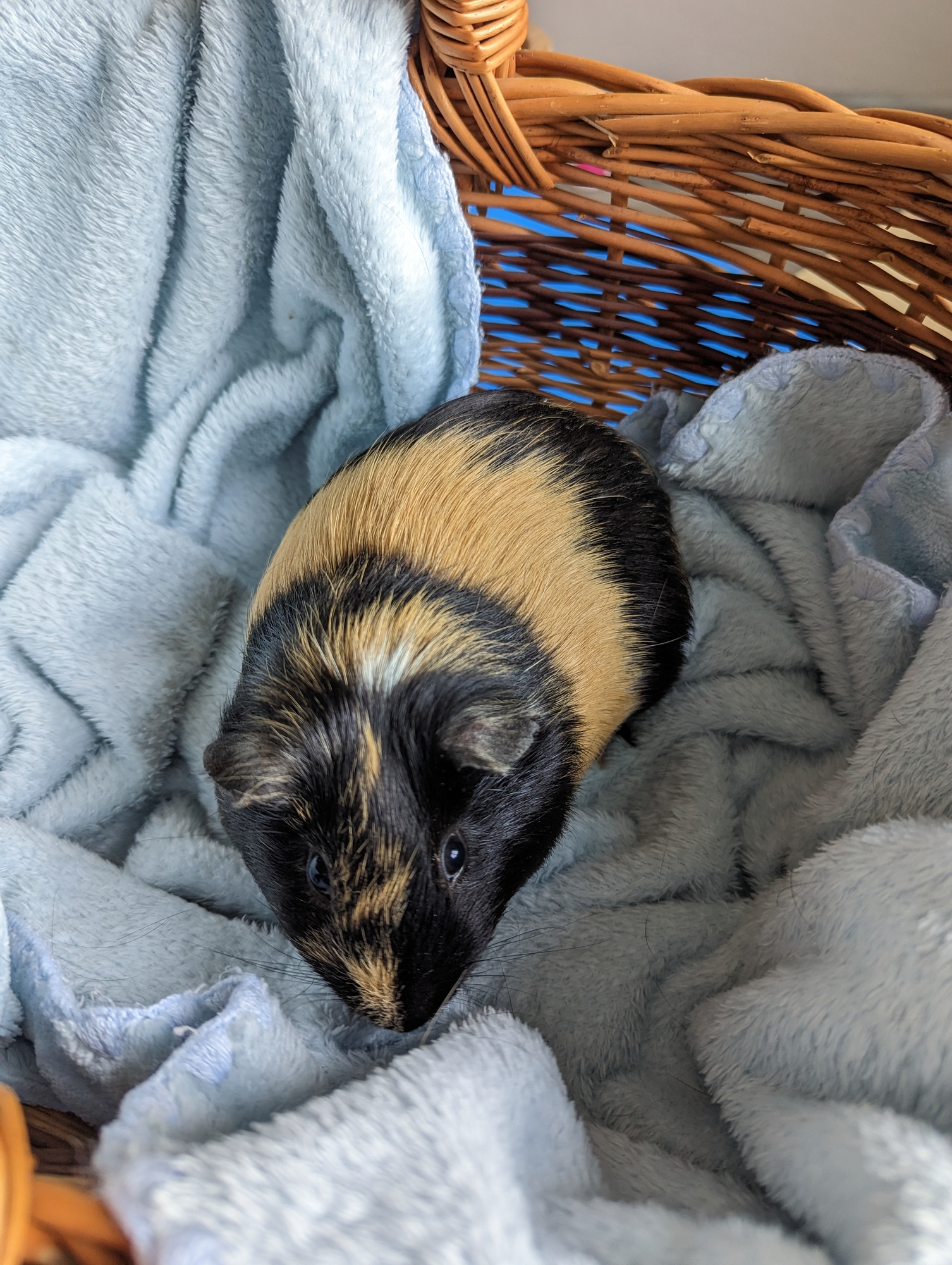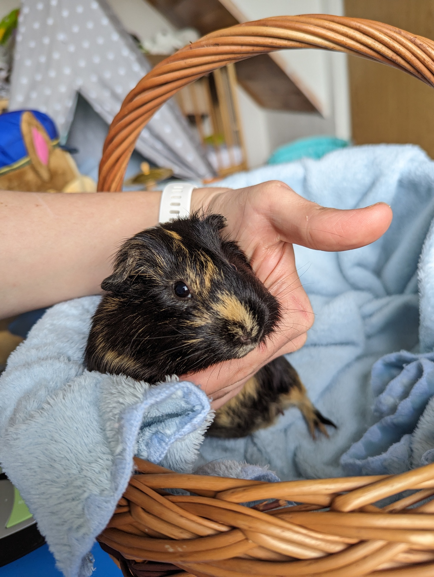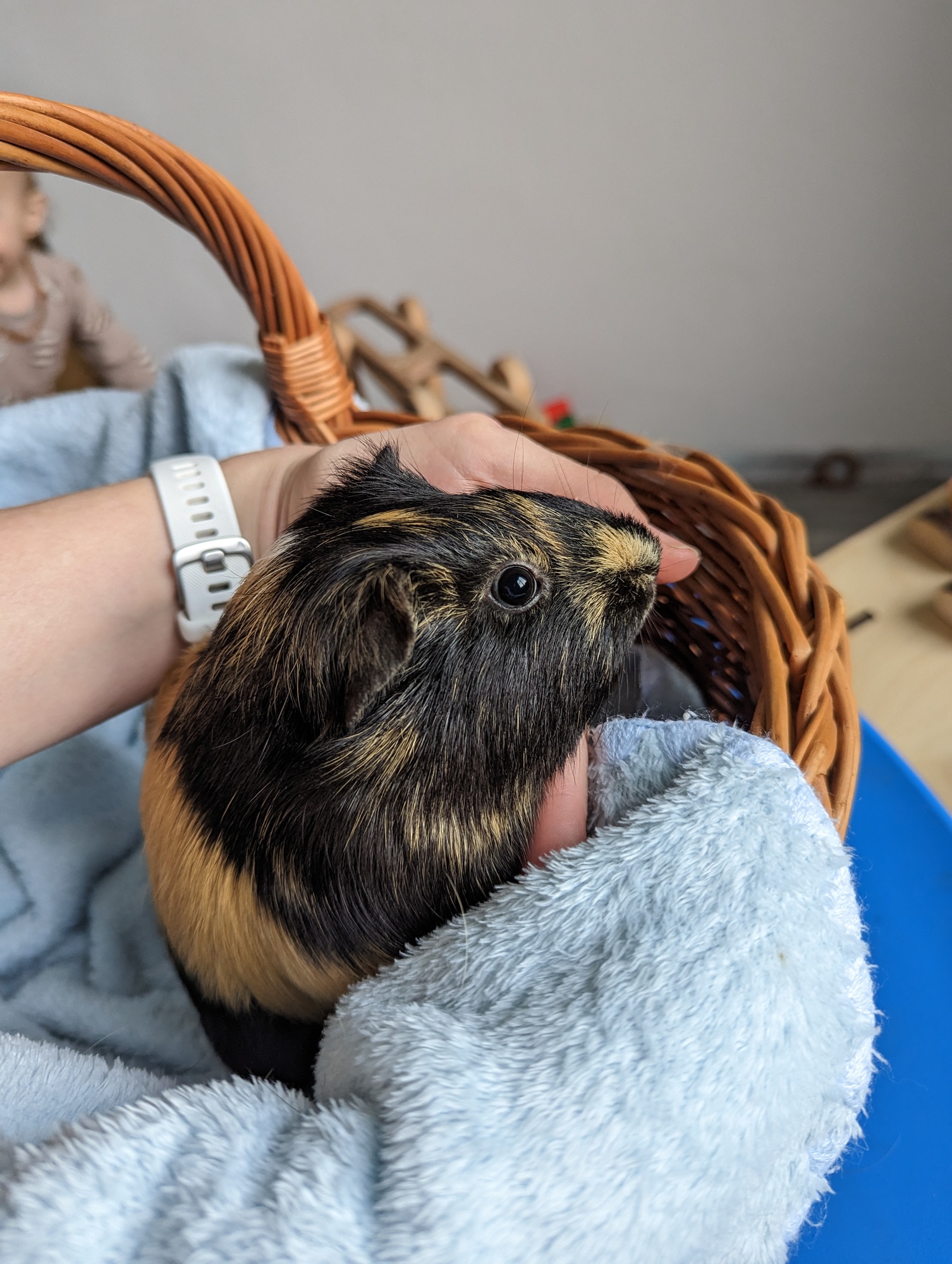 Oreo byla nalezena spolu s dalšími asi 20 morčaty u Rychnova u Jablonce. Patřila mezi ty mladší morčata, která nebyla tolik zasažena svrabem. U nás porodila dvě mláďátka. Má se čile k světu, jen je dost lekavá, bude to chtít mít s ní trpělivost a vymazlovat ji.