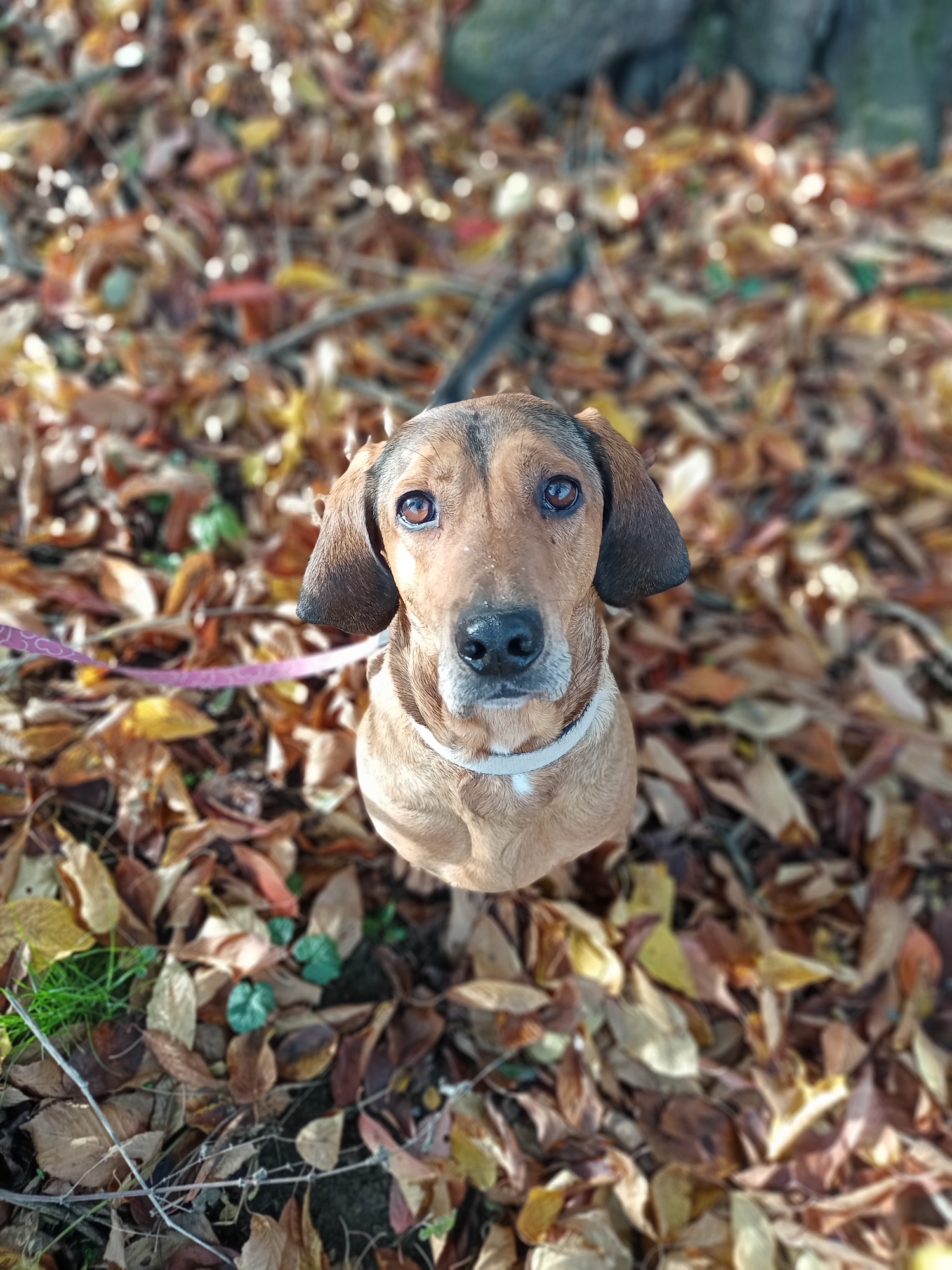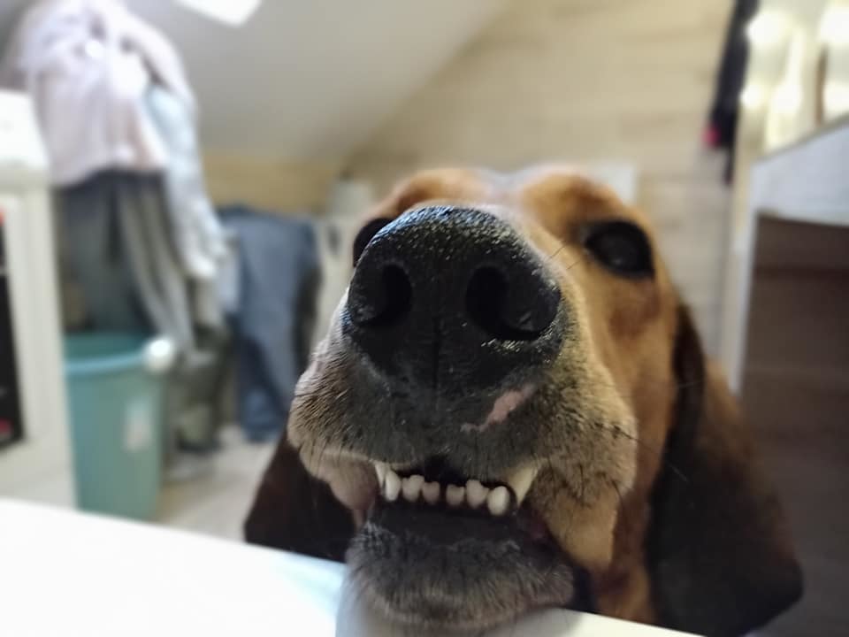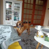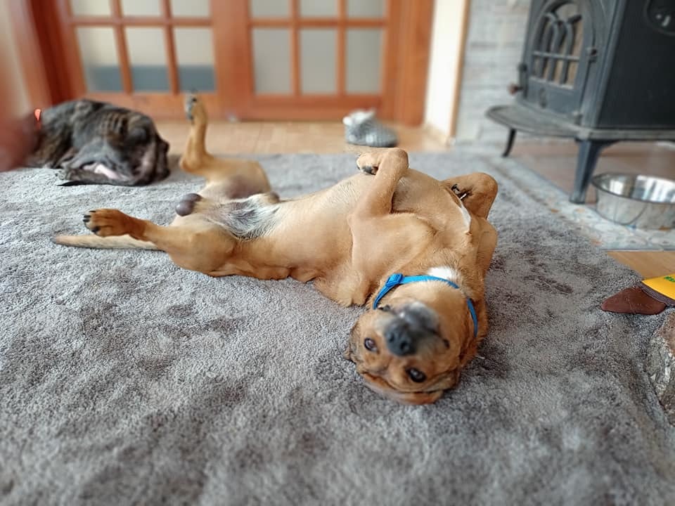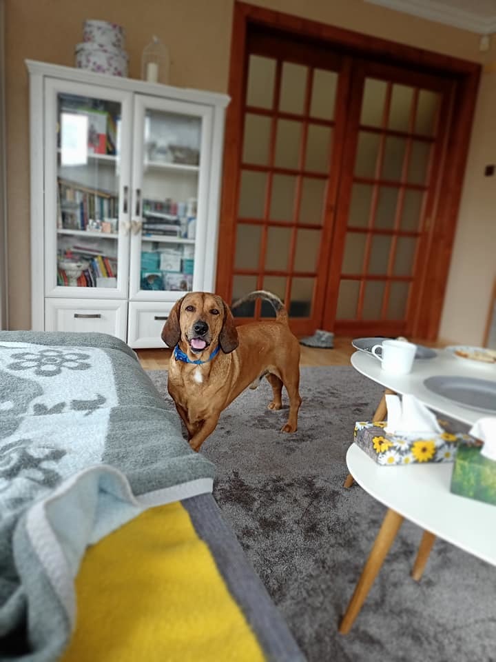 V původní rodině měl za sebou základní výcvik a hony. Zřejme proto si moc rád čmuchá po celé zahradě.