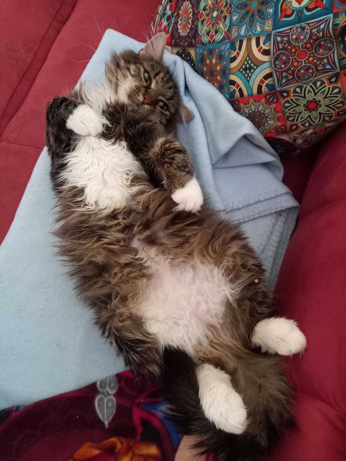 Kocourek Fanfán je krasavec, máte chuť pomuchlat jeho kožíšek. Fanfánek se hrozně moc bál, ale v dočasce už roztál jako máslo na pánvičce. Z drsného pouličního kocoura se stal mazlíček. Užívá si přítomnost dočaskářky i jiných koček. Možná je kříženec mainské mývalí nebo něčeho podobného. Je velmi komunikativní.