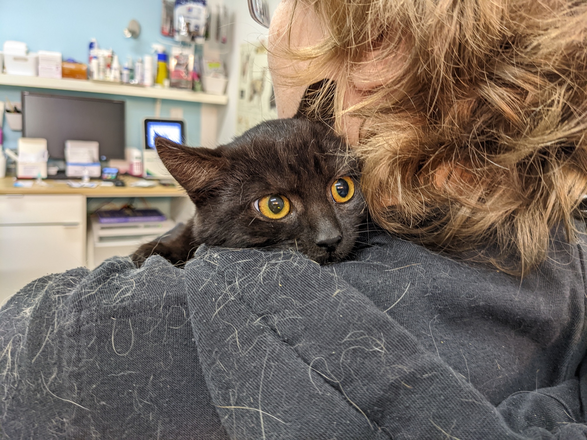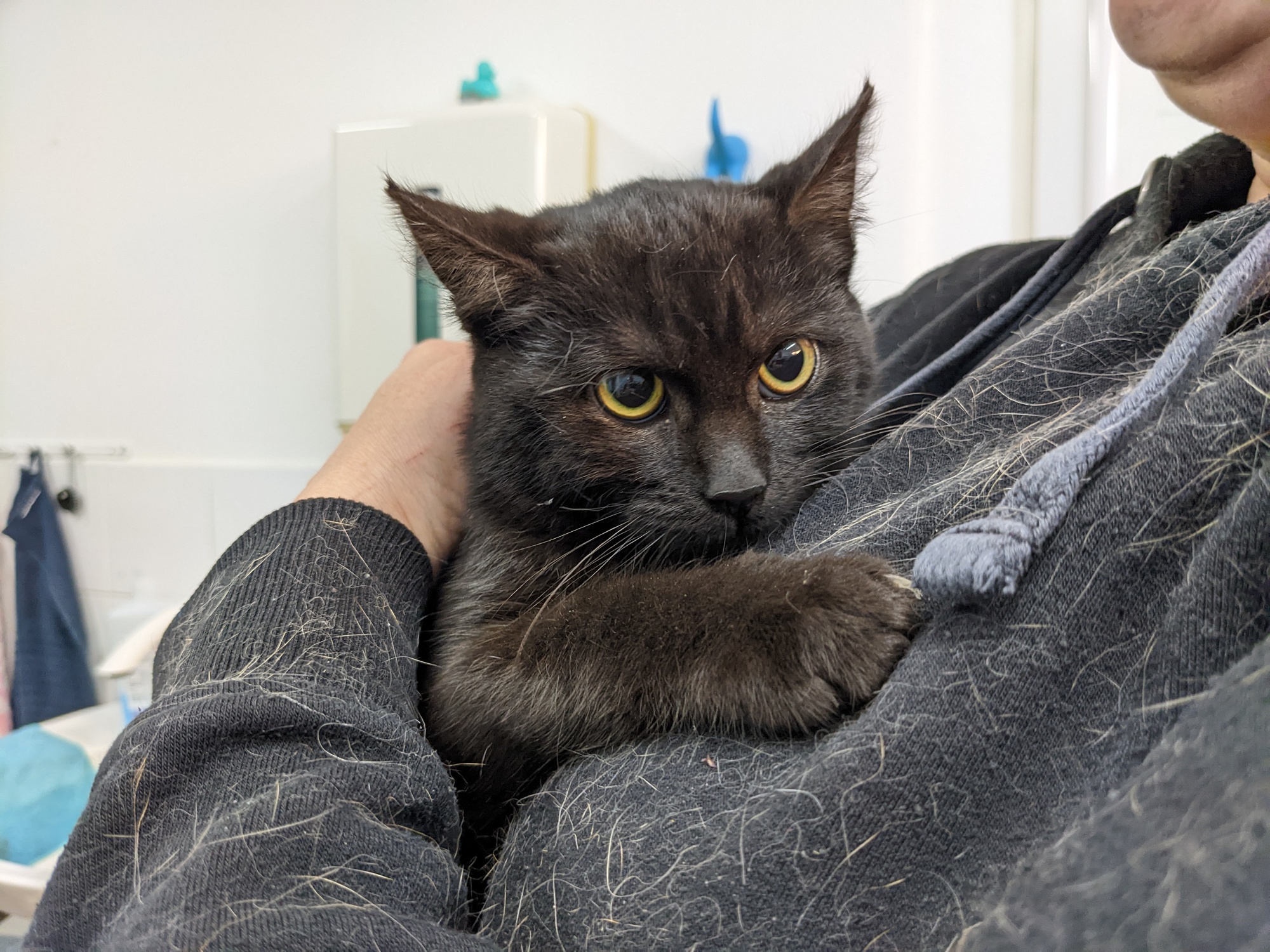 Beatrice je odrostlé kotě, holčička, která je zatím bázlivá, stejně jako bráška. Měla štěstí, že ve firmě, kde se vyskytovala, našla v zaměstnankyních dobré duše. Ty jí krmily a umožnily, aby její život neskončil pod koly aut. Beatrice potřebuje nutně domov, aby se mohla vymazlit, protože to ve velkém depozitu není uplně možné. Dočasková teta má na starosti mnoho kočičích duší.