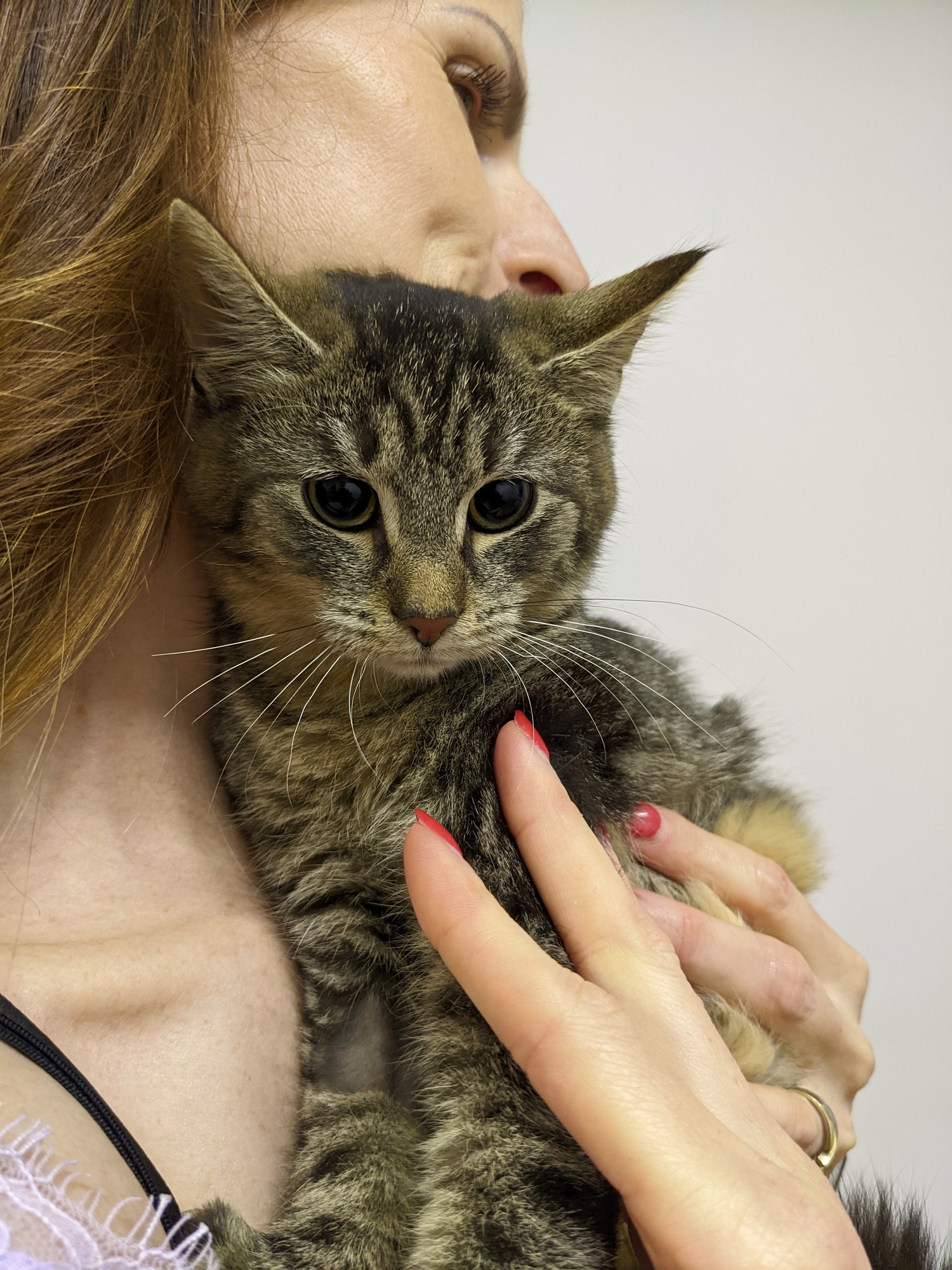 Koudík je mazlík, umí se zprávu ychle rozkoukat. Z vrhu je nejmenší, momentálně je na jaterní dietě. Doufáme, že špatné výsledky způsobilo masivní začervení a jaterní dieta nebude nutna na trvalo. Stejně jako bráchové bravurně zvládá WC. Po druhé vakcinaci bude čekat na nový domov v kočičí kavárně v Liberci :)