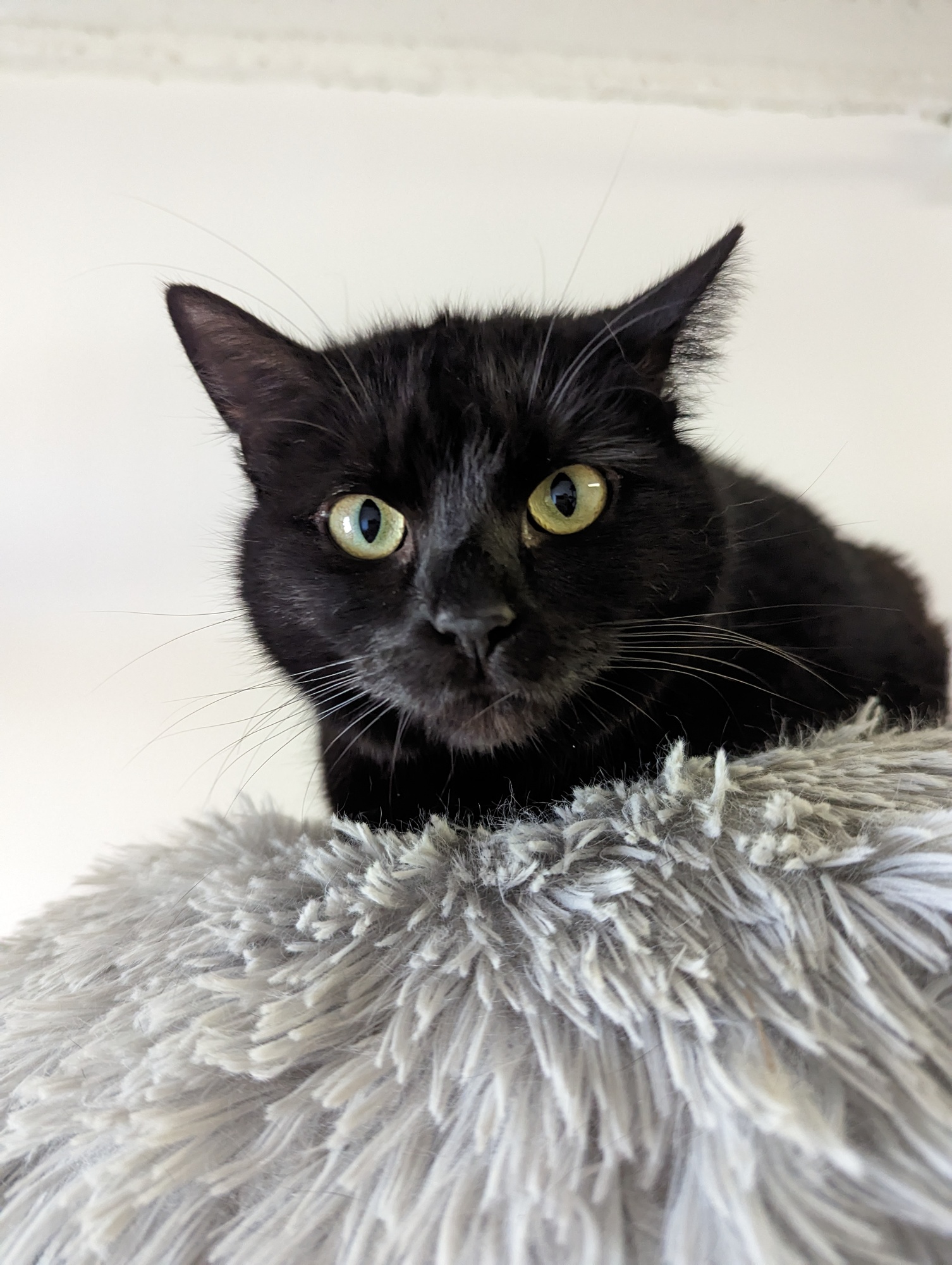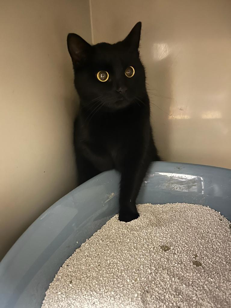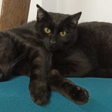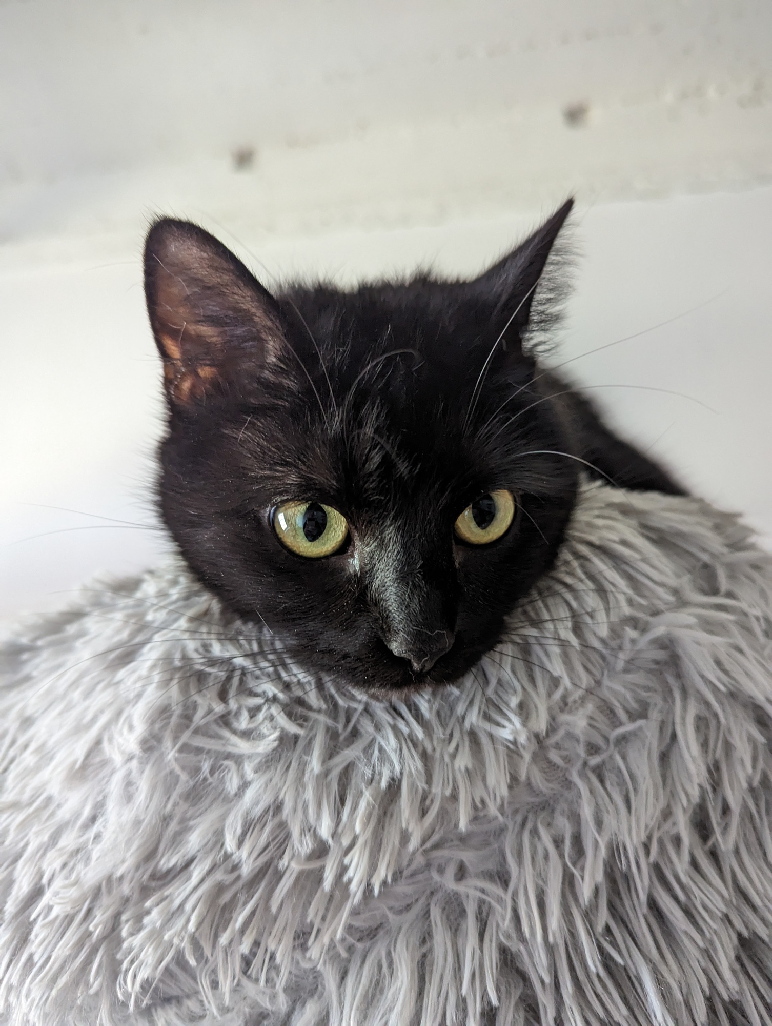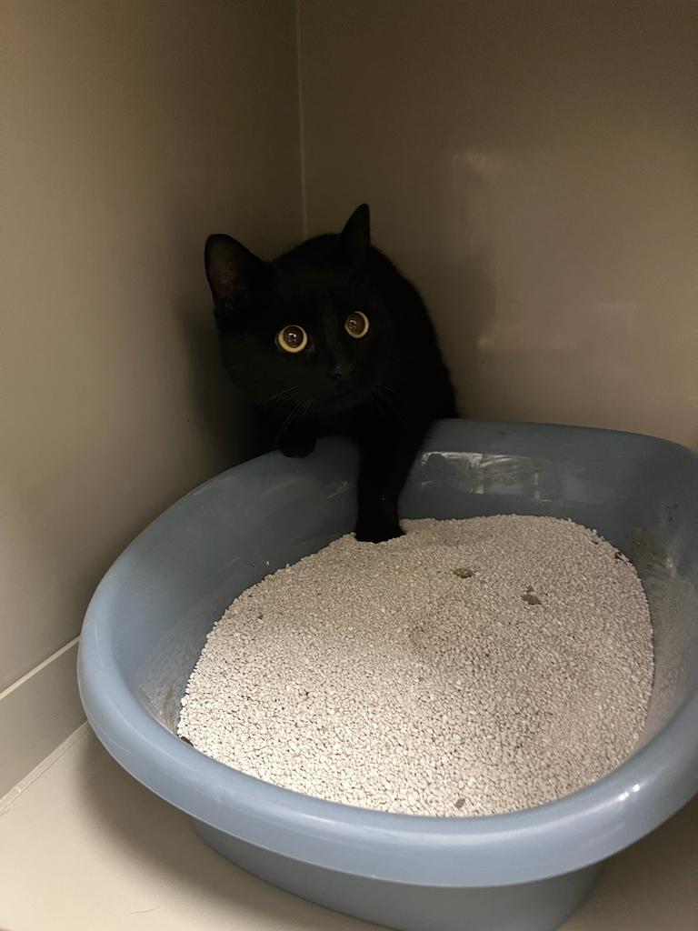 Černá žížalka, která je zatím v karanténě zakřiknutá, ale nechá se pomazlit, načež za chvíli slyšíte předení jejího motorku. To je Ofélie, ladná kráska :) Čeká ji pro jistotu ještě koprologie, ale už teď vyhlíží někoho, kdo ji bude milovat.