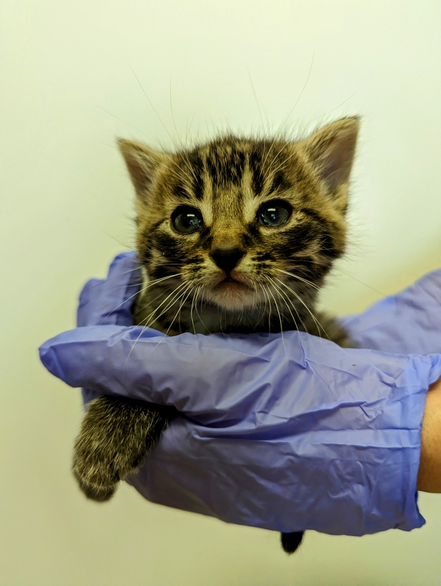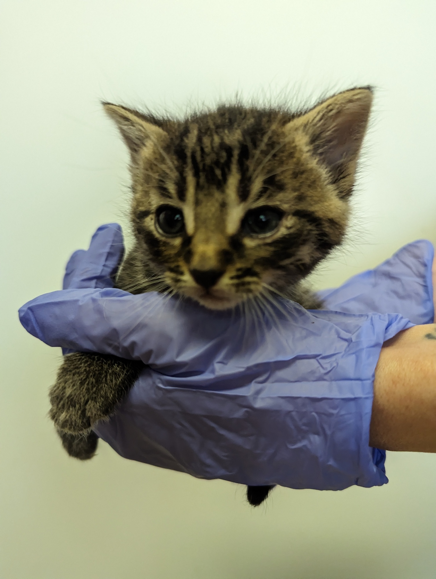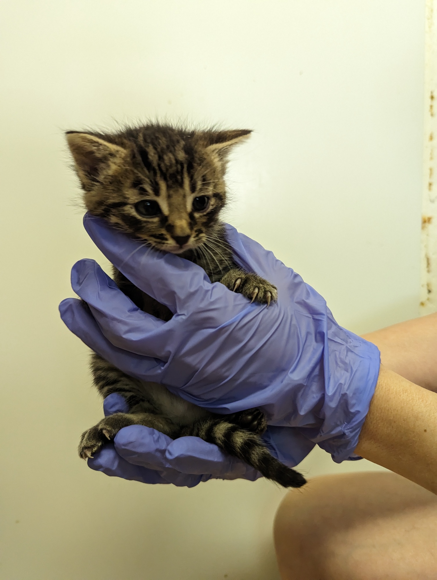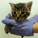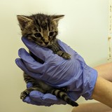 Malé koťátko, které bylo vyhozeno s maminkou v lese poblíž odpočívadla. Krásná mourovatá holčička, která bude dělat radost.