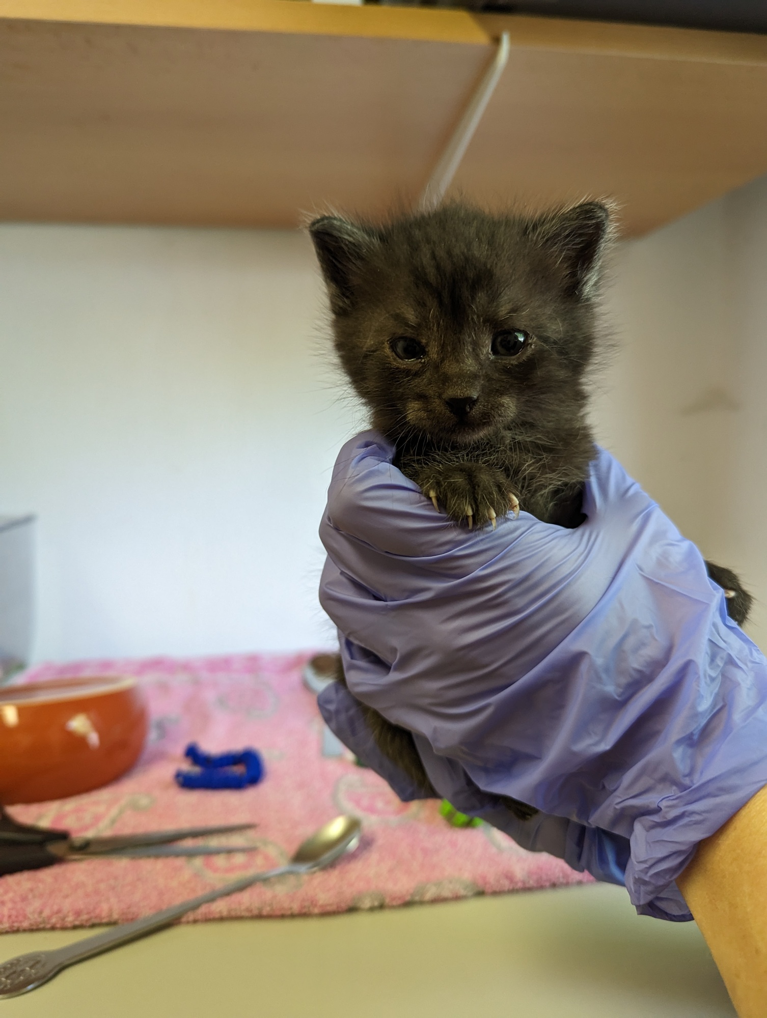 Kocourek byl nalezen s mámou a spourozenci vyhozen v lese blízko u odpočívadla. Kocourek je zdravý a bude z něj mazlík. Do adopce může jít od mámy ve věku 12 týdnů.
