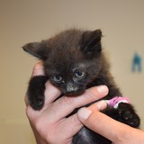 Malou Koko a její sourozence někdo vyhodil v lese u Turnova. Naštěstí je našly dobré duše a zavezly je k nám. Černá v tomto případě znamená štěstí :) Do adopce může jít ve věku tří měsíců, pokud půjde do domova bez kočky, nebo ke kočce, která ji bude socializovat již po vakcinaci.
