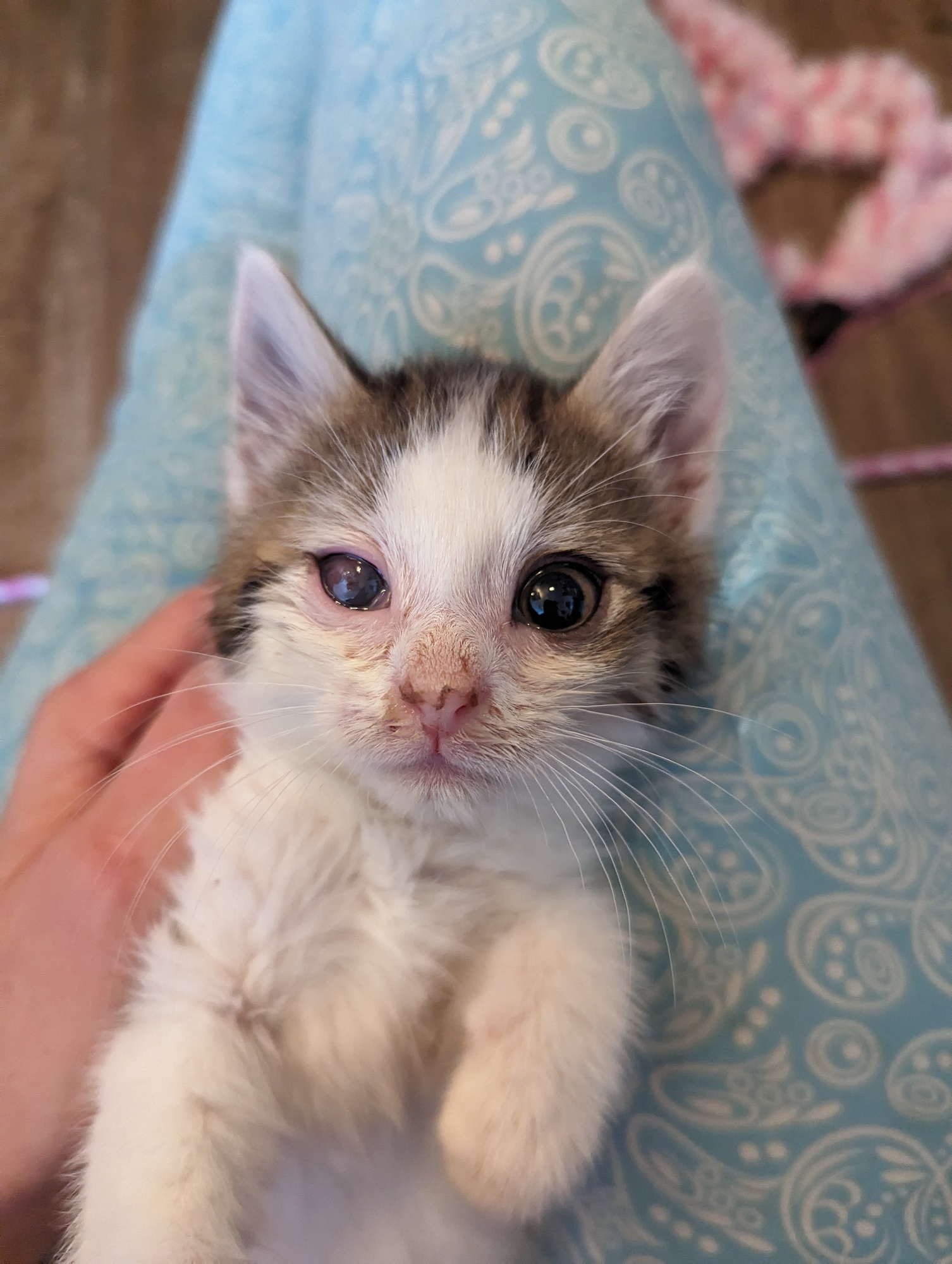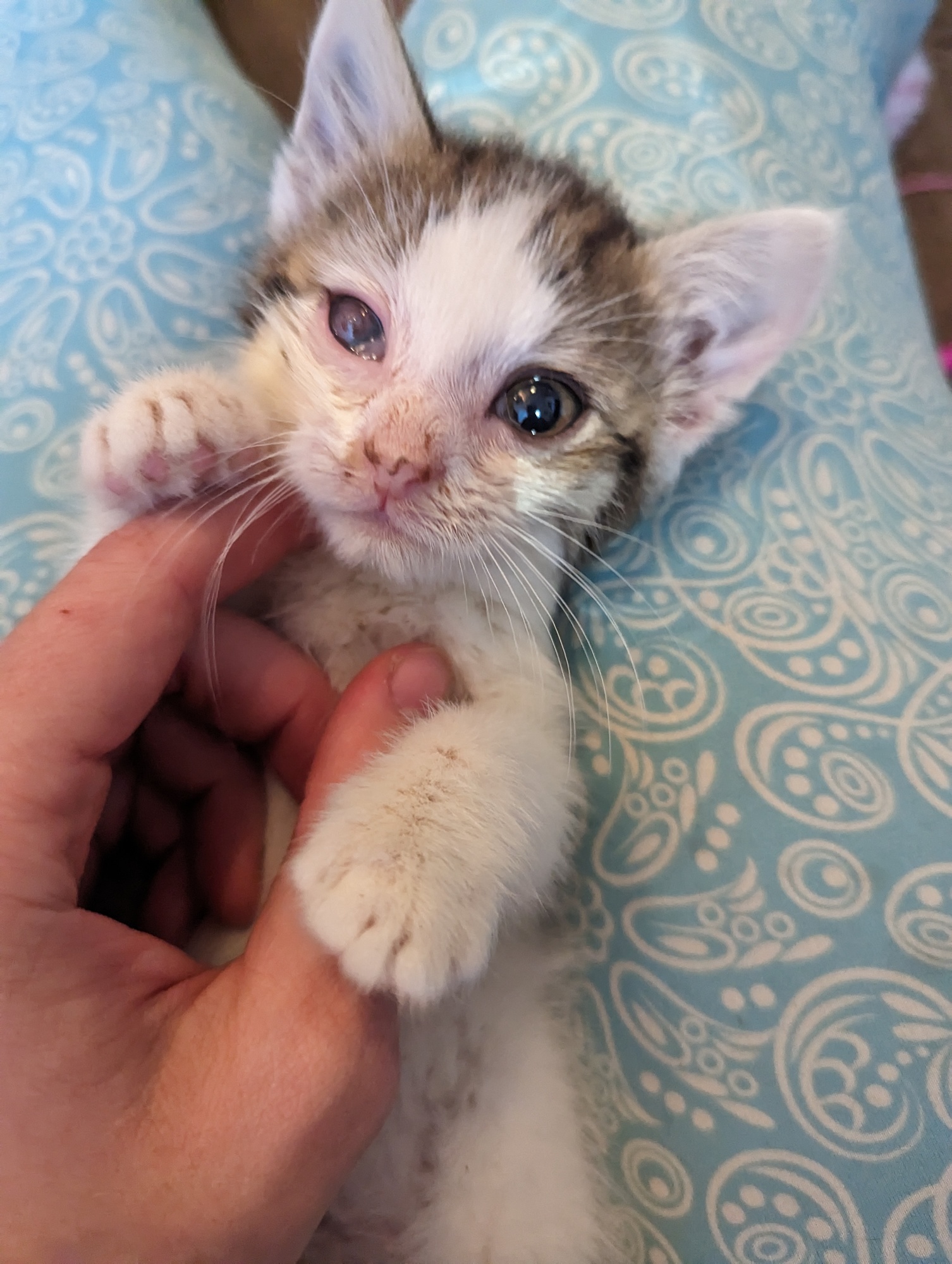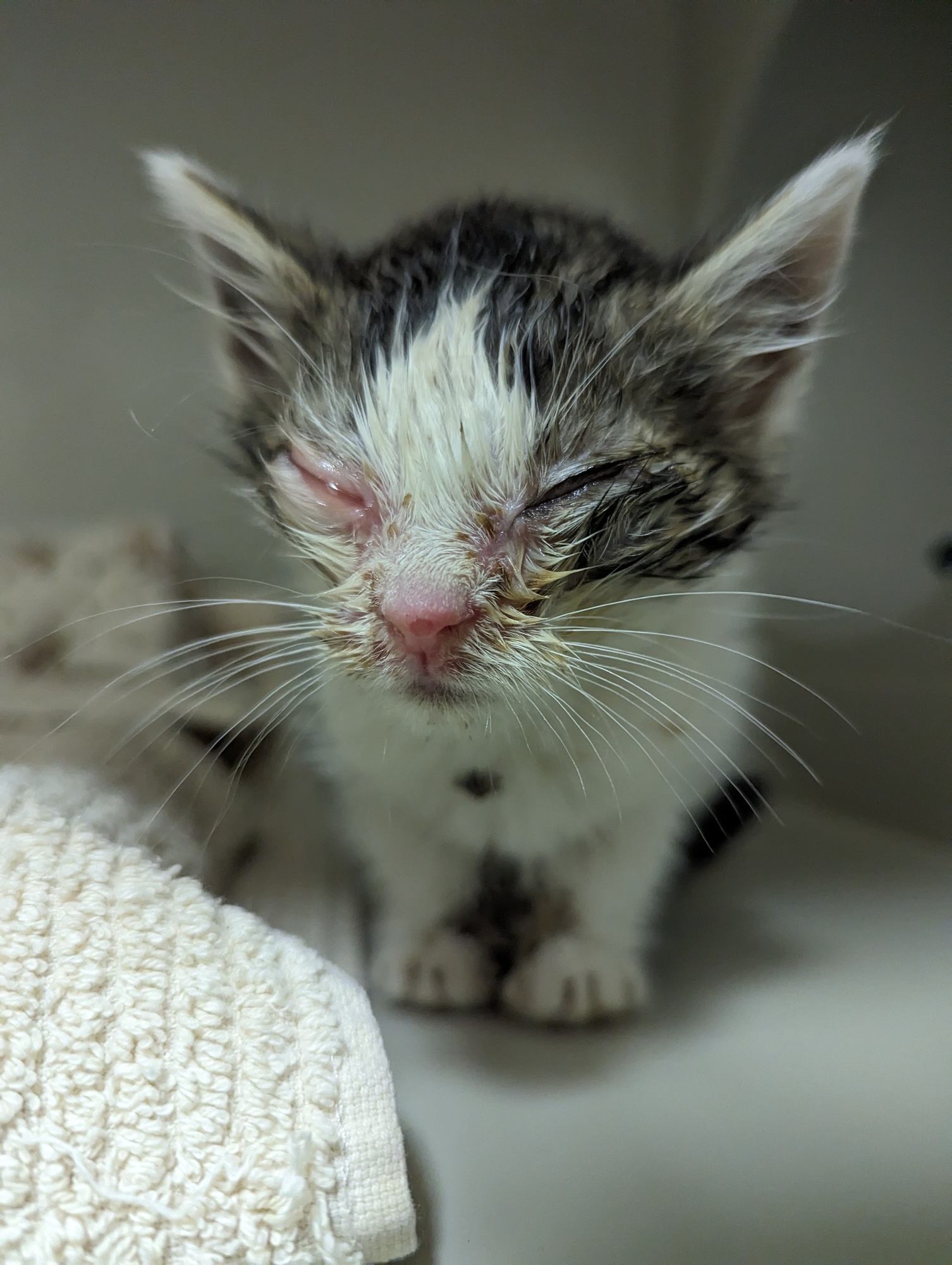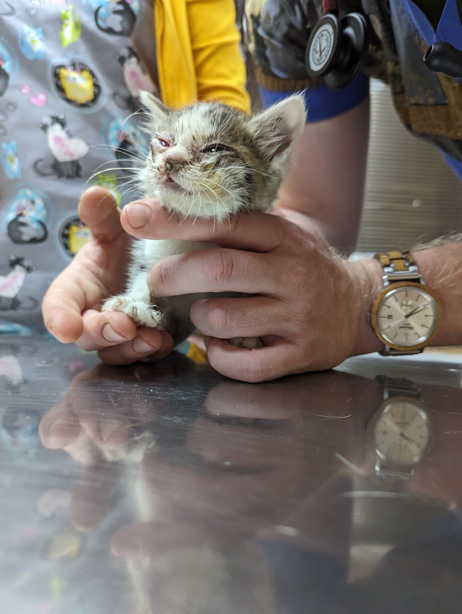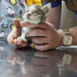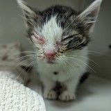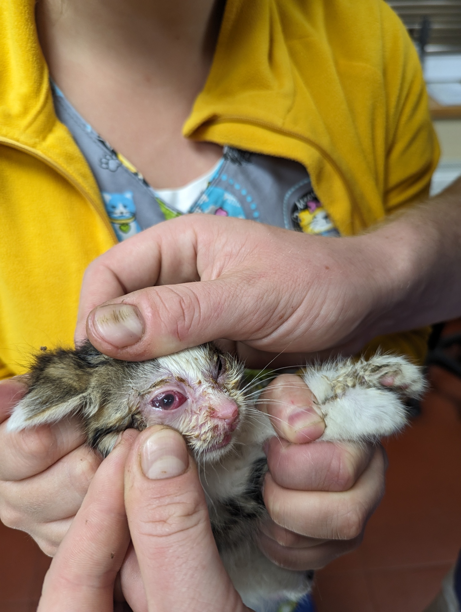 Kocourek má prasklý sklivec a čeká ho vynětí očička. Momentálně je nutné léčit virózu, aby mohl operaci podstoupit.