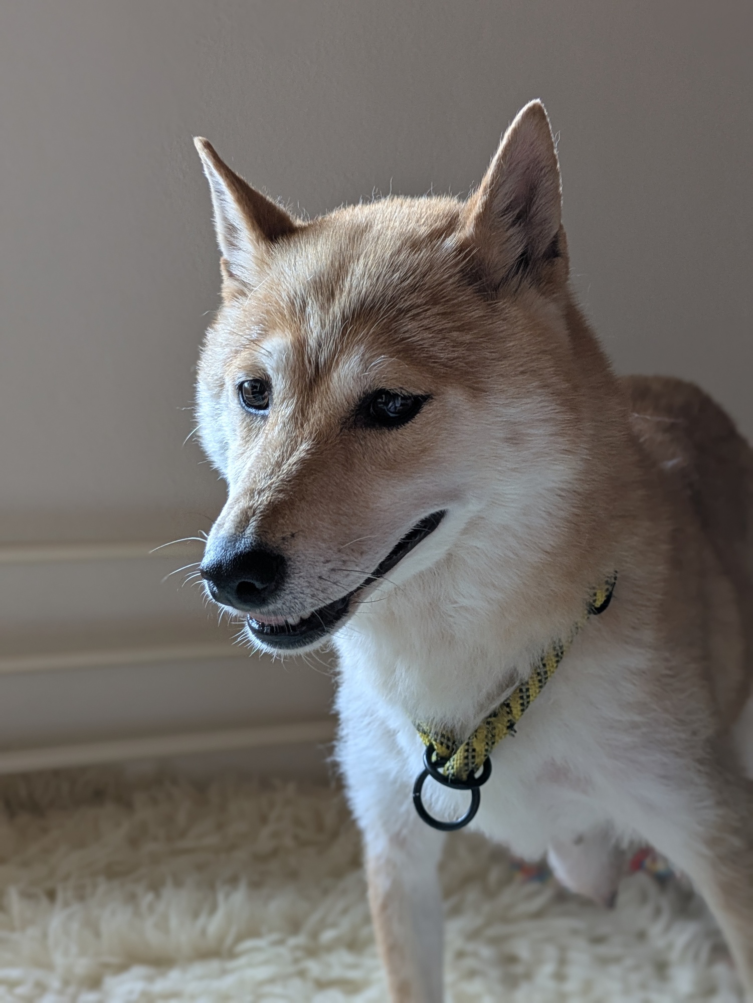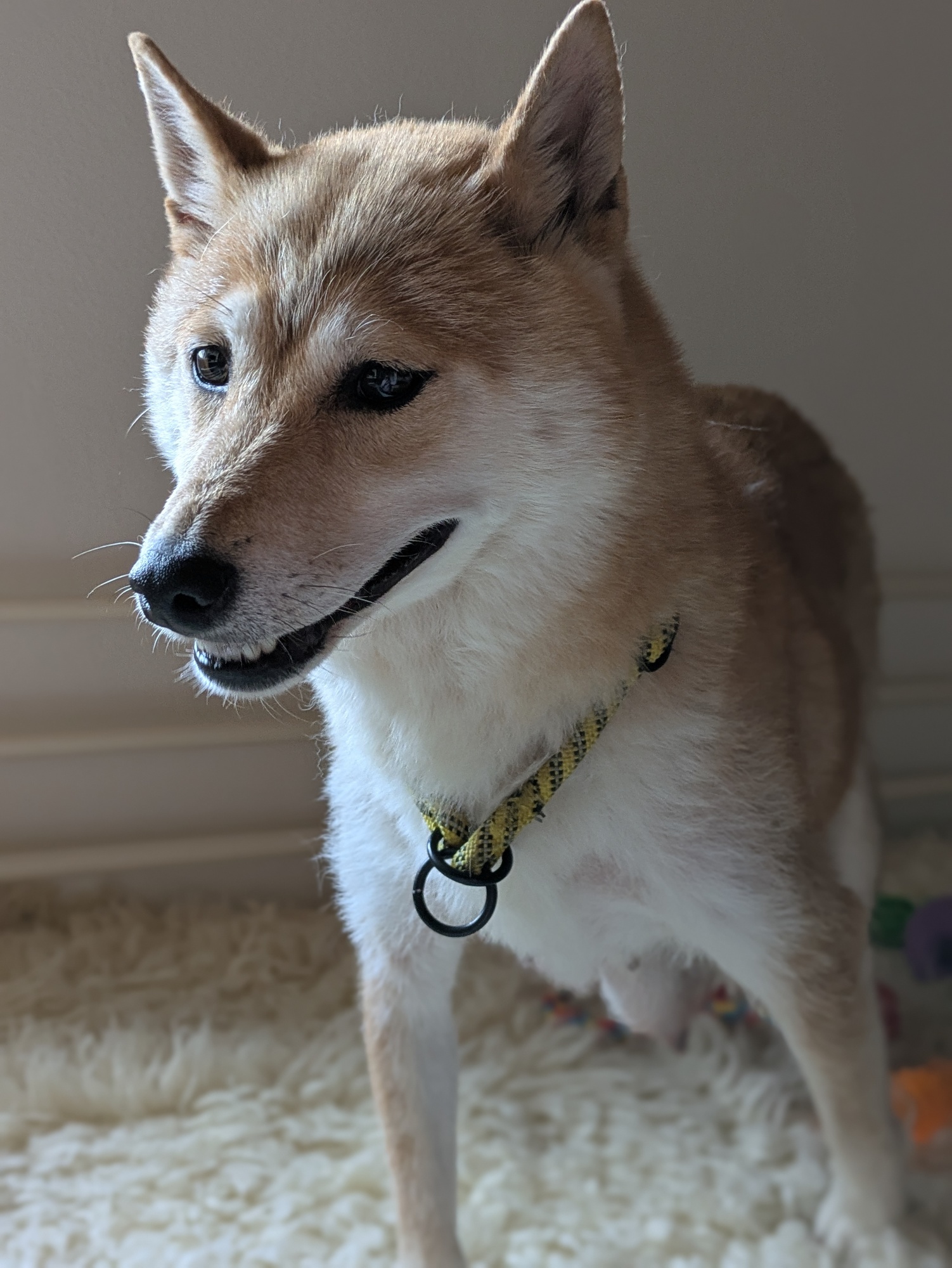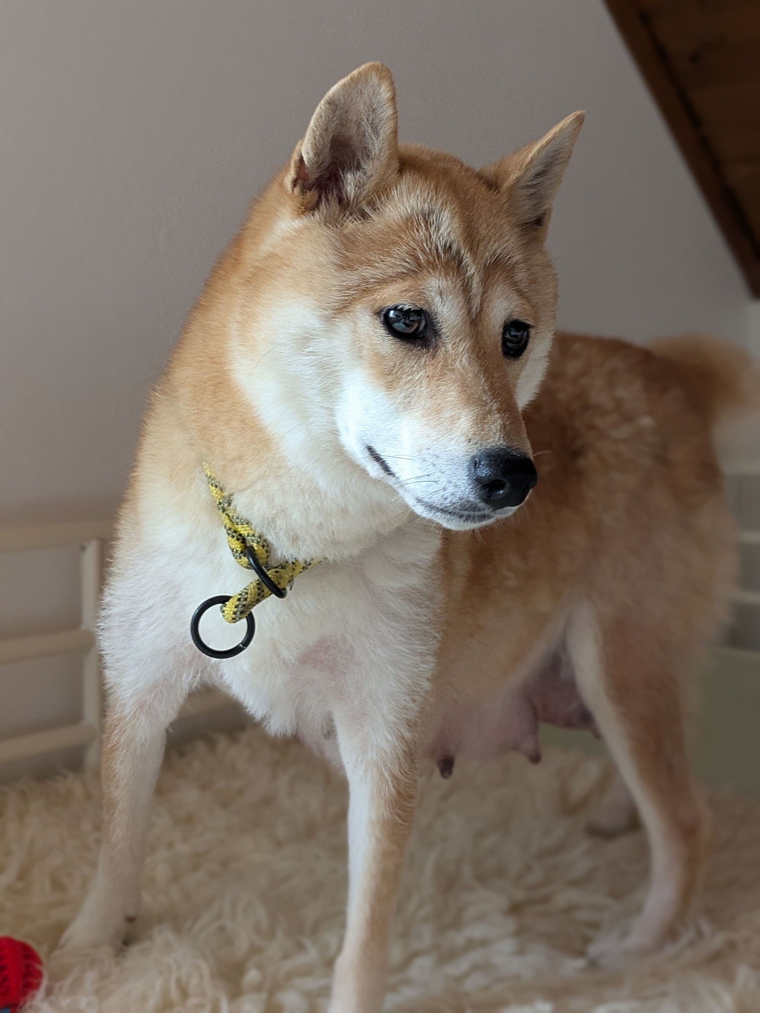 Natálka k nám přišla bázlivější, ale pomalu a jistě se "otrkává". Naučila se u nás chodit po schodech, venčit venku, pomalu učíme i vodítko, při kterém vždy zkoprněla. Má opravdu moc ráda lidi, u kterých velmi rychle zjistí, že jí nechtějí ublížit. Venku si začíná radostně poskakovat, hrát si a mít opravdovou radost ze života :-) Chtěli bychom pro ní spíš klidnější rodinu než rodinu s malými dětmi, které kolem ní budou pobíhat a pokřikovat.