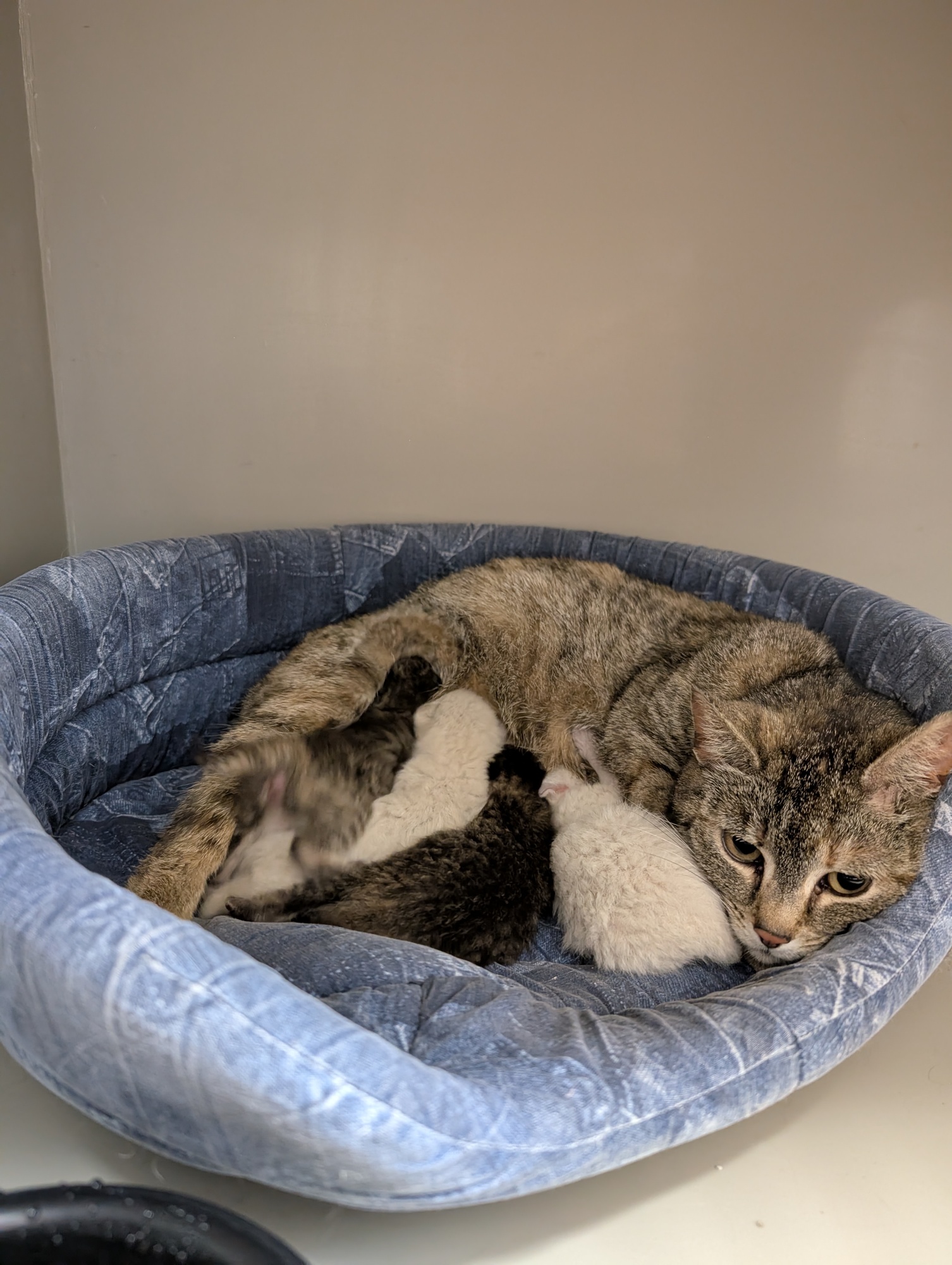 Rozinka byla přijata s koťátky, bohužel tři z nich zemřely, dost možná na streptokoka nebo virozu. Dvakrát jsme testovali panleukopenii, naštěstí v obou případech negativní. Kočička je zprvu bázlivá, opatrná, po získání důvěry se mazlí.