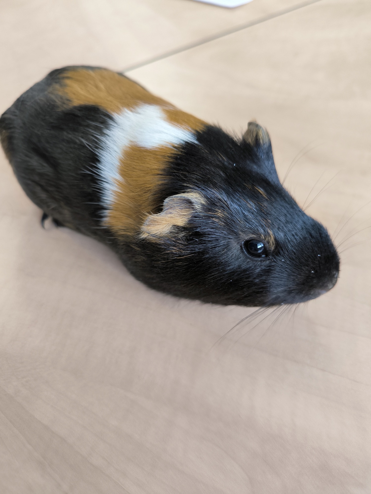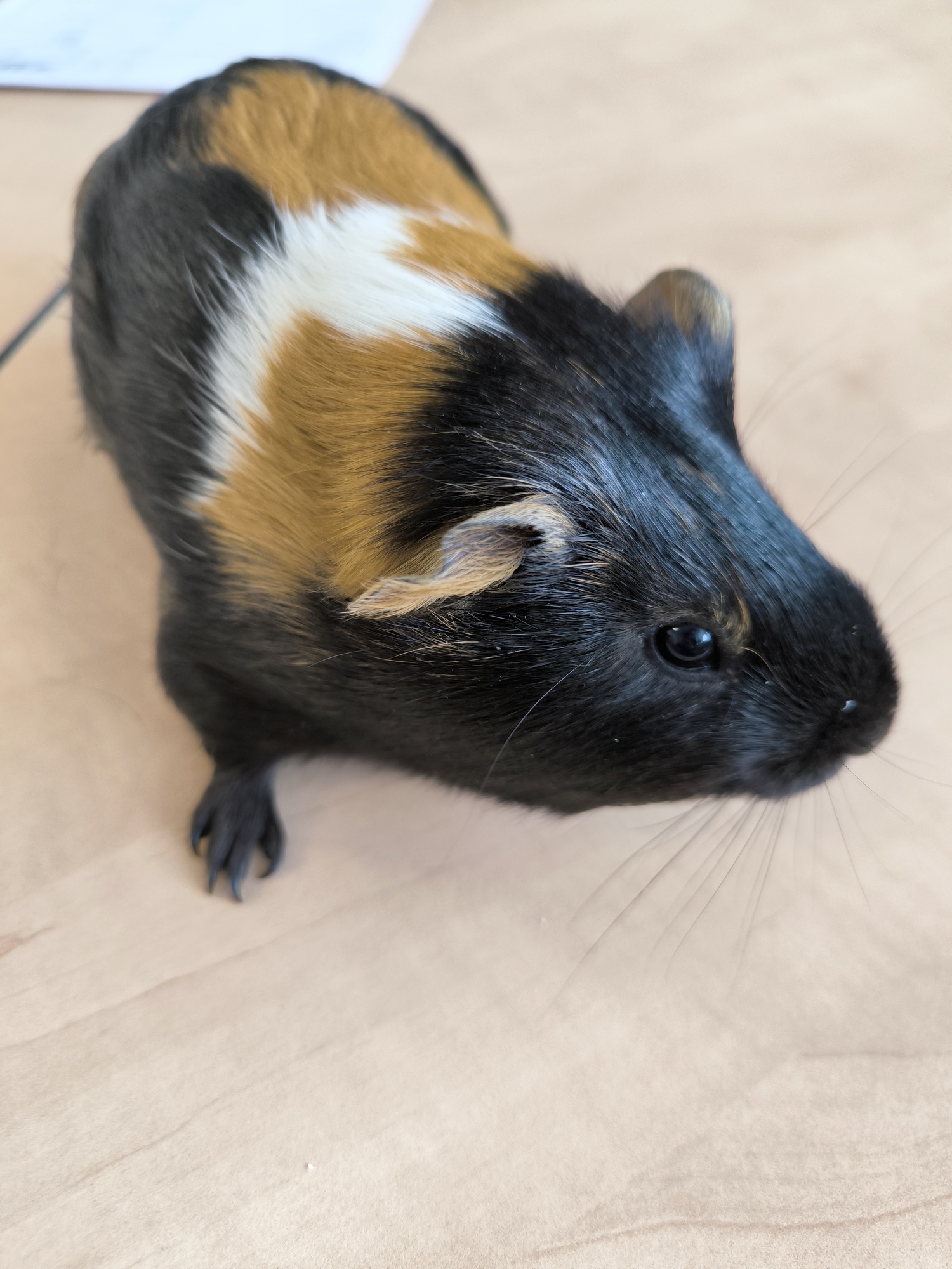 Plašší samička, která byla přijata s podezřením, že je březí. Březost sonografie nepotvrdila. Hledá tedy ten nejlepší domov k další morčecí kamarádce.