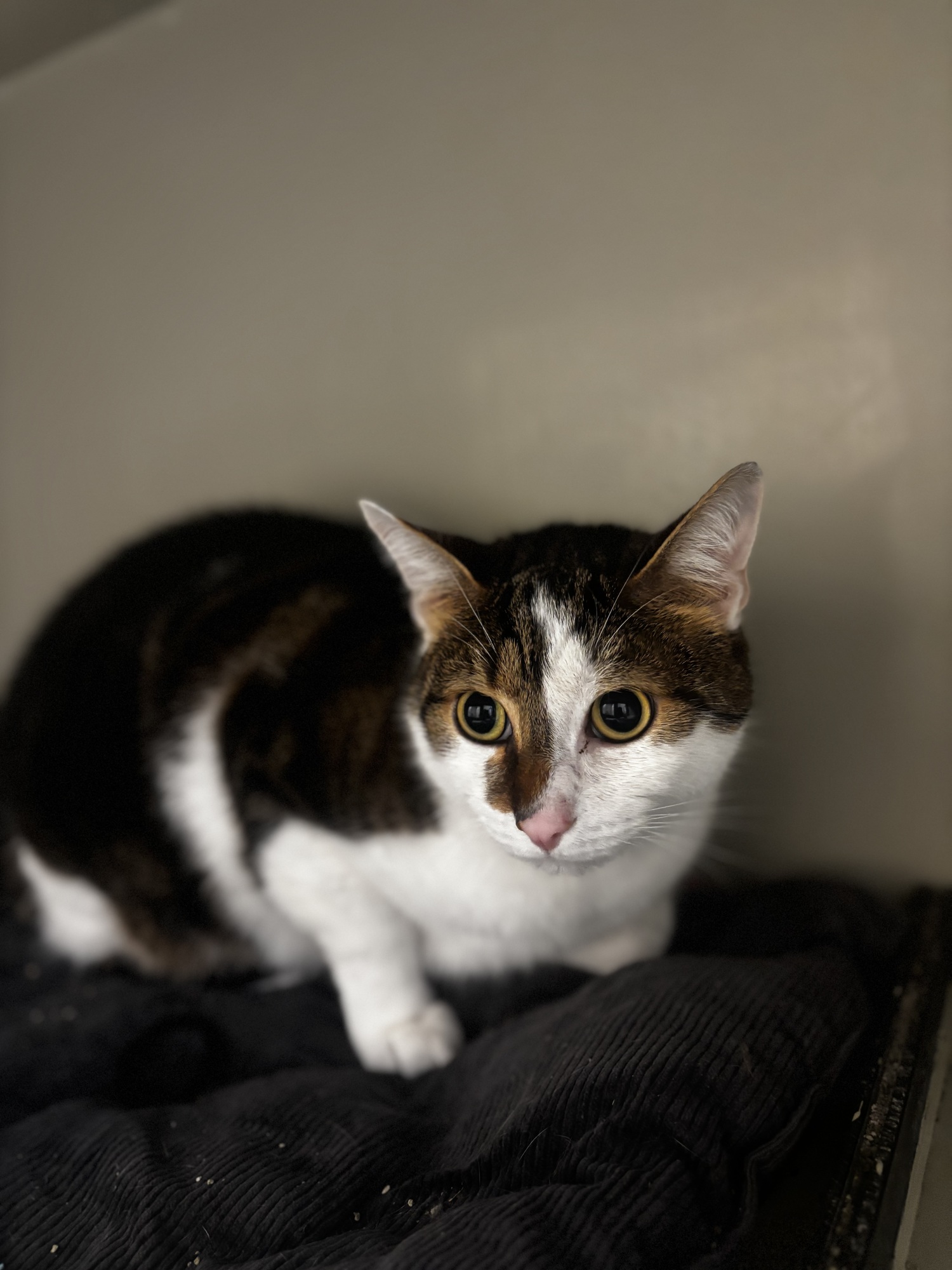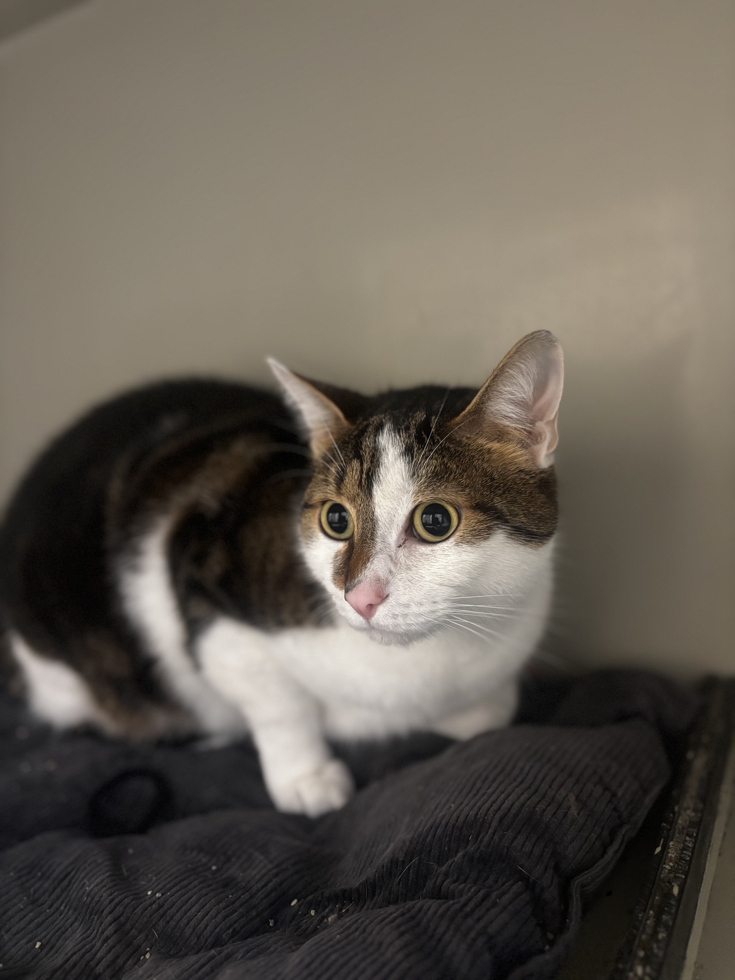 Lumpík je hodný a milý kocourek. Je narozený 21.8.2021, jedné kočičce, kterou si její majitelka dovezla z Chorvatska. Je kastrovaný a s ničím se neléčí. Od narození má na jednom oušku malou vystouplou pihu nebo znaménko, které ale viděl lékař a není to nic vážného. Je naučený na kočičí záchod. Celý život žije pouze v bytě, nezná život venku.