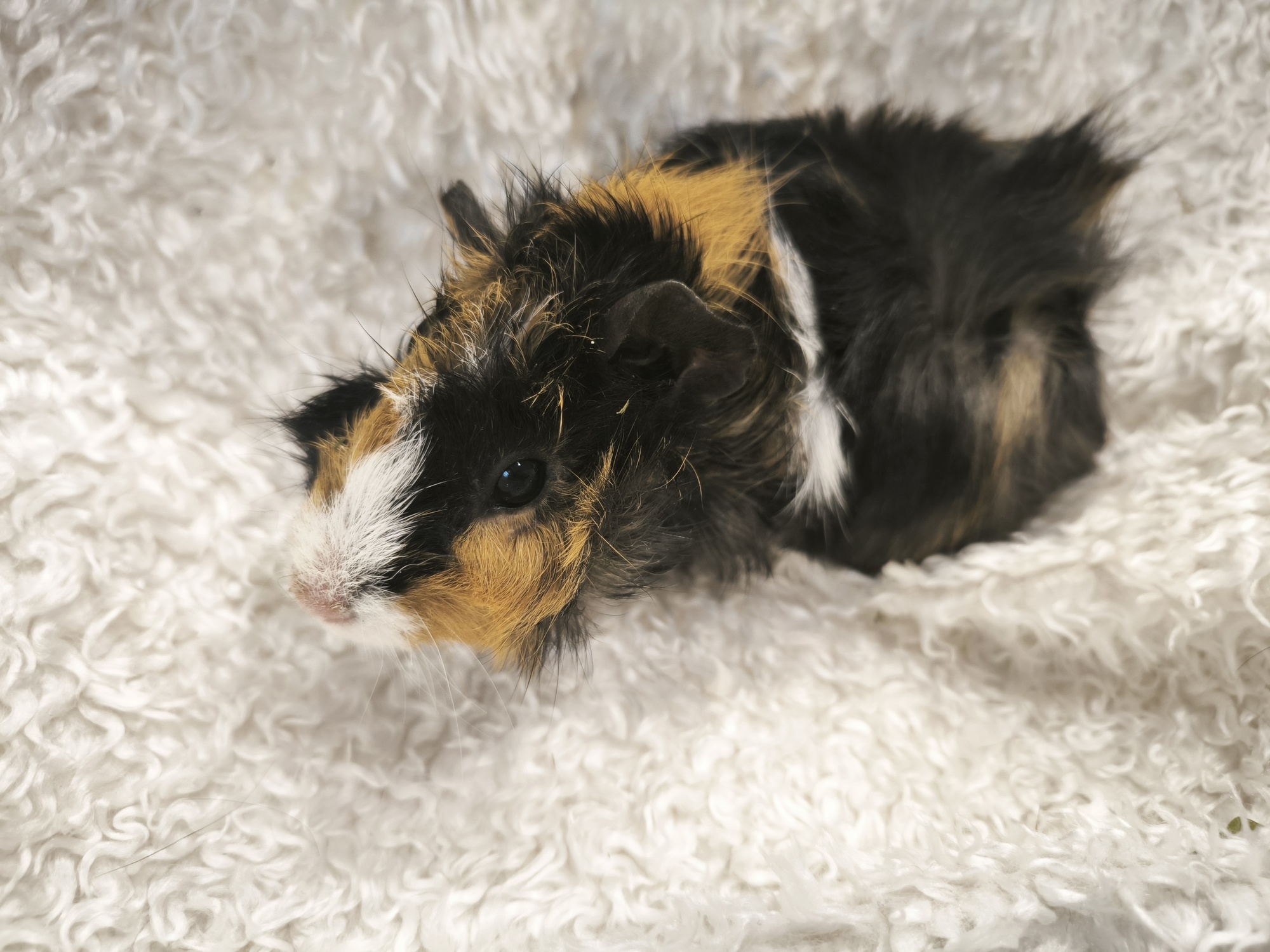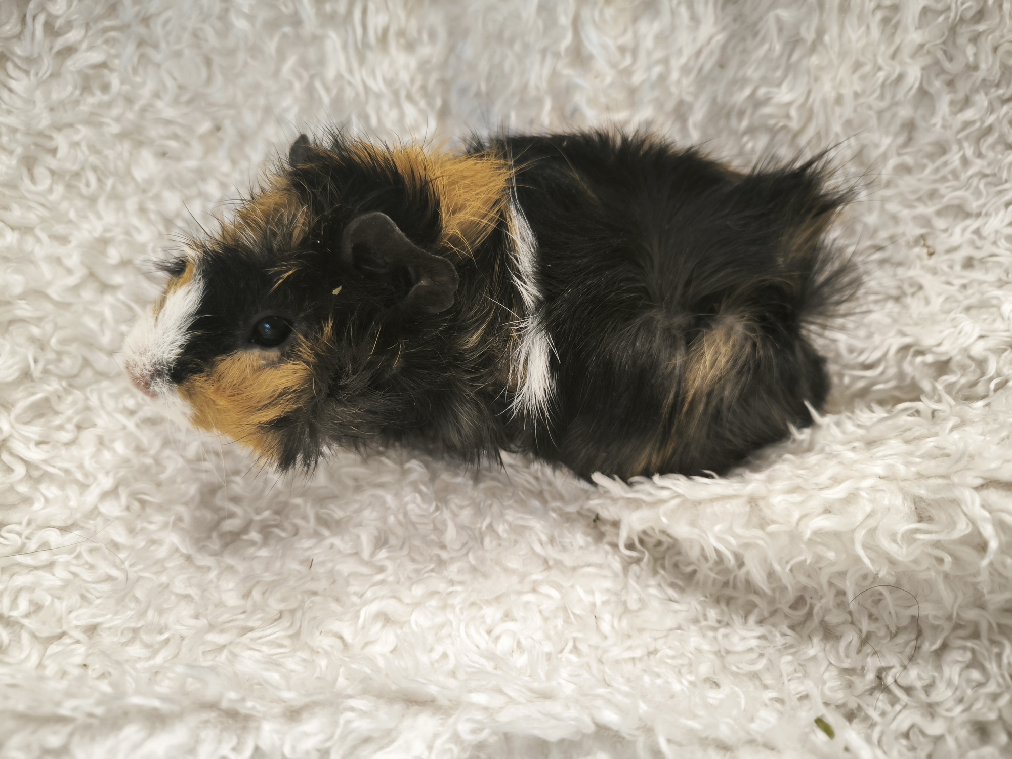 Plachá březí samička u které proběhla léčba plísně. Do nového domova půjde po porodu a odstavu mláďat.