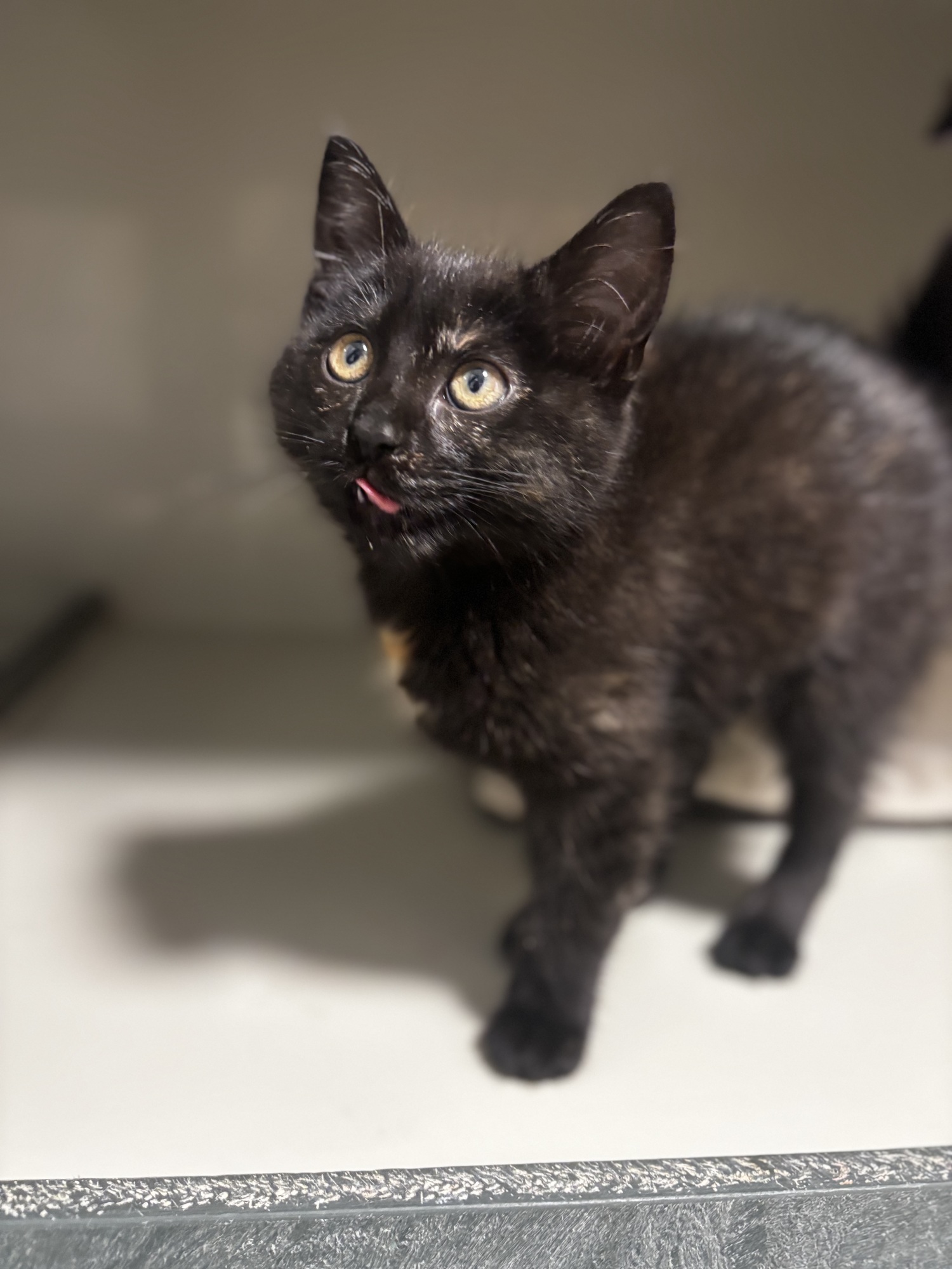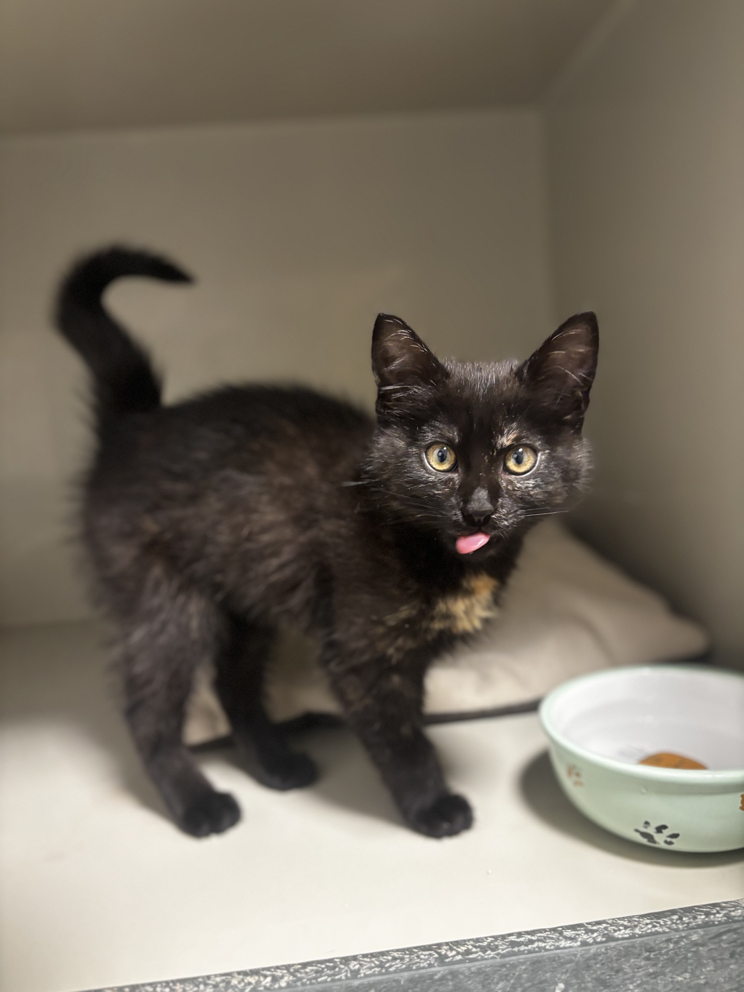 Roztomilé koťátko, které nám s těžkým srdcem předal pán, co je bez domova :( Je to takový smutný příběh, ale usoudil, že žít s ním ve stanu nebude moc dobrý nápad. Kishki je veselá, hravá holčička plná energie. Takže doufáme, že brzy najde domov, po karanténě ji čeká vakcinace.