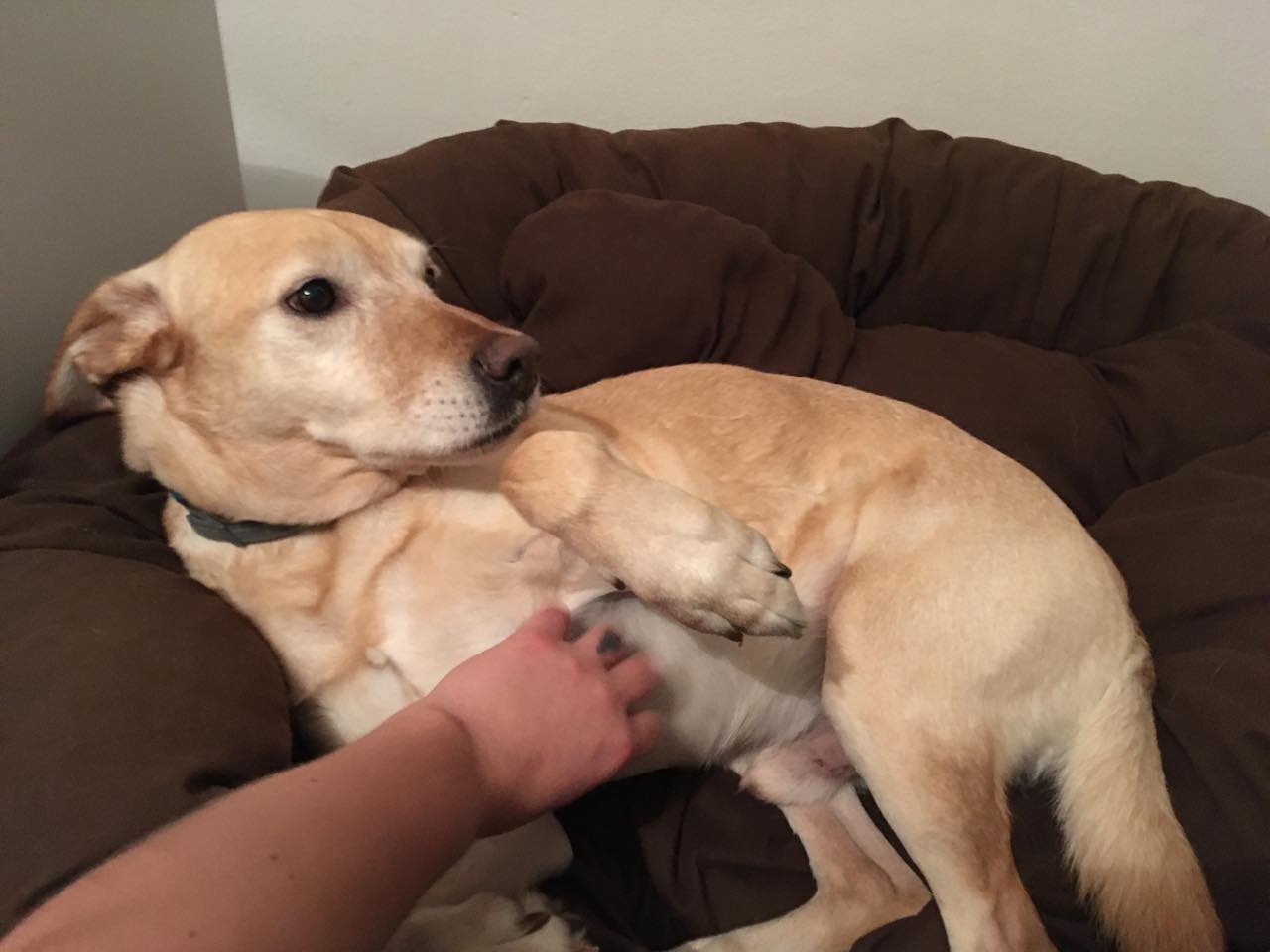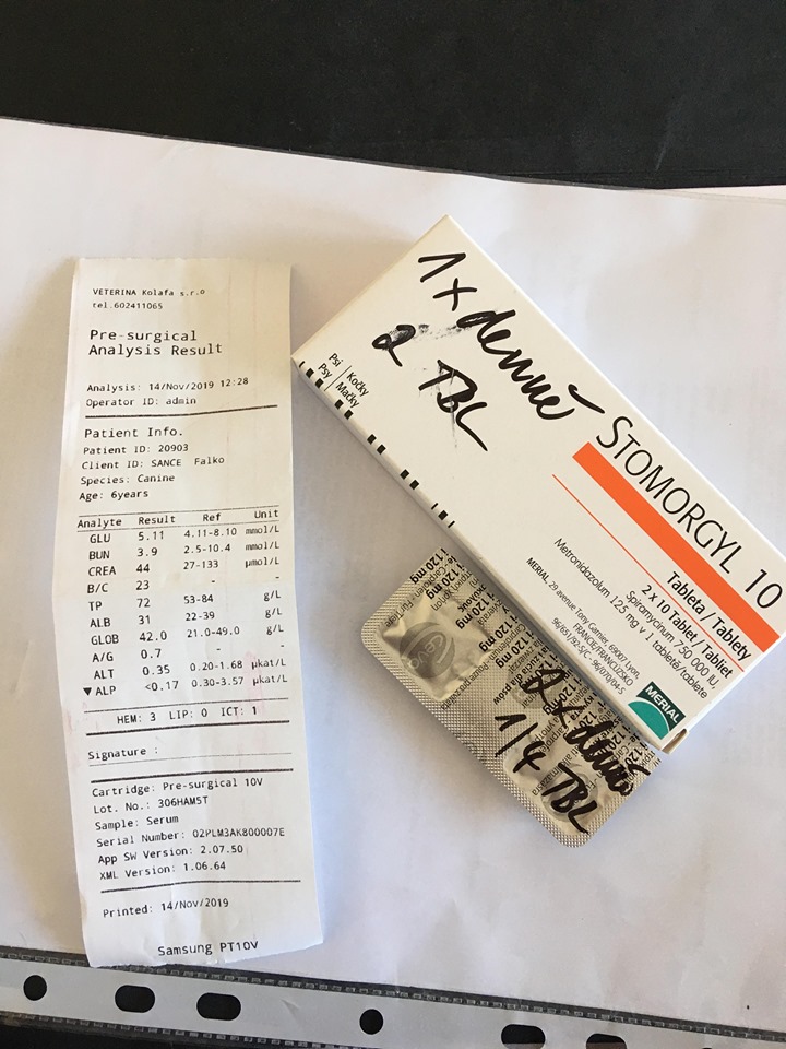 Falco je pan Úžasný. Je to neskutečně vděčný a milý pejsek. Zvyklý na děti. Ty má moc rád, vrtí na ně ocáskem. Jeho minulá rodina ho našla svázaného se zalepeným čumákem a nechali si ho. Bohužel postupem času neměla matka samoživitelka na pejska dostatek času a financí. Proto se mu rozhodla najít domov. Falco na nás působil smutným dojmem. Přišli jsme na veterině na to, že mu tlačí na zub kovový úlomek. Pravděpodobně byl v minulosti postřelen nebo měl sdrátovanou čelist. Netušíme, protože kontakt na původního majitele nikdo nemá. Falco je mírný a klidný pejsek, zvyklý na byt. Nevadí mu jiní psi, nemusí ty malé. Kočky ignoruje. Rád jezdí autem, na veterině je hodný.