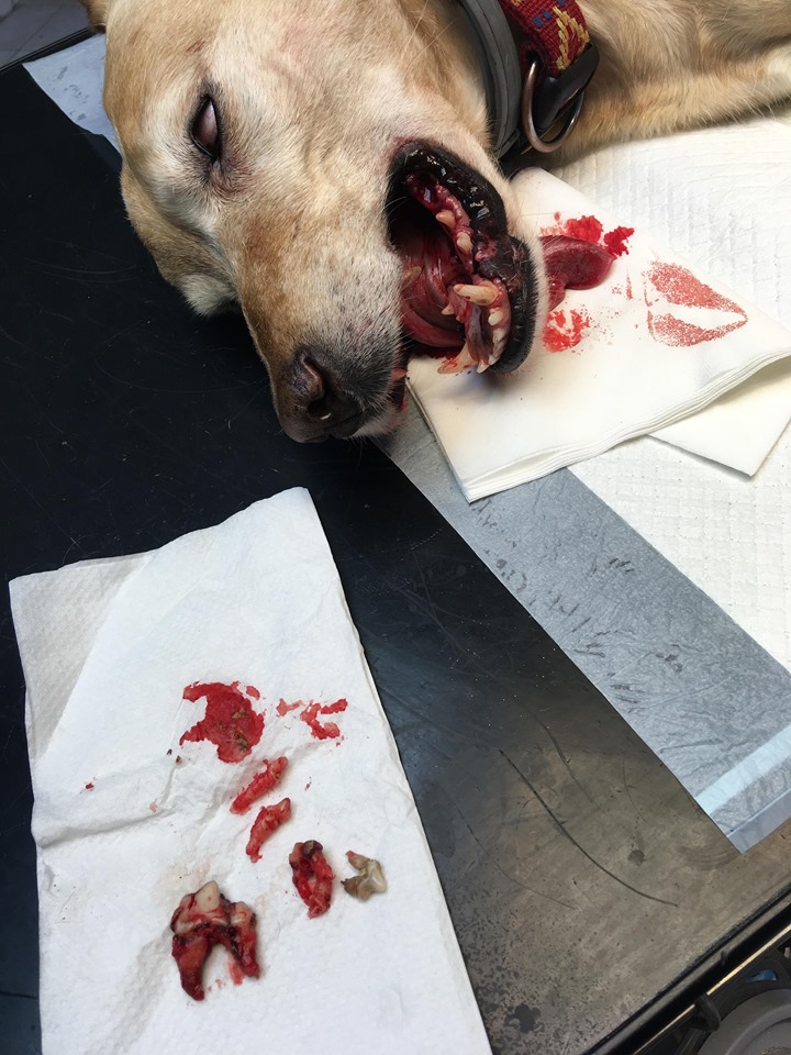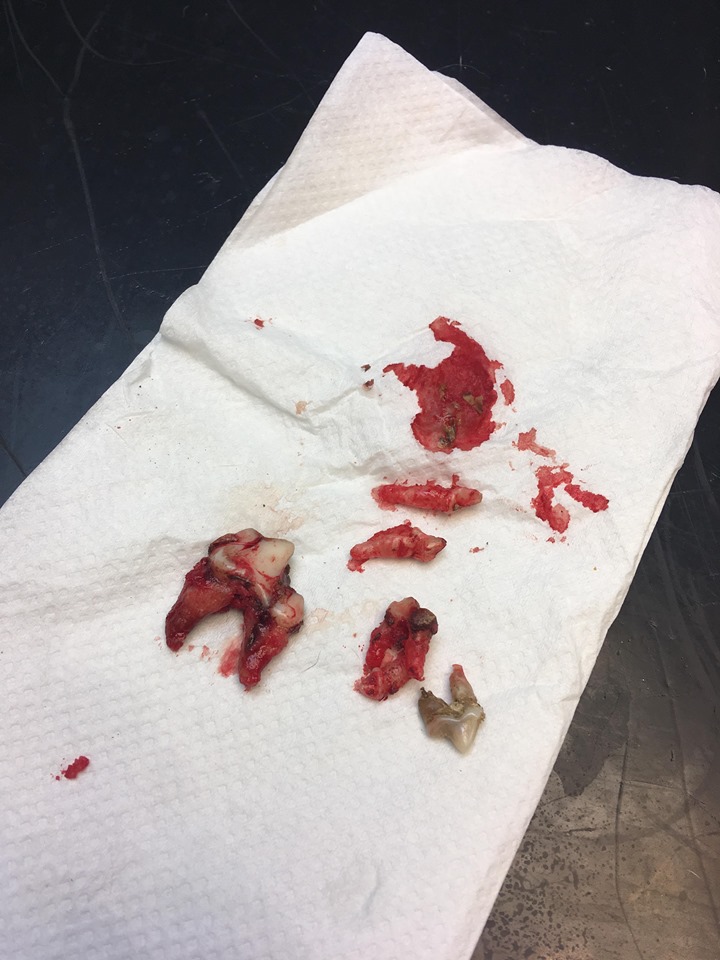 - po operaci kvůli kovovému úlomku, který mu tlačí na zub - pravděpodobně byl v minulosti postřelen, měl sdrátovanou čelist