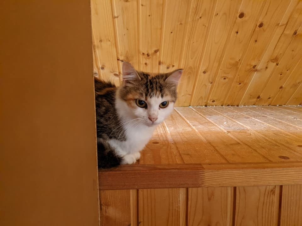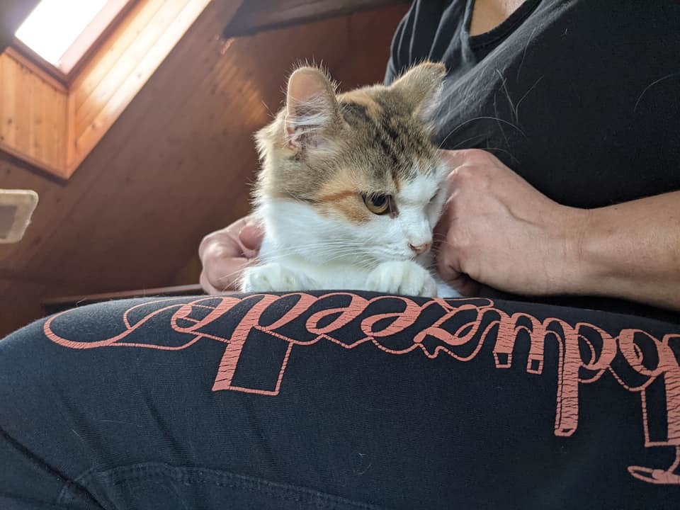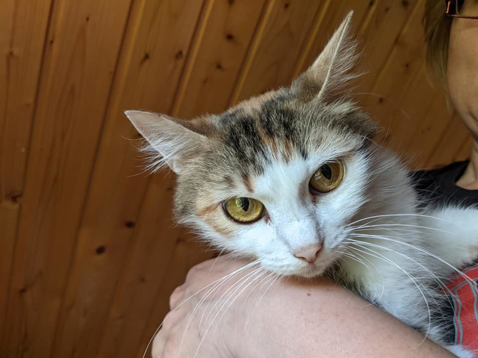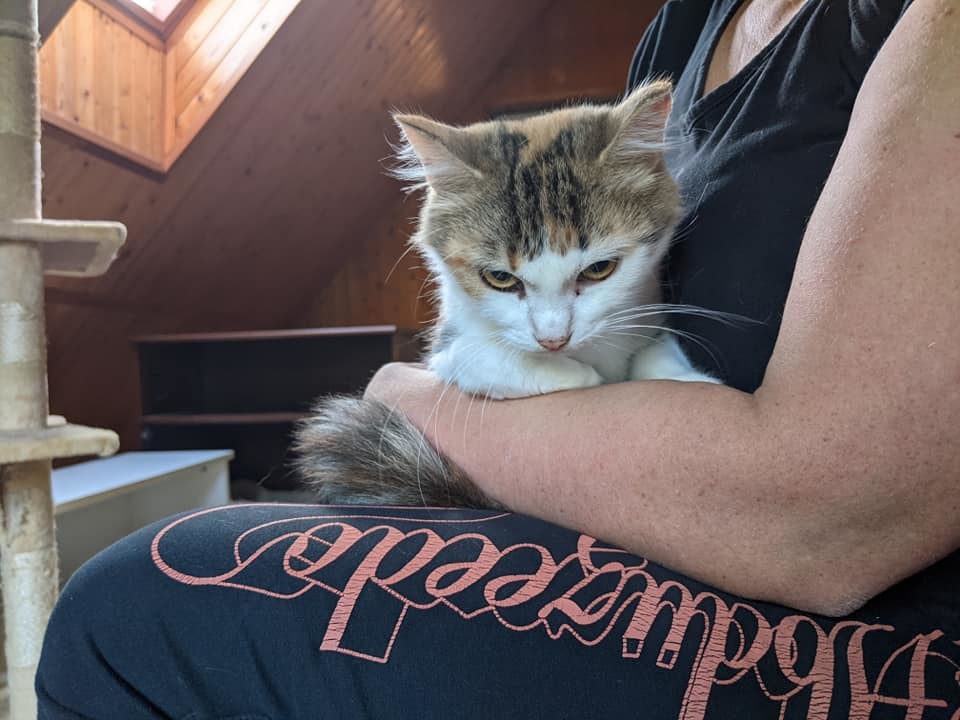 Kočička Mája přišla březí a dne 27.4.2021 porodila 4 koťátka. Je opatrná, pomazlí se se svými lidmi, ale není to kontaktní kočka. Bylo by jí dobře v domově s přístupem ven v klidné lokalitě. Jistě se osvědčí jako myšilovka. Je to krásná kočička, ale neumí se "prodat". Čeká tedy, až si ji vybere někdo právě pro její pracovní schopnosti myšilova.