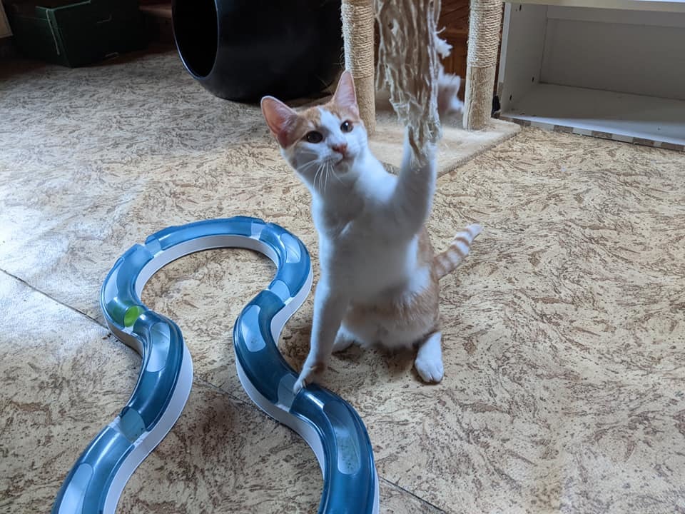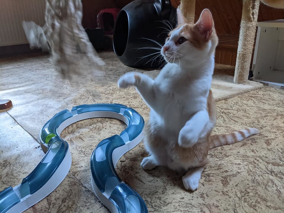 Akční kocourek, který je neuvěřitelně hravý, rád se nechá pohladit, ale na klíně neposedí, nechce se nechat nosit - protože, co kdyby mu něco uteklo! :) Miluje ale jakoukoliv hru s člověkem i s podobně naladěným kočičákem!