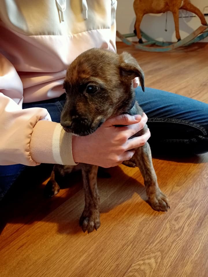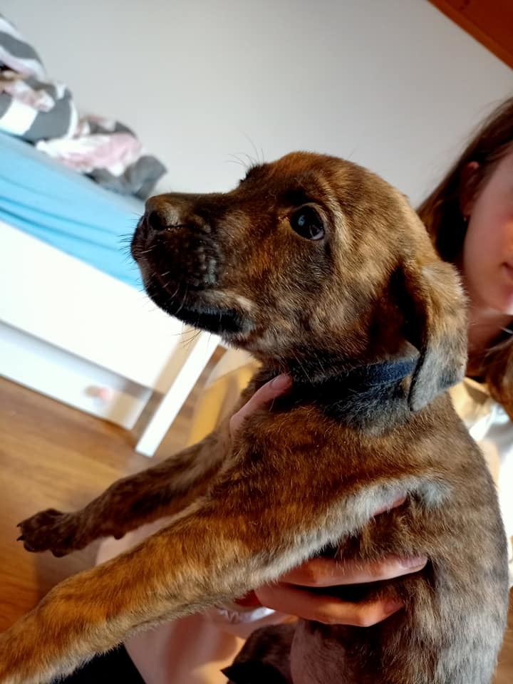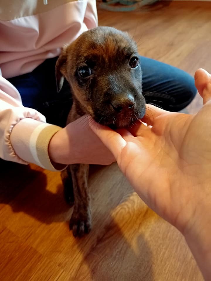 Evelínka má velmi kontaktní povahu stejně jako jejích 8 sourozenců. Přestože je to holčička, vůbec se nebojí soubojů s brášky. Z holčiček je rozhodně nejprůbojnější. V dospělosti předpokládáme velikost cca boxera - po mamince Agi, která je též v naší adopční nabídce. Do adopce půjde Evelínka odčervená, očkovaná a čipovaná.