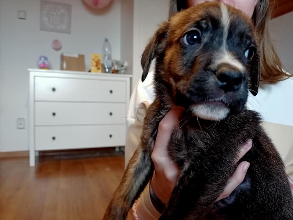 Edík má velmi kontaktní povahu stejně jako jeho 8 sourozenců. Mezi všemi štěňátky je to největší sígr. Ve volném čase s páníčkem by ho mohly bavit třeba obrany. V dospělosti předpokládáme velikost cca boxera - po mamince Agi, která je též v naší adopční nabídce. Do adopce půjde Edík odčervený, očkovaný a čipovaný.