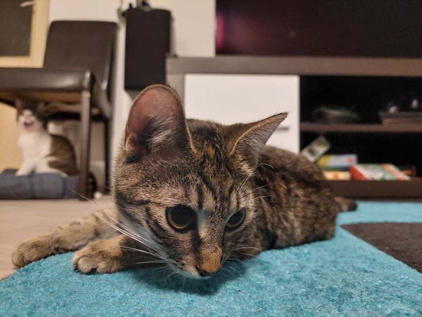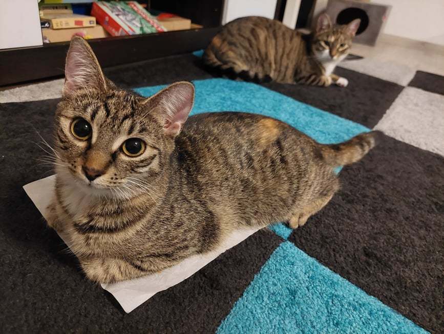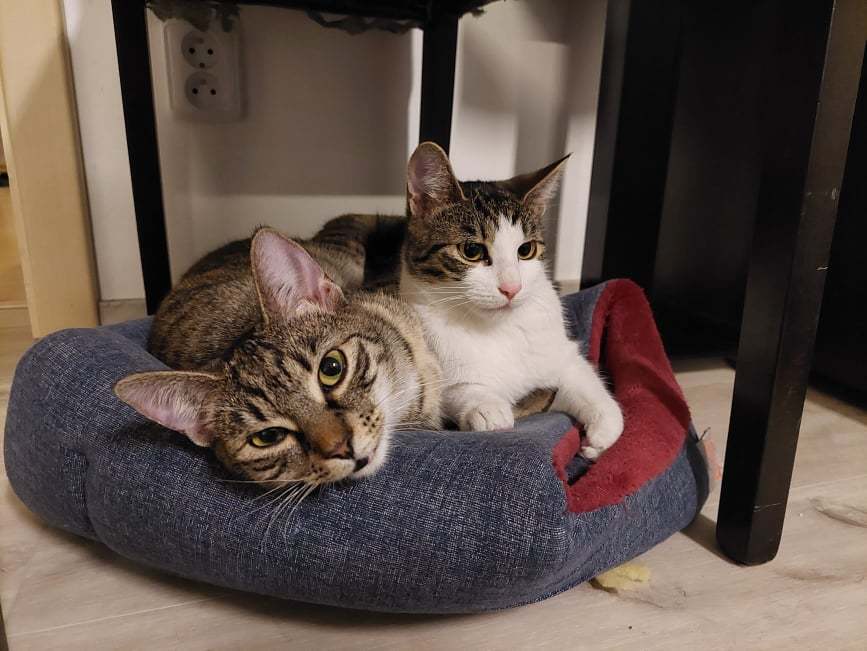 Narodila se mamince, která zřejmě v březosti prodělala panleukopenii. Na základě této nemoci mají koťata postižený nervový systém, takže mají nekoordinované pohyby. To jim však nebrání v kotěcích radovánkách. Obě sestřičky jsou mazlivé holky.