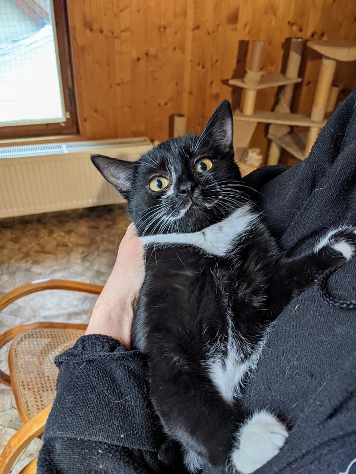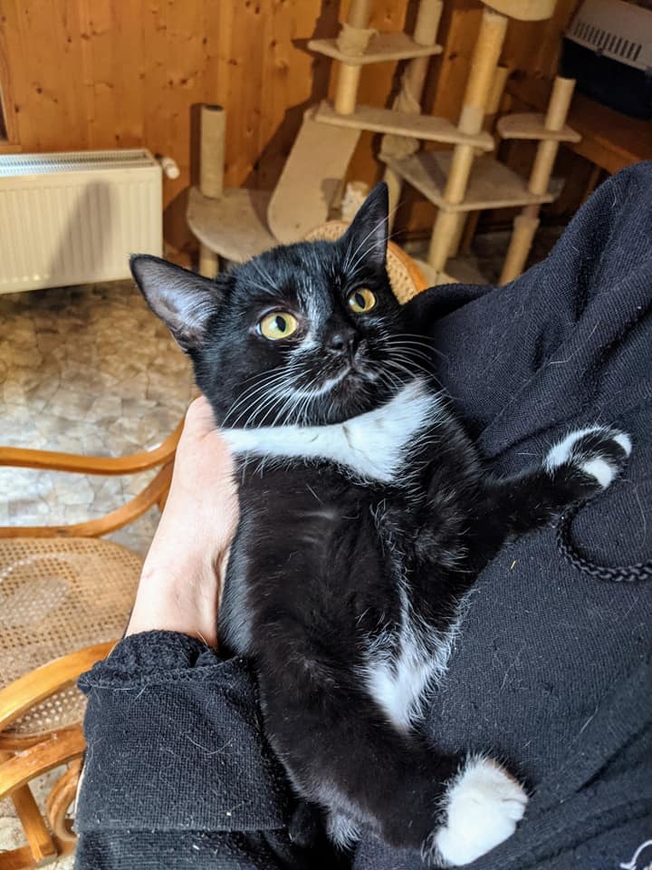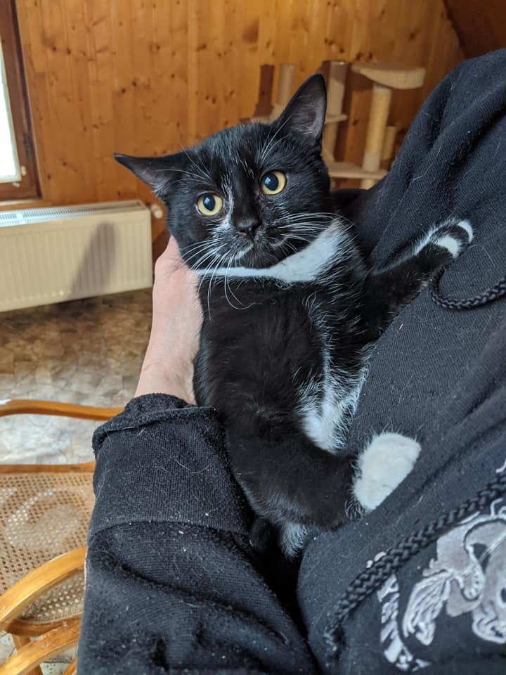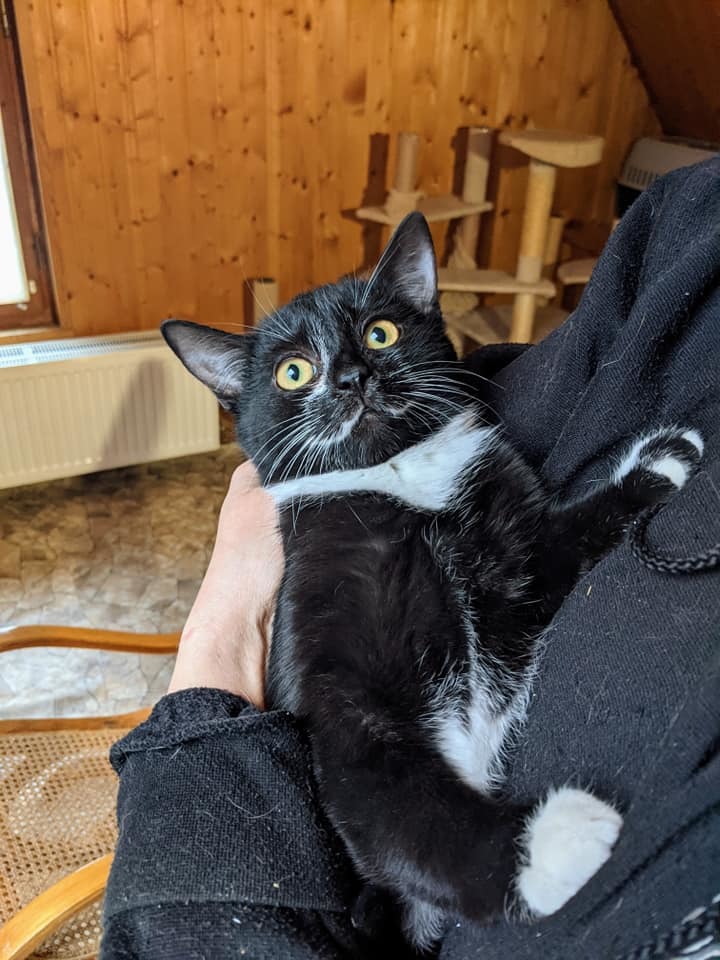 Koťátka se na vesnici pohybovala bezprizorně, jejich údajní majitelé se odstěhovali a tak koťata přežívala díky hodným lidem, kteří je krmili. Z nemocného kotěte vyrostl nádherný kocour se vzhledem sňatkového podvodníka. Jeho knír a pohled vám podlomí kolena!