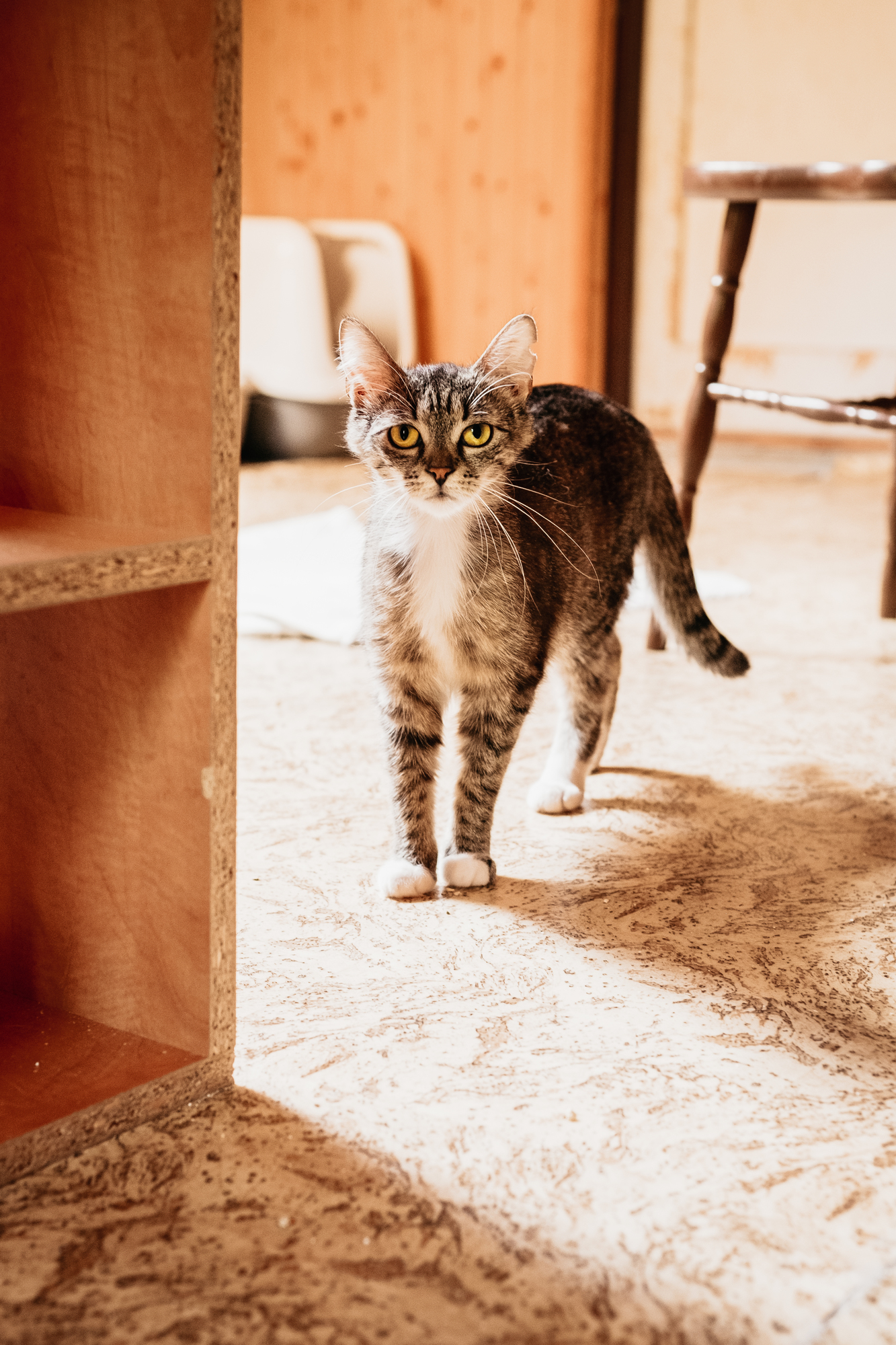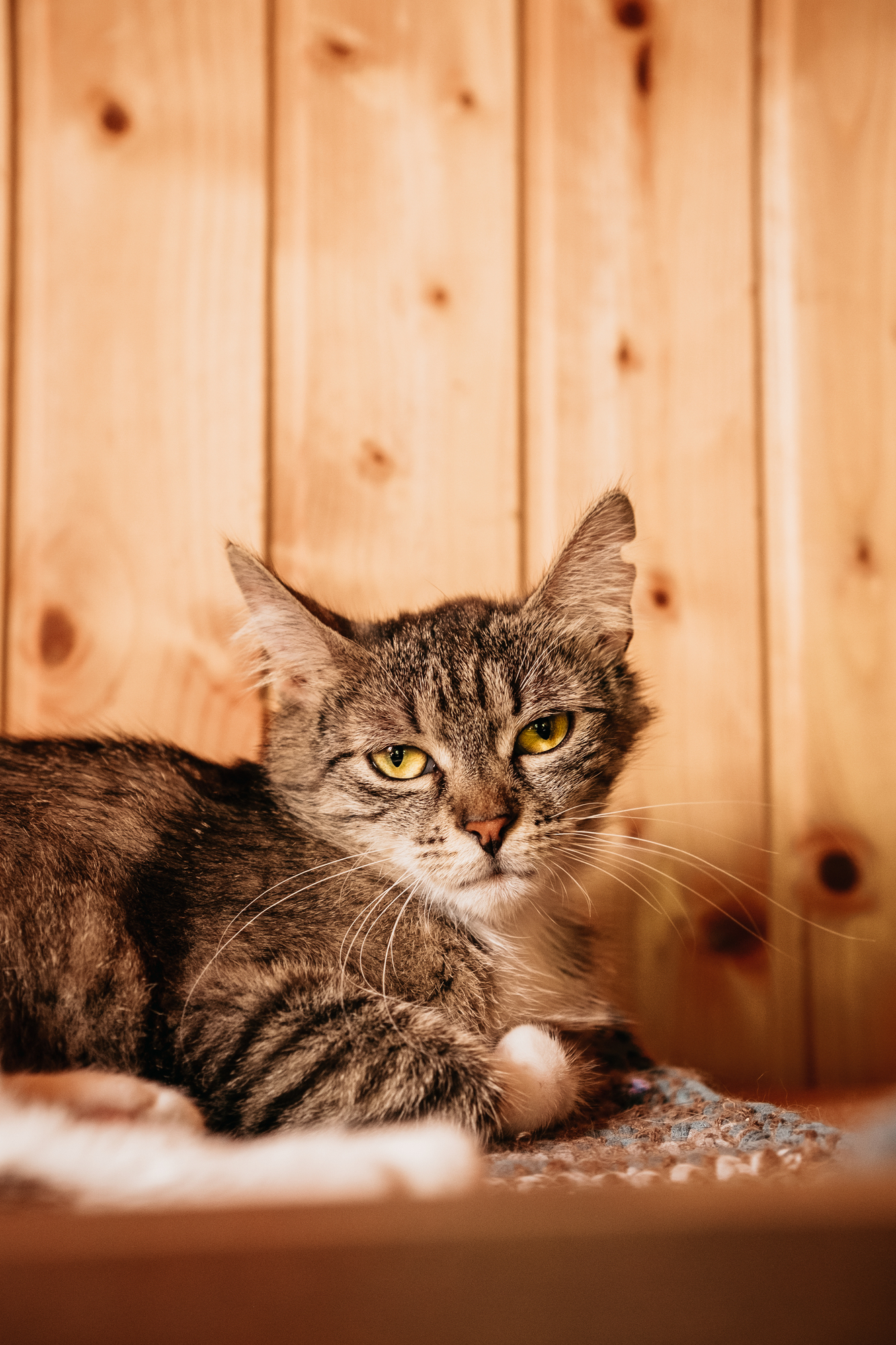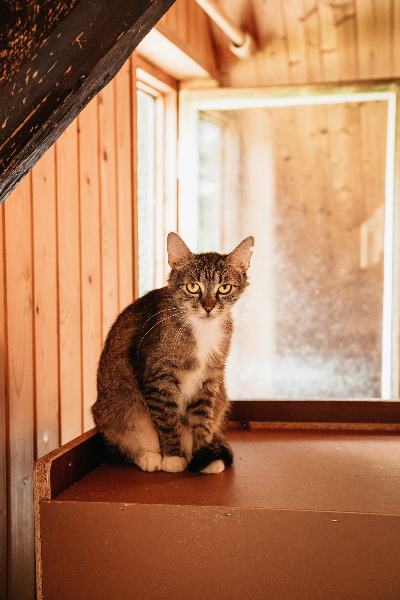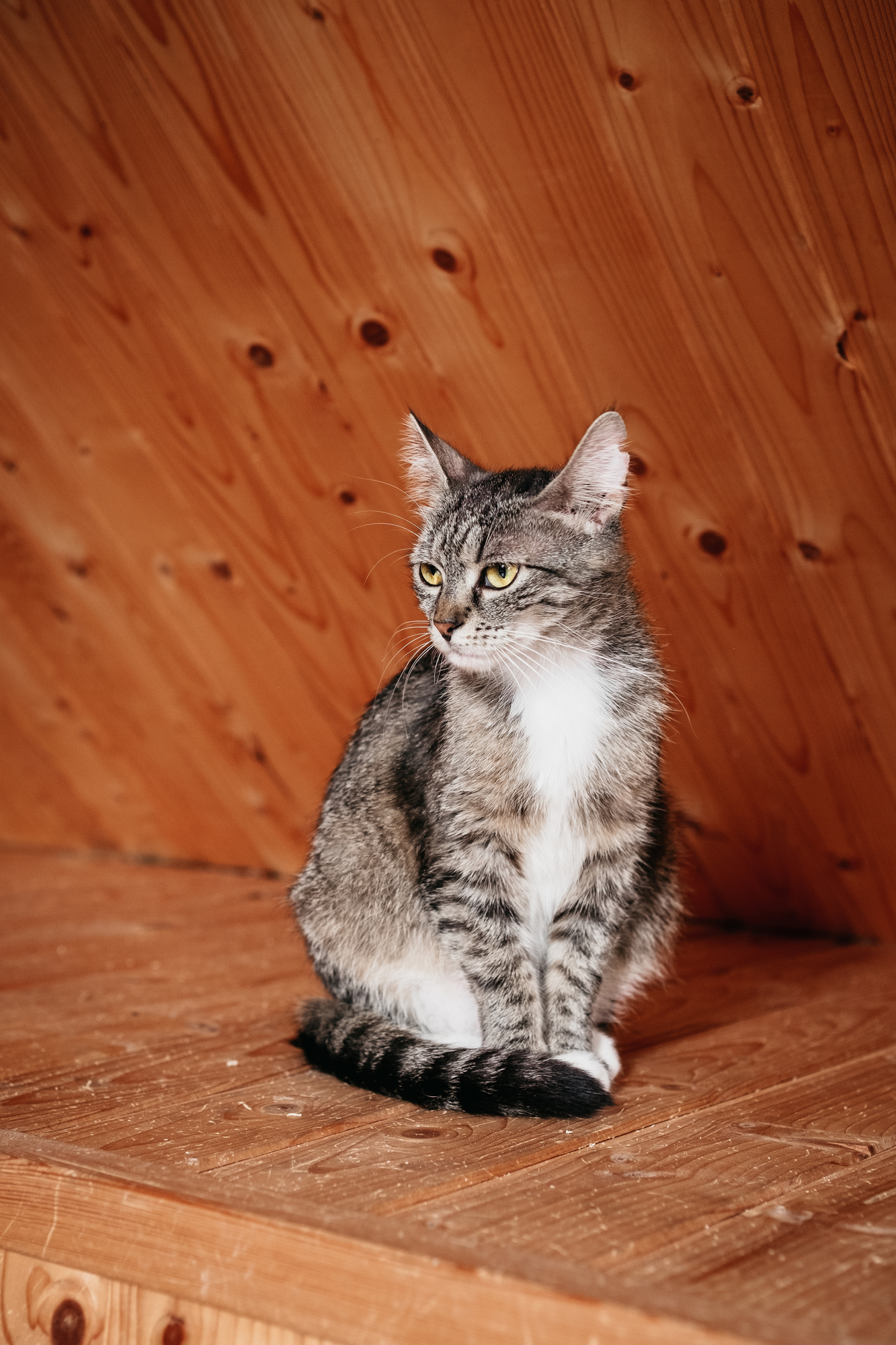 S kočkami vychází jako s lidmi, chvíli je miluje, chvíli jim chce nabančit, proto by byla vhodná jako jedináček s dostatkem pozornosti nebo k vyrovnané kočce. Je asi třičtvrtě roku stará, očkovaná, čipovaná, kastrovaná i testovaná na FIV a FeLV. Na svého člověka si chvilku bude zvykat, ale pak z ní bude zvědavý ocásek