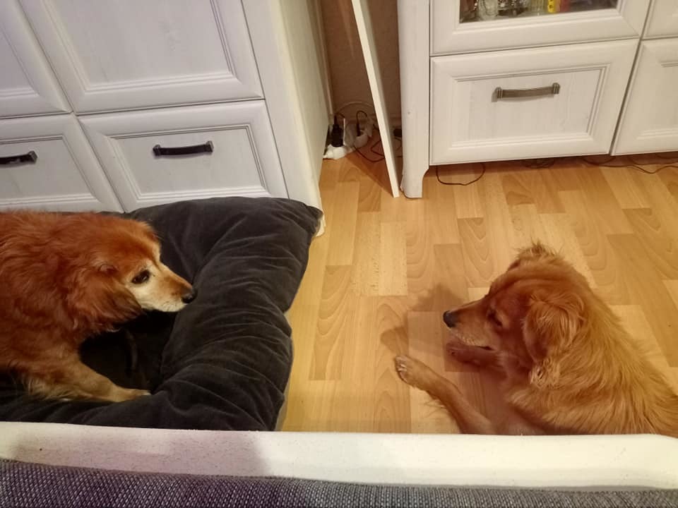 Rexíkovi trošku ujíždí jedna strana zadečku, nechali jsme tedy udělat rtg, které měl ok. Jen v bederní části měl asi u tří nebo čtyř obratlů "špičky". Naše veterinářka Nikča však naznala, že celkově je rentgen "čistý". Problém s nožkami bude tedy asi spíše připadat ke stáří + k tomu, že Rexík není vůbec nasvalený, jelikož žil na úvazu bez pravidelných procházek.
