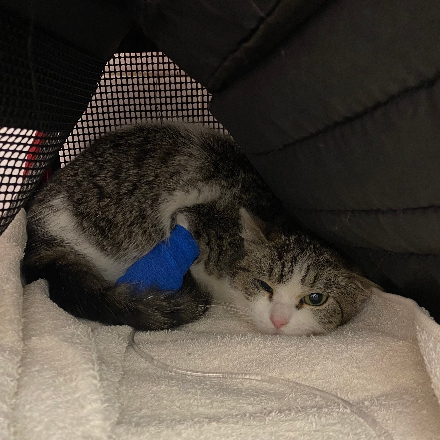 Kvido je mladý tuláček, který začal chodit k jedné paní na krmení a ta si po nějaké době všimla že má zraněnou packu. Po návštěvě veteriny se zjistilo, že se jedná o zlomeninu pod kloubem. To však nelze snadno fixovat a proto musel podstoupit operaci na klinice v Brandýse, která se podařila.