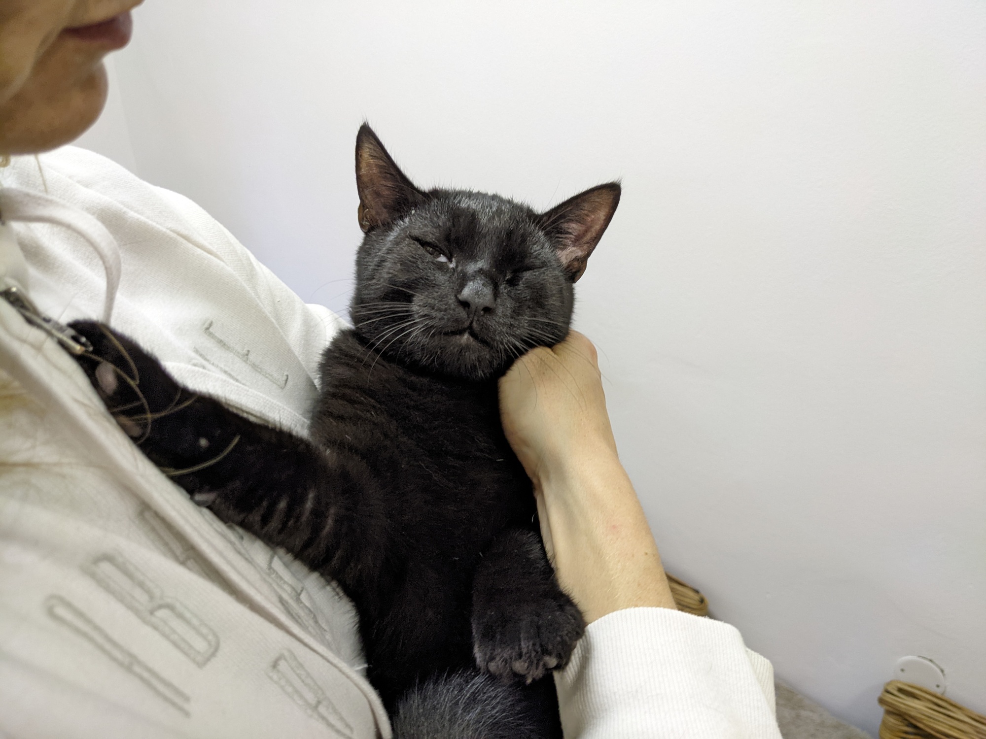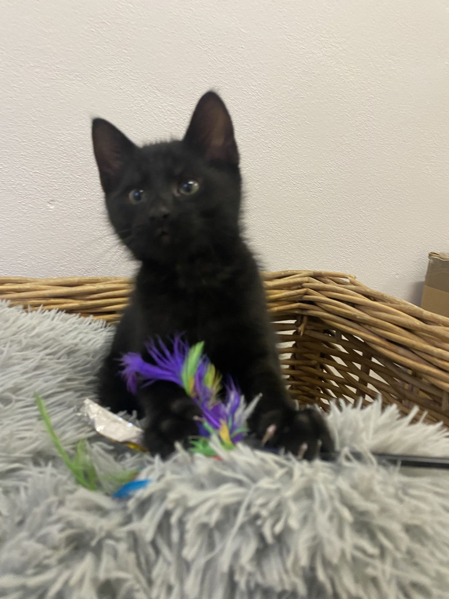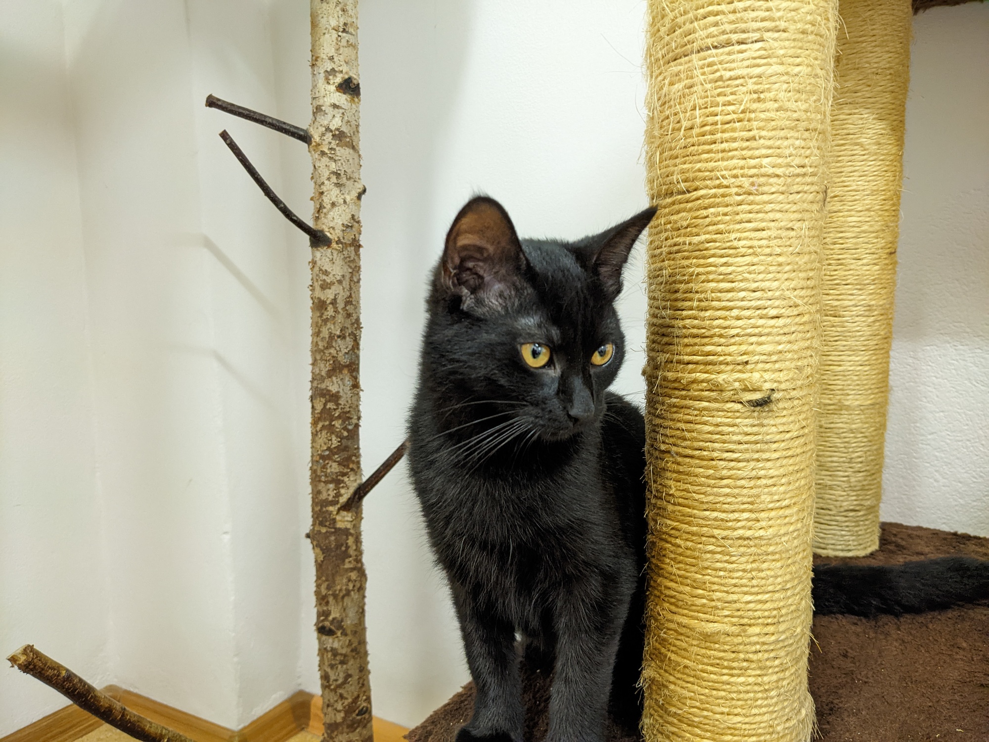 Hravý ďáblík, který je nevymazlený a sápe se na nás při každé návštěvě kočkonária :) Je zvyklý na jiné kočky, děti a čistotný.