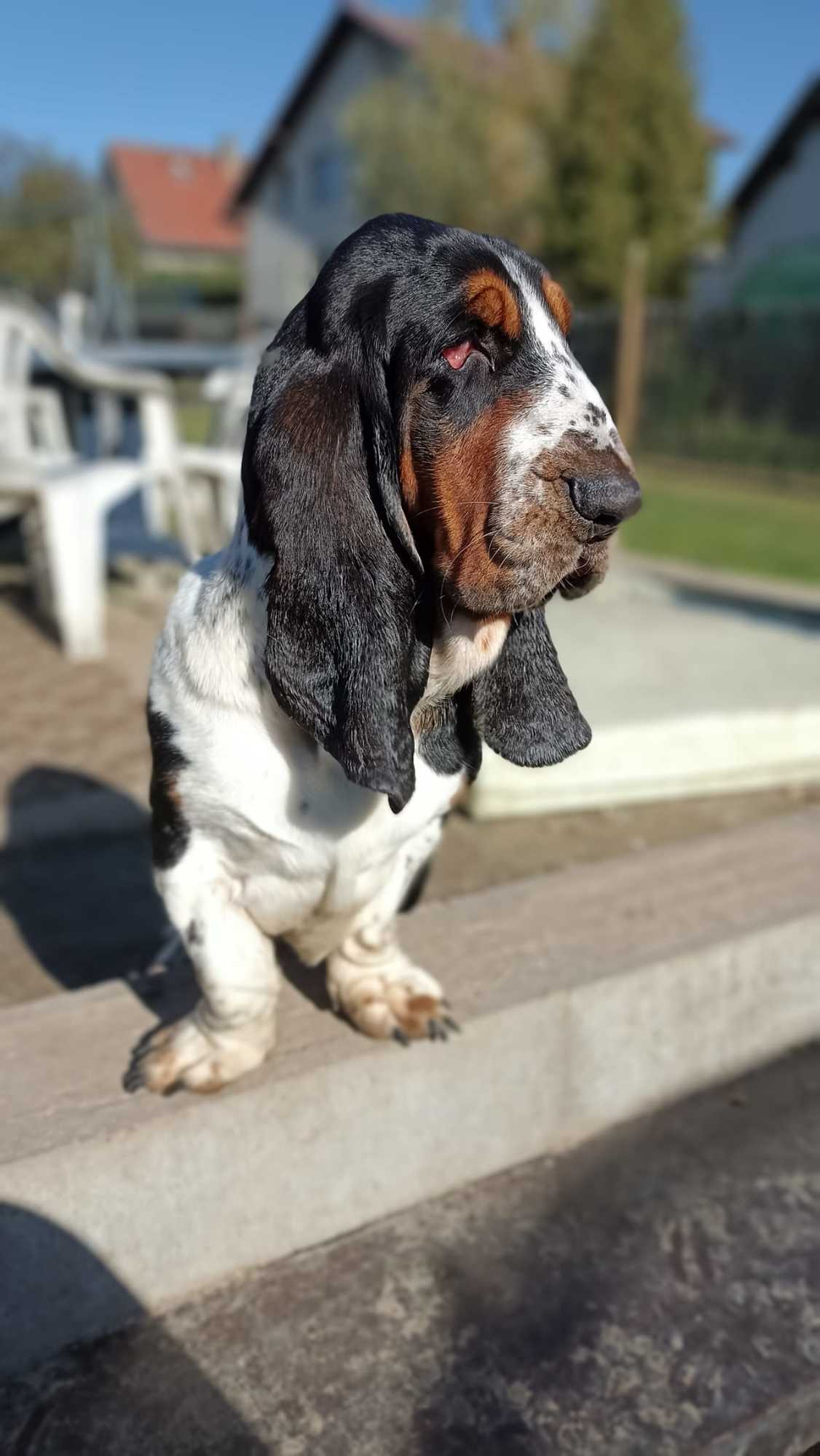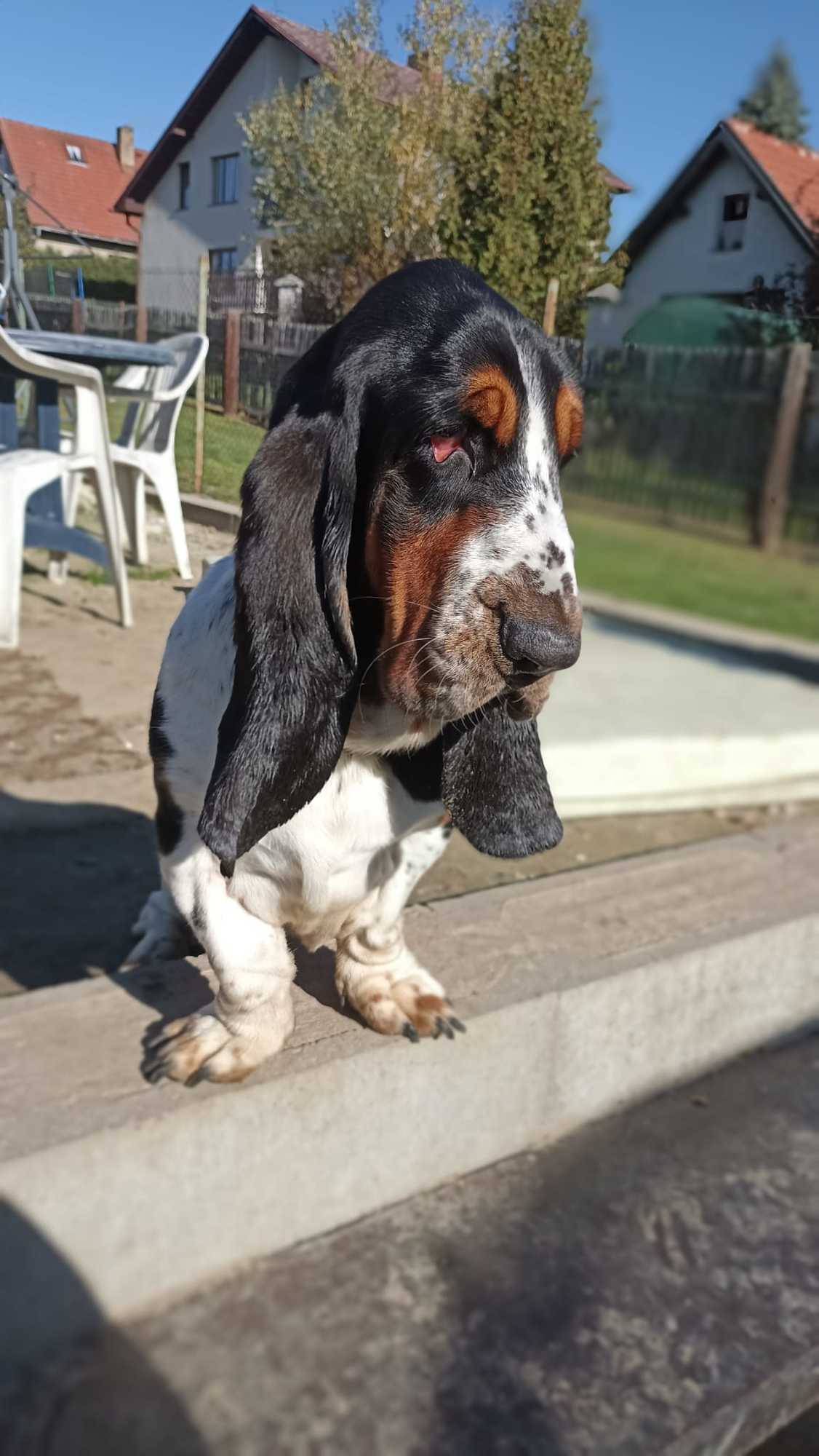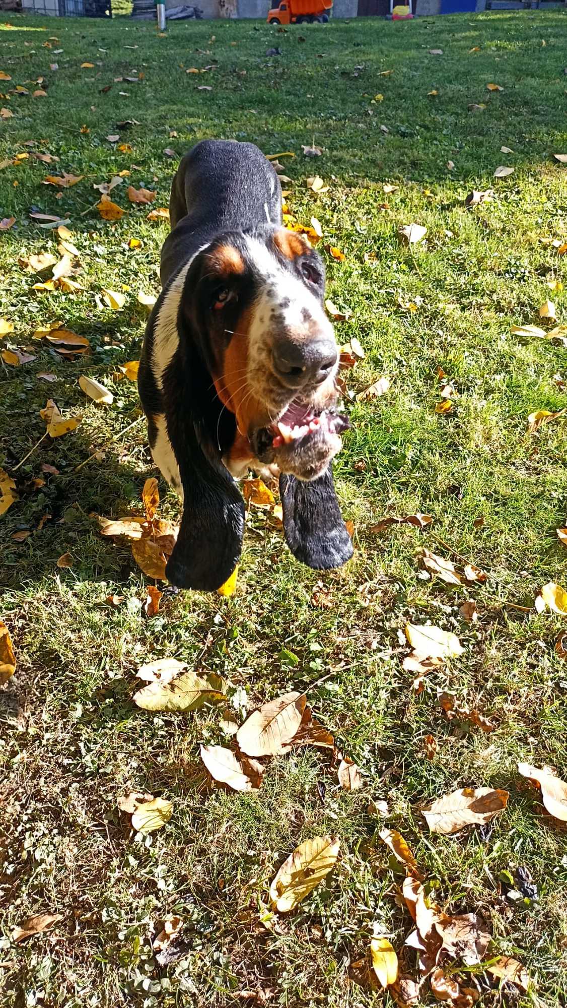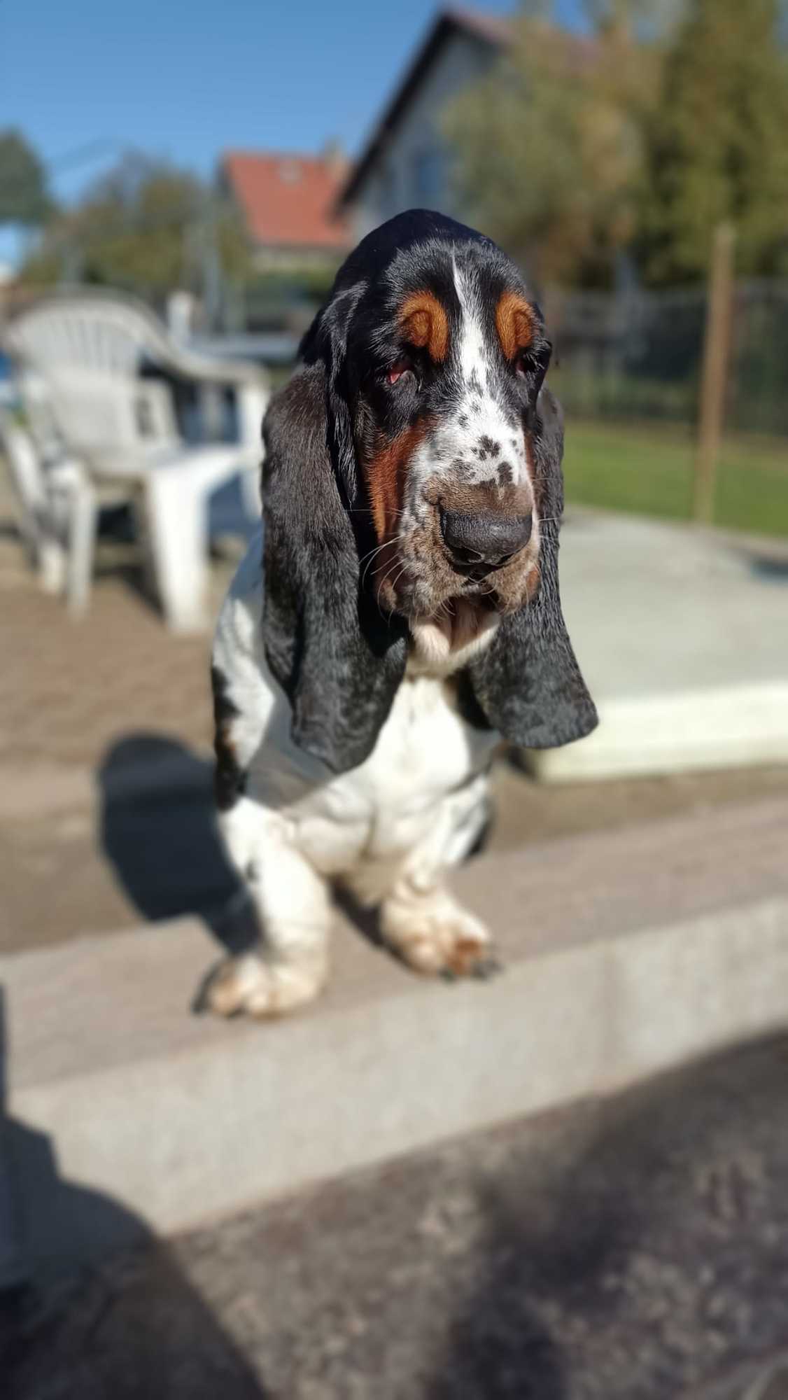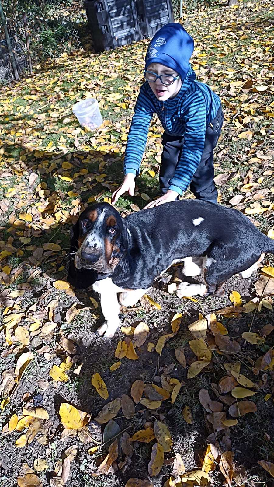 Seznamte se, pan Drake. (Drejk). ❤️❤️❤️Je to roční roztomilý baset s průkazem původu, který miluje svou lidskou i psí smečku a všude ji následuje. Pokud tedy chcete mít stále při sobě asistenci a roztomilý dozor, je Drake pravý pes pro Vás...:) Doma nic neničí a hygienu zvládá. Ideální by byl domov bez schodů, ale procházky mu problém vůbec nedělají, ba naopak, je to docela akčňák. Zahradu má rád a vyvaluje se na sluníčku.