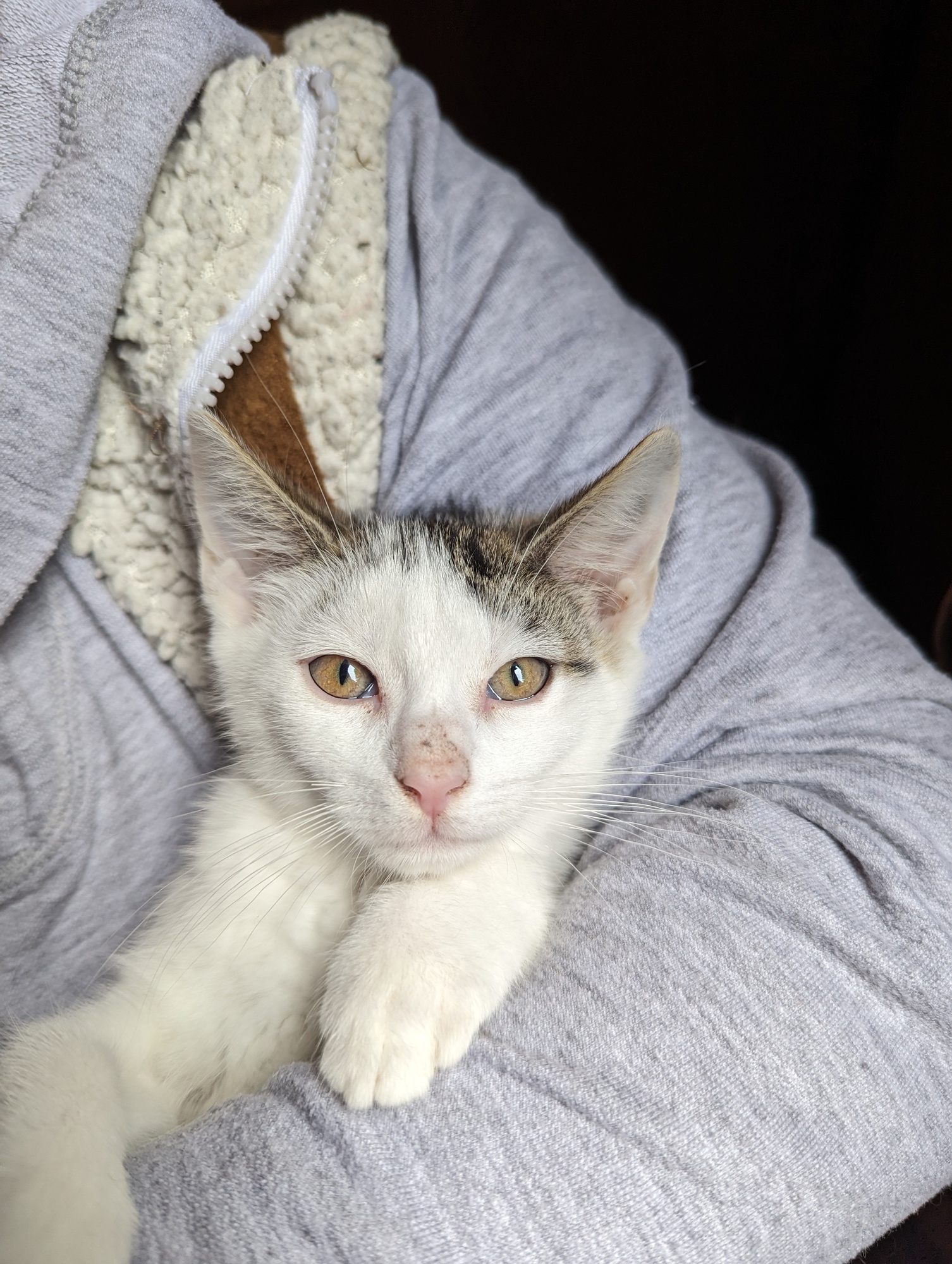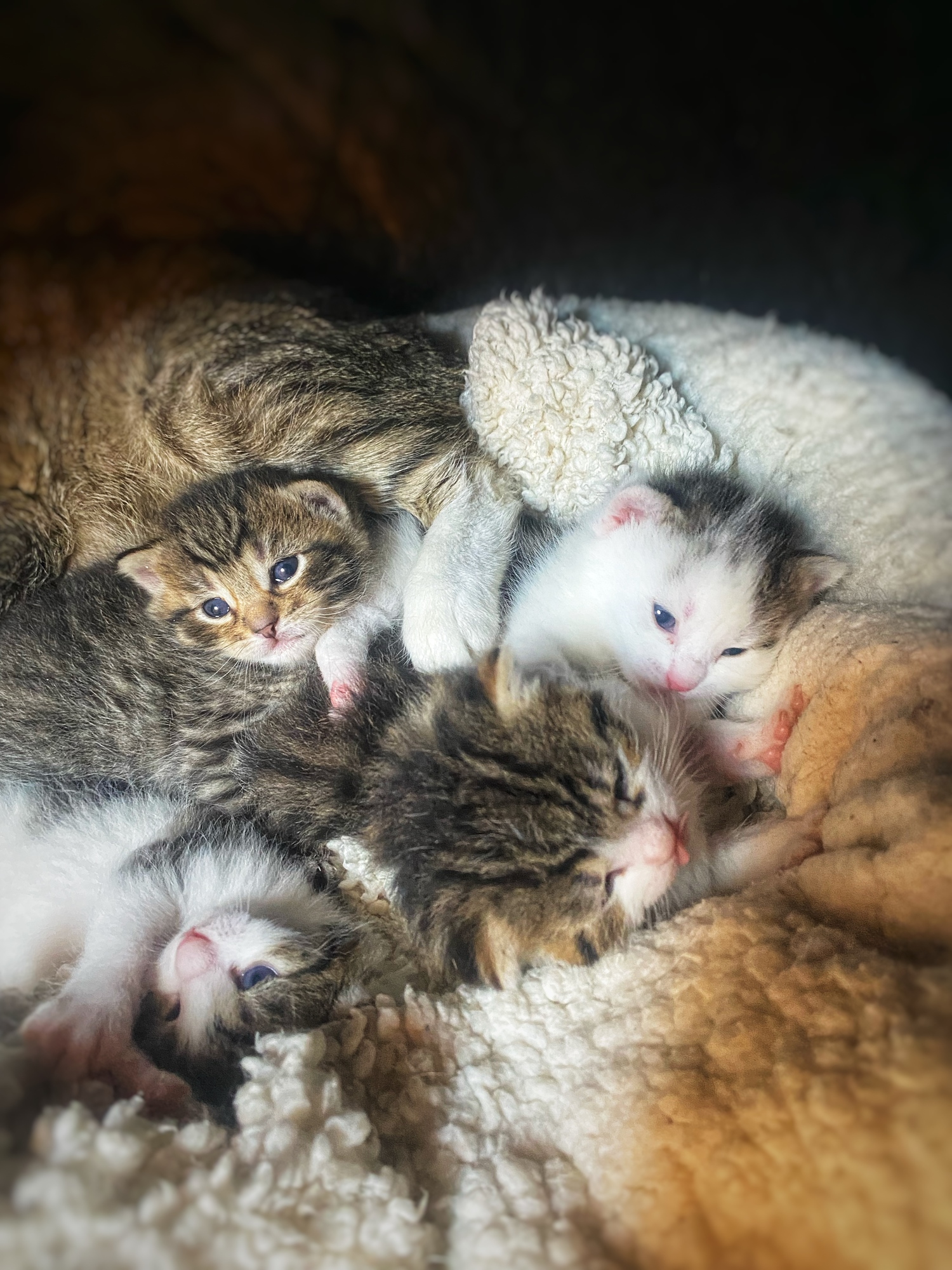 Narozen 18.5. mamince Májulce. Magnus je odvážný kluk, výšky a šplhání ho neděsí. Mazlením zatím moc neztrácí čas, má spoustu práce s blbnutím se sourozenci.Má za sebou první očkování.