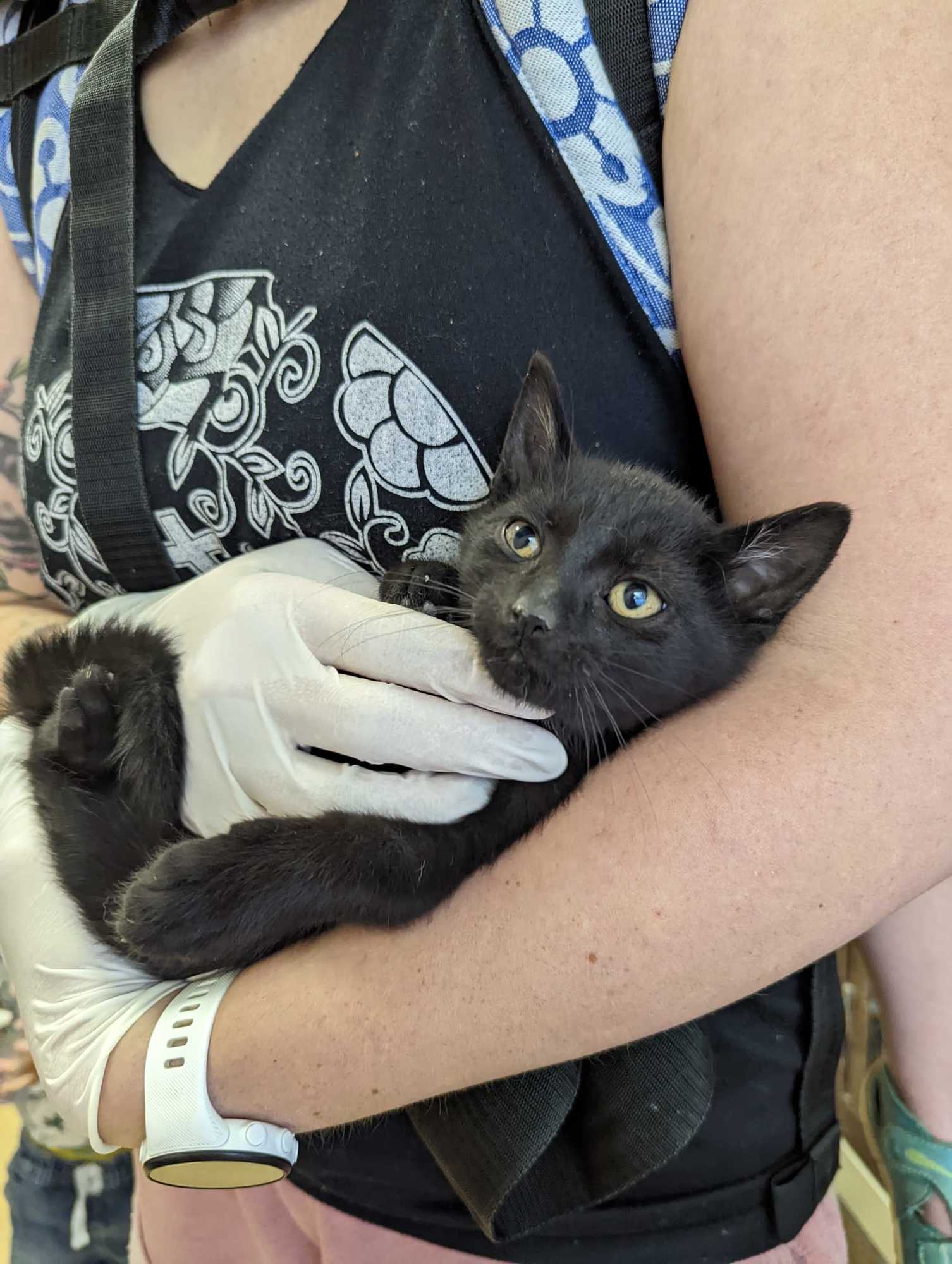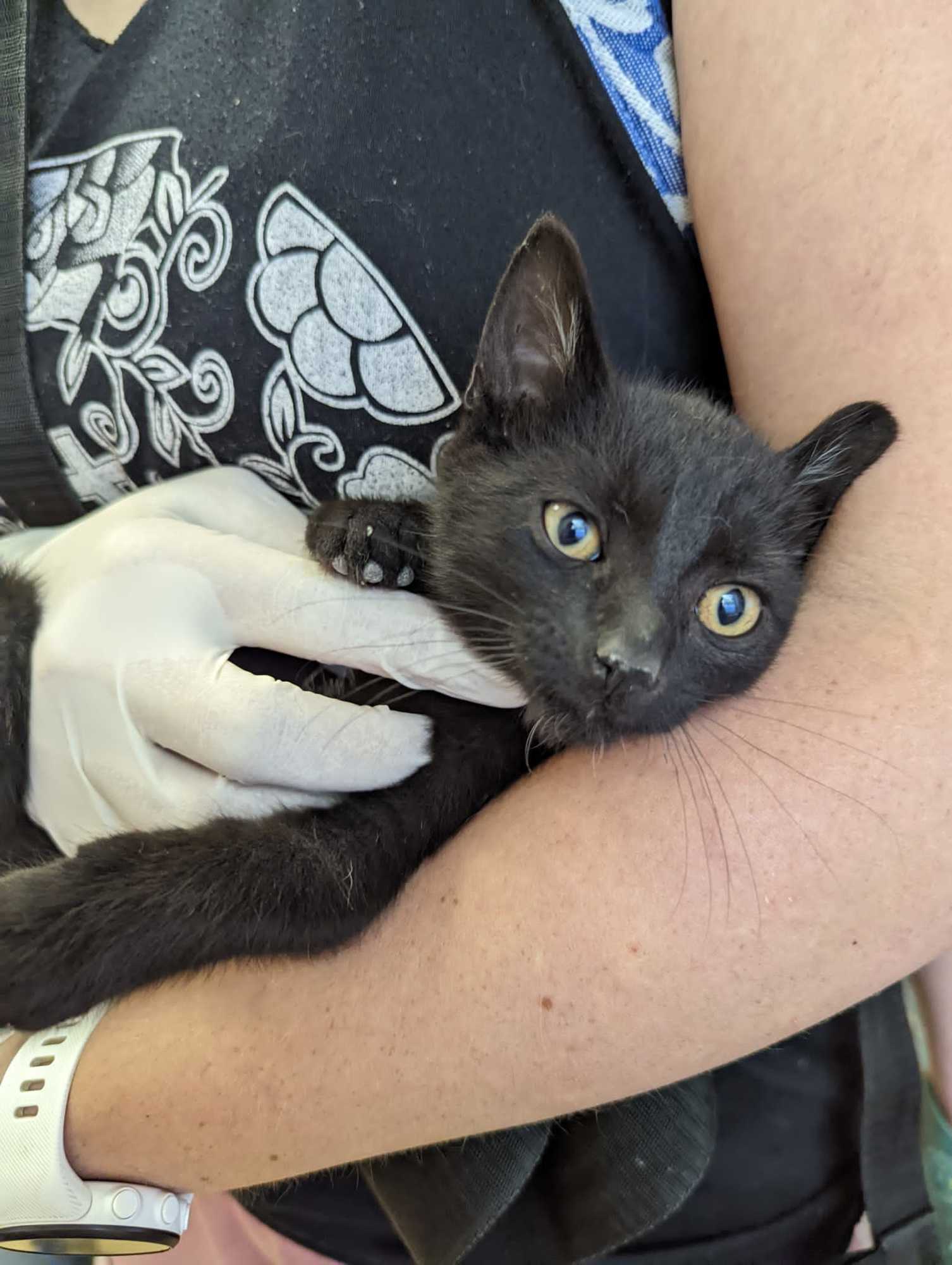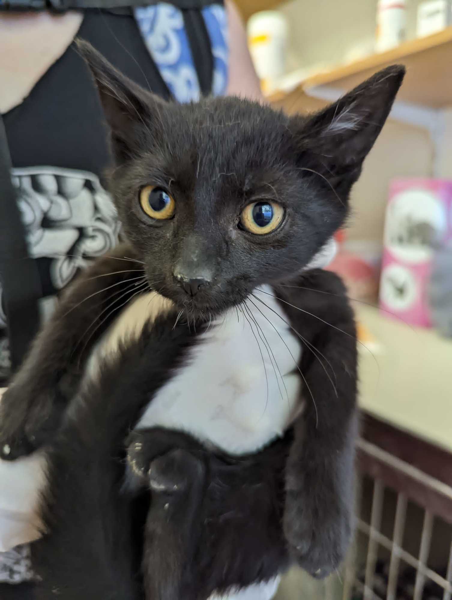 Pochází z liberecké sběrny kovů, kde se přemnožily kočky. Zprvu se boji, bude potřebovat dávku laskavosti a trpělivosti.