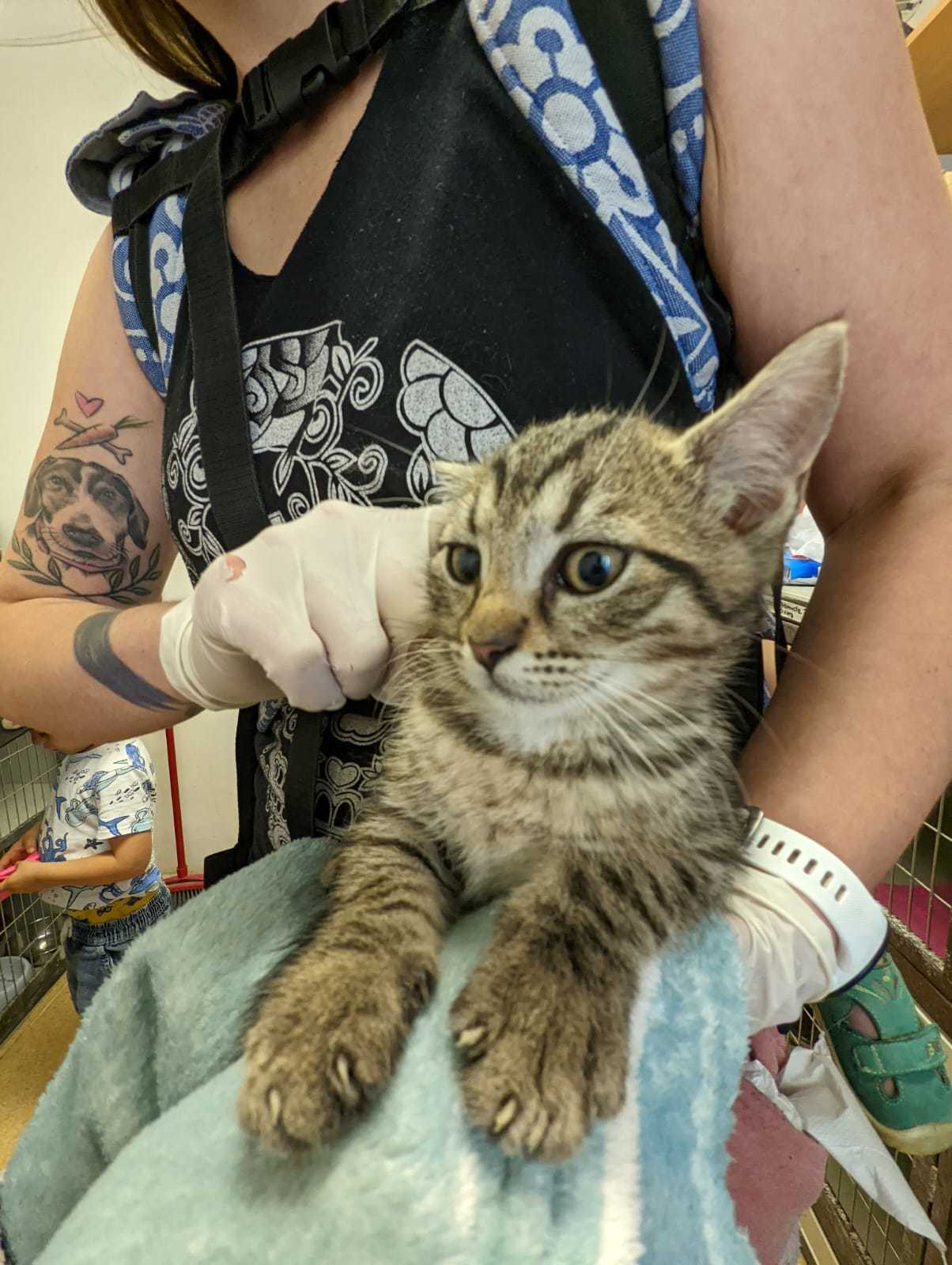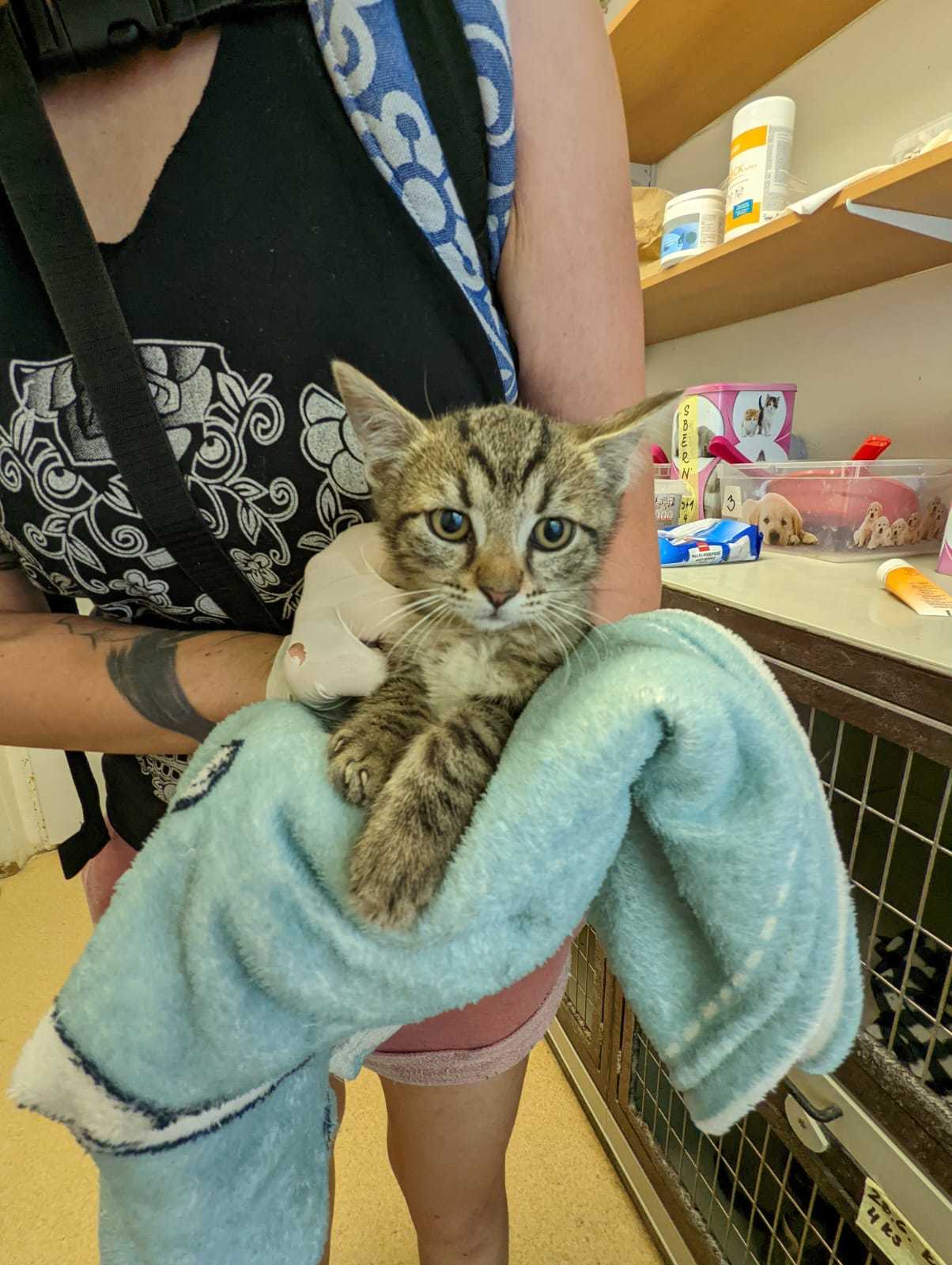 Pochází z liberecké sběrny kovů, kde se přemnožily kočky. Zprvu se boji, bude potřebovat dávku laskavosti a trpělivosti.