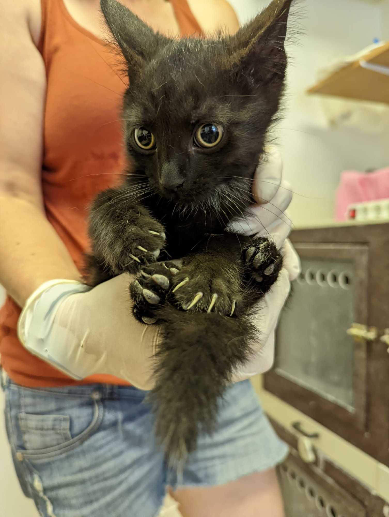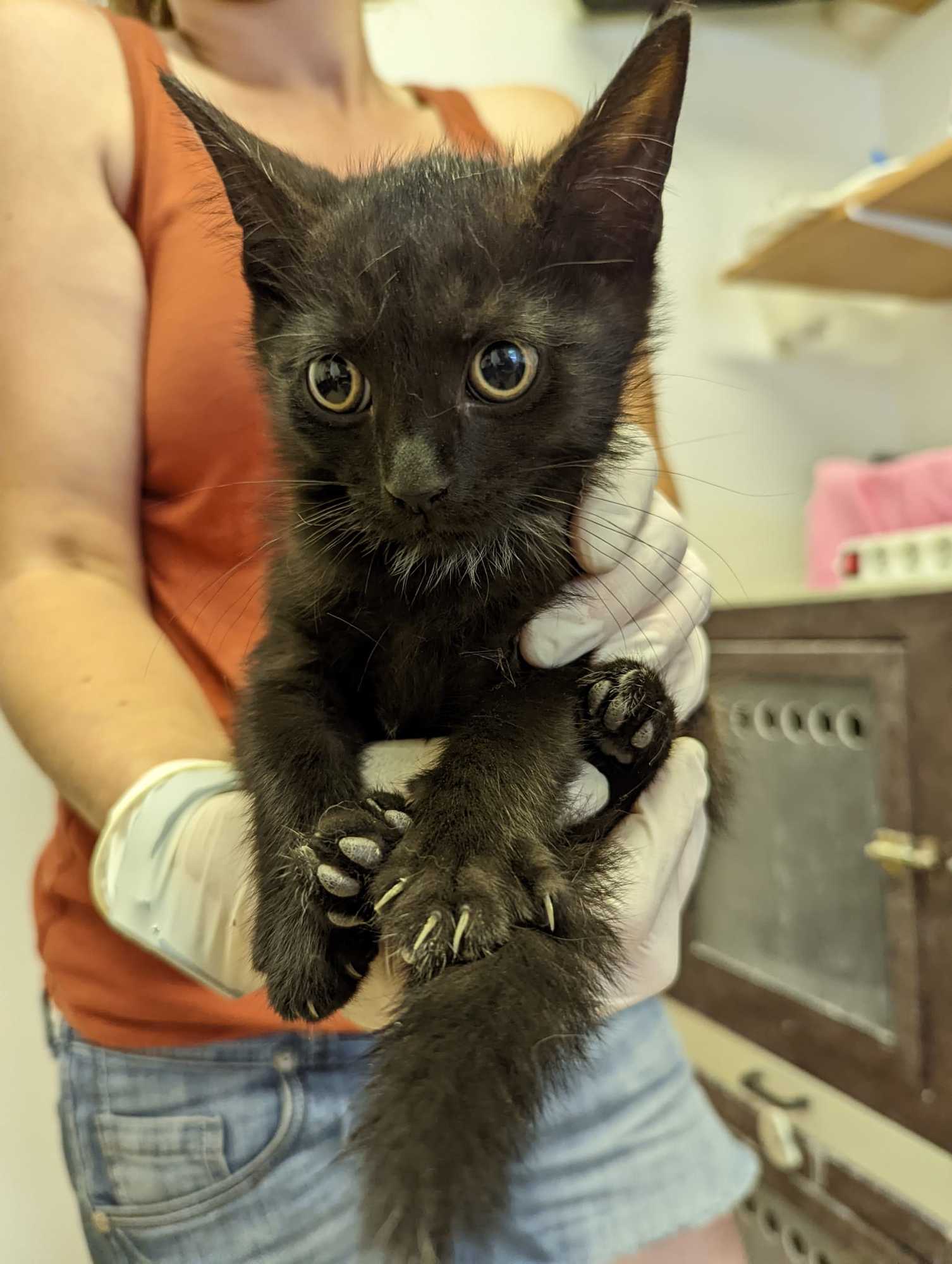 Pochází z liberecké sběrny kovů, kde se přemnožily kočky. Zprvu se boji, bude potřebovat dávku laskavosti a trpělivosti.