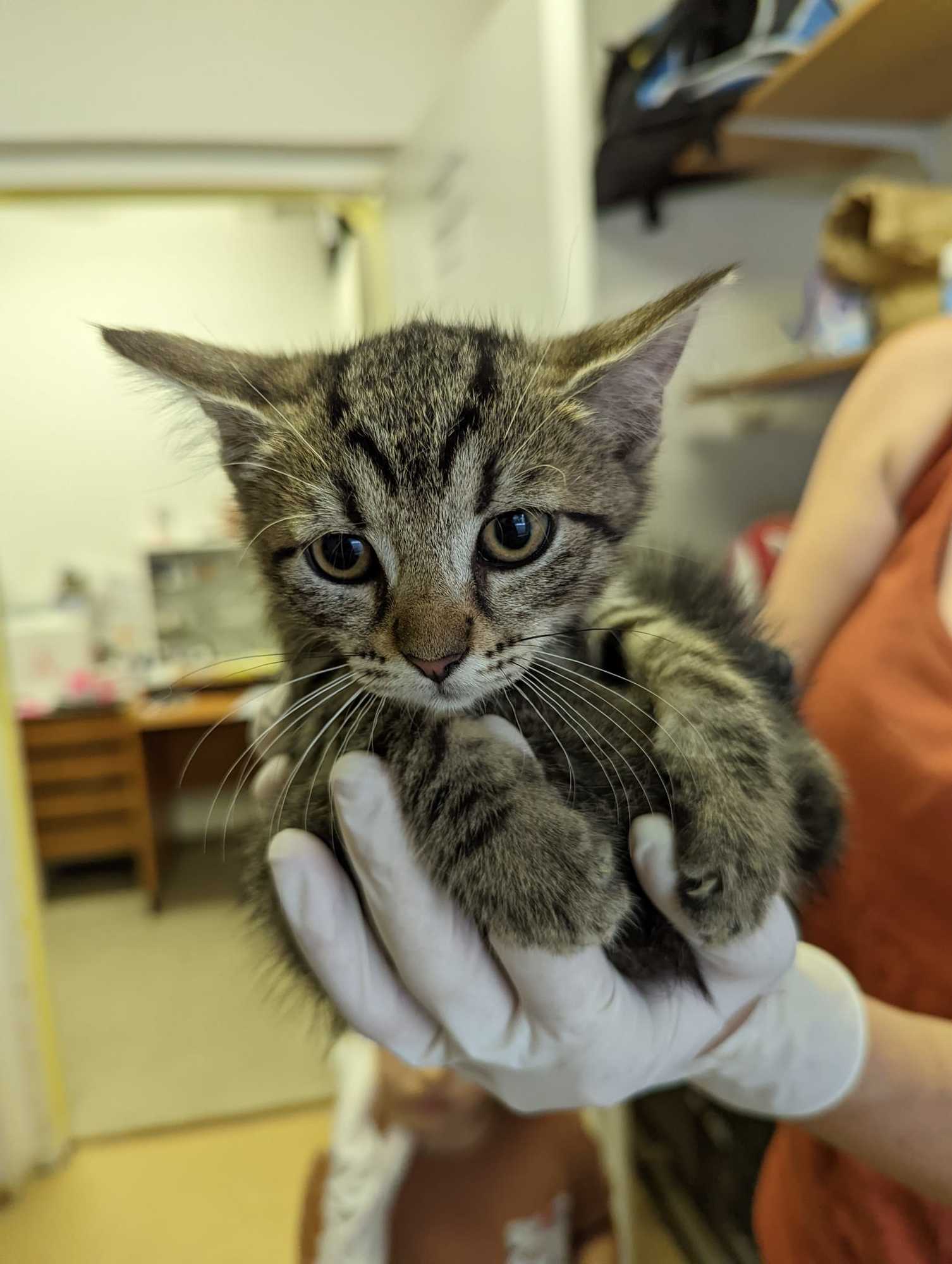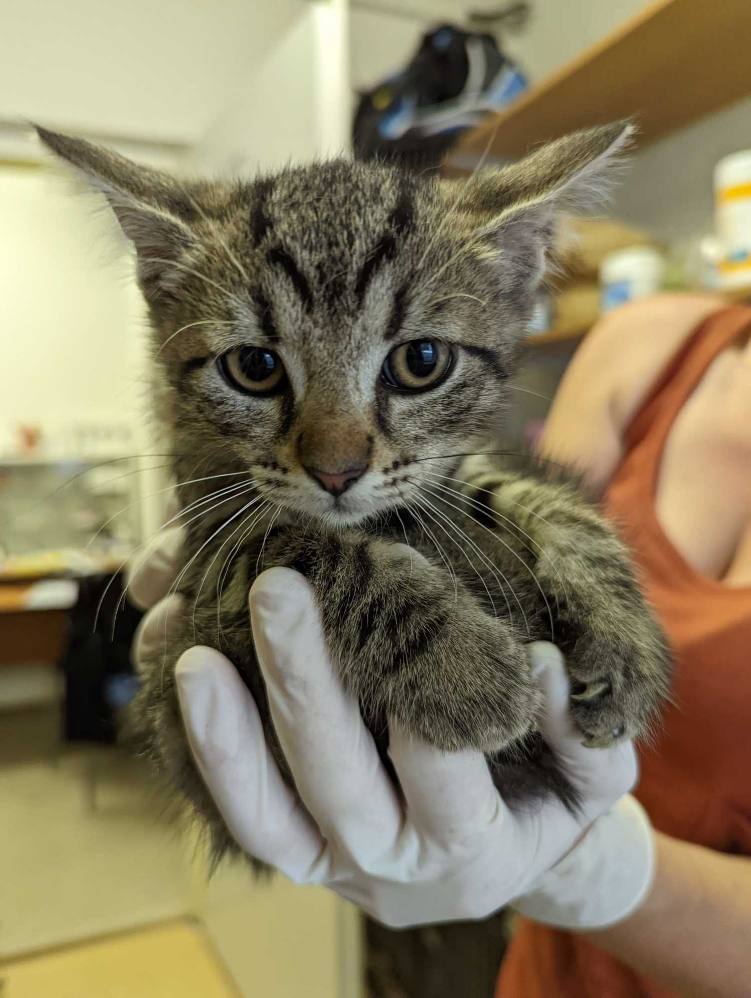 Pochází z liberecké sběrny kovů, kde se přemnožily kočky. Zprvu se boji, bude potřebovat dávku laskavosti a trpělivosti.