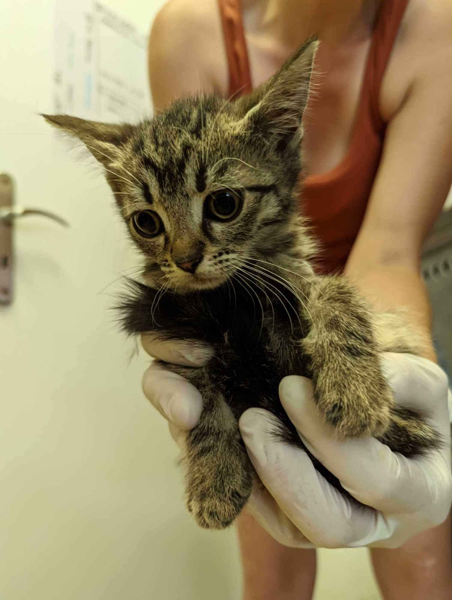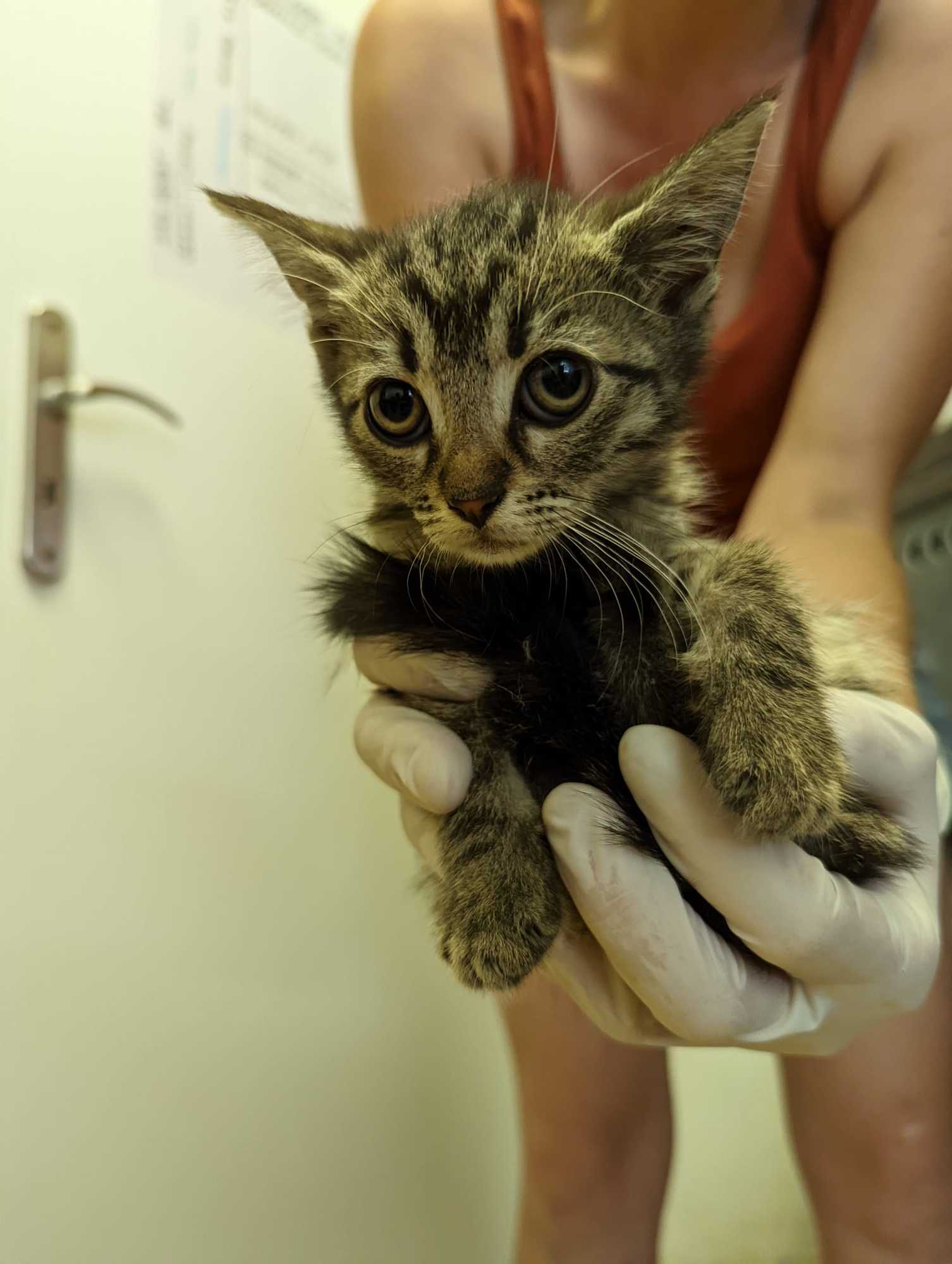 Pochází z liberecké sběrny kovů, kde se přemnožily kočky. Zprvu se boji, bude potřebovat dávku laskavosti a trpělivosti.