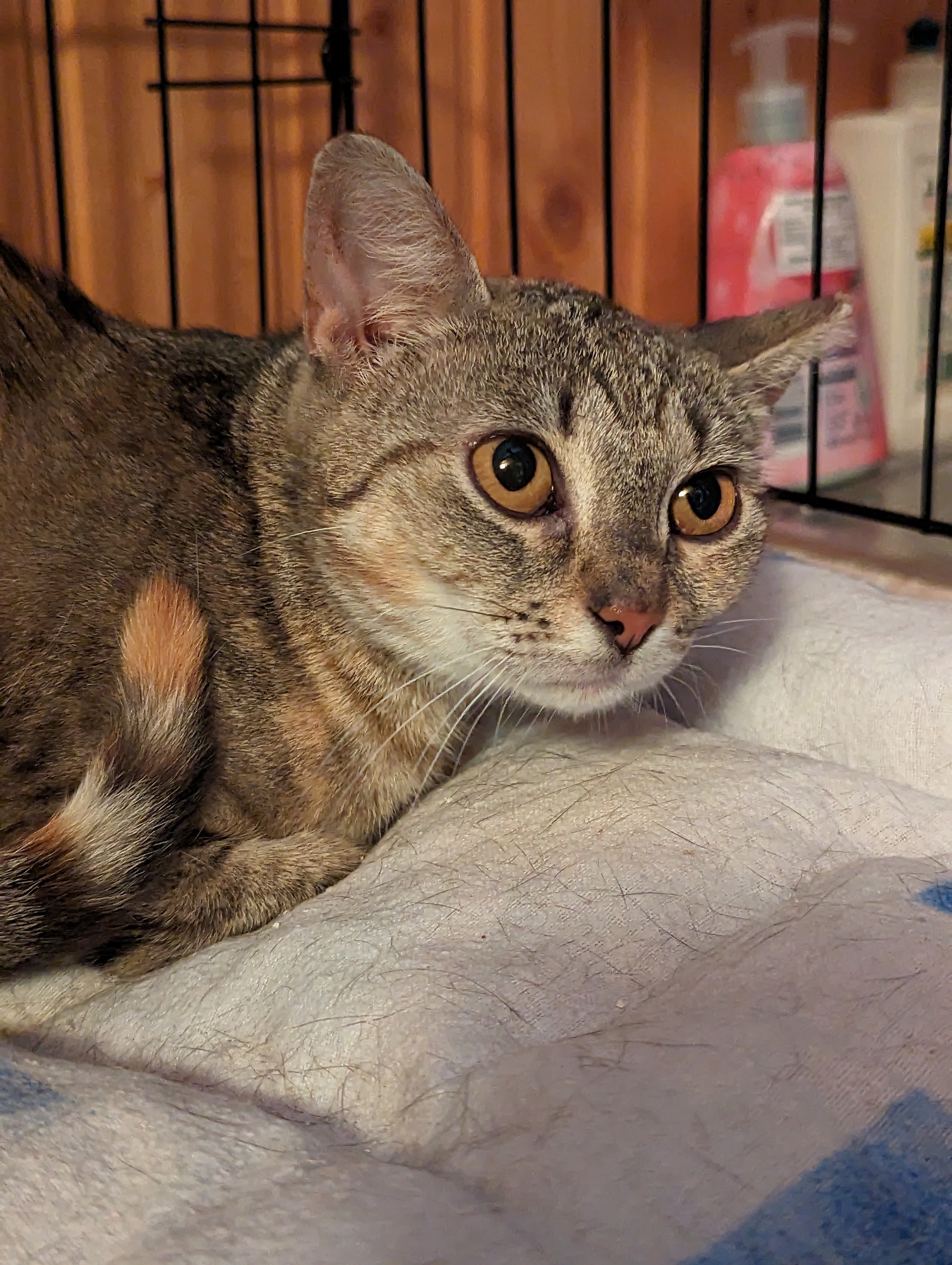 Žížala je drobná kočička, odchycena v opuštěném domě v Hodkovicích nad Mohelkou. Zpočátku je bázlivá, ale po seznámení je z ní velký mazel. Také je velmi zvědavá a přátelská k ostatním kočkám. Podle vzhledu a kožíšku vypadá, jakoby některým z jejích předků mohl být orientálec. Žížala bude velmi vděčnou společnicí svým lidem i kočičímu kamarádovi. Je kastrovaná, nyní jí čeká očkování.