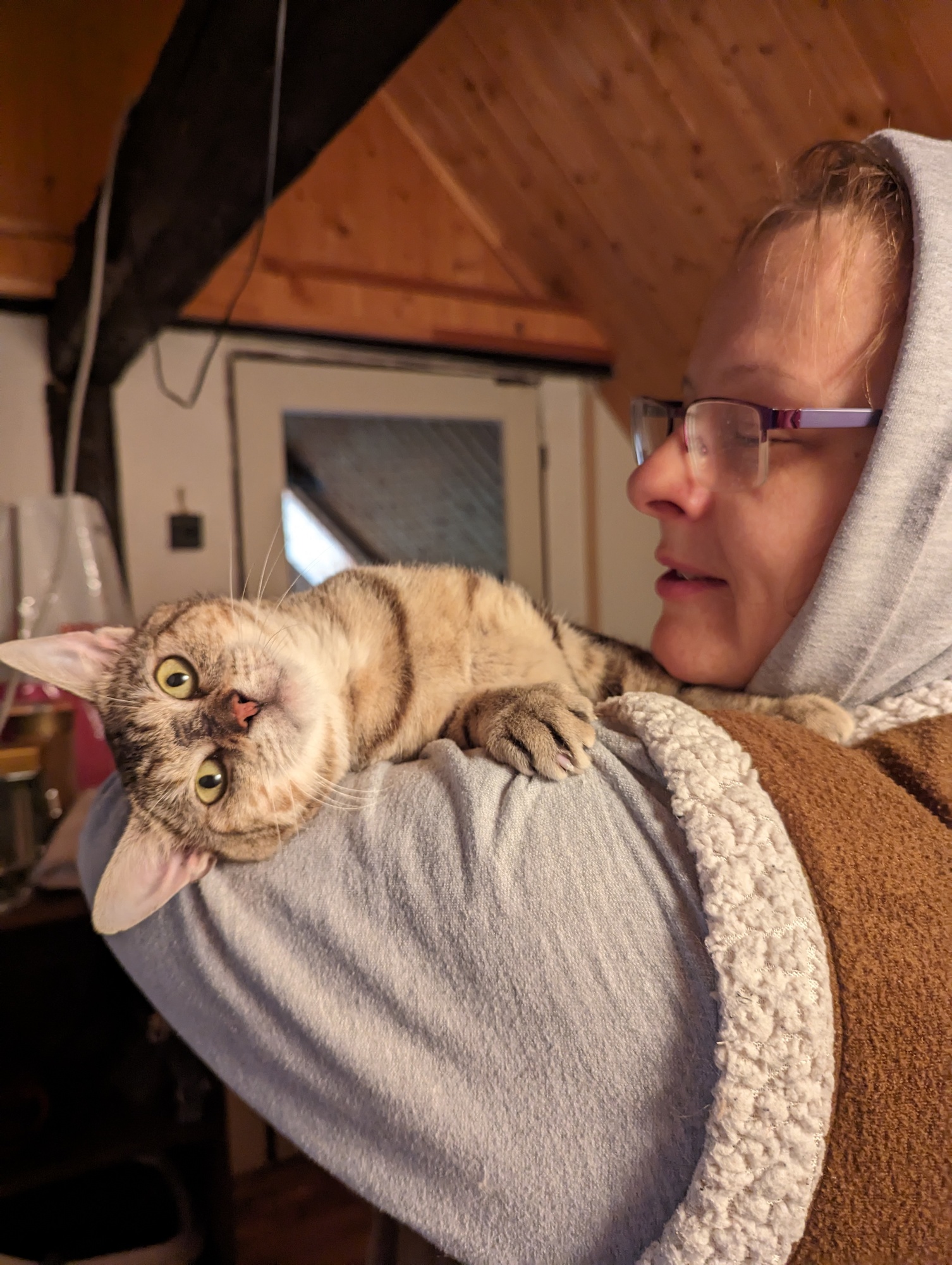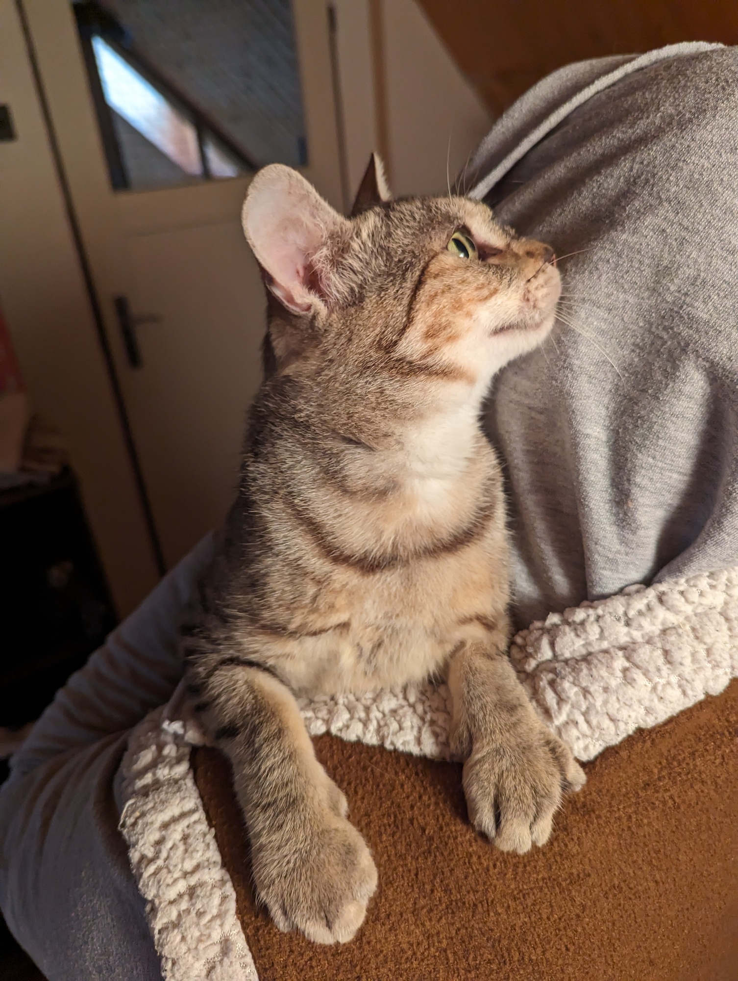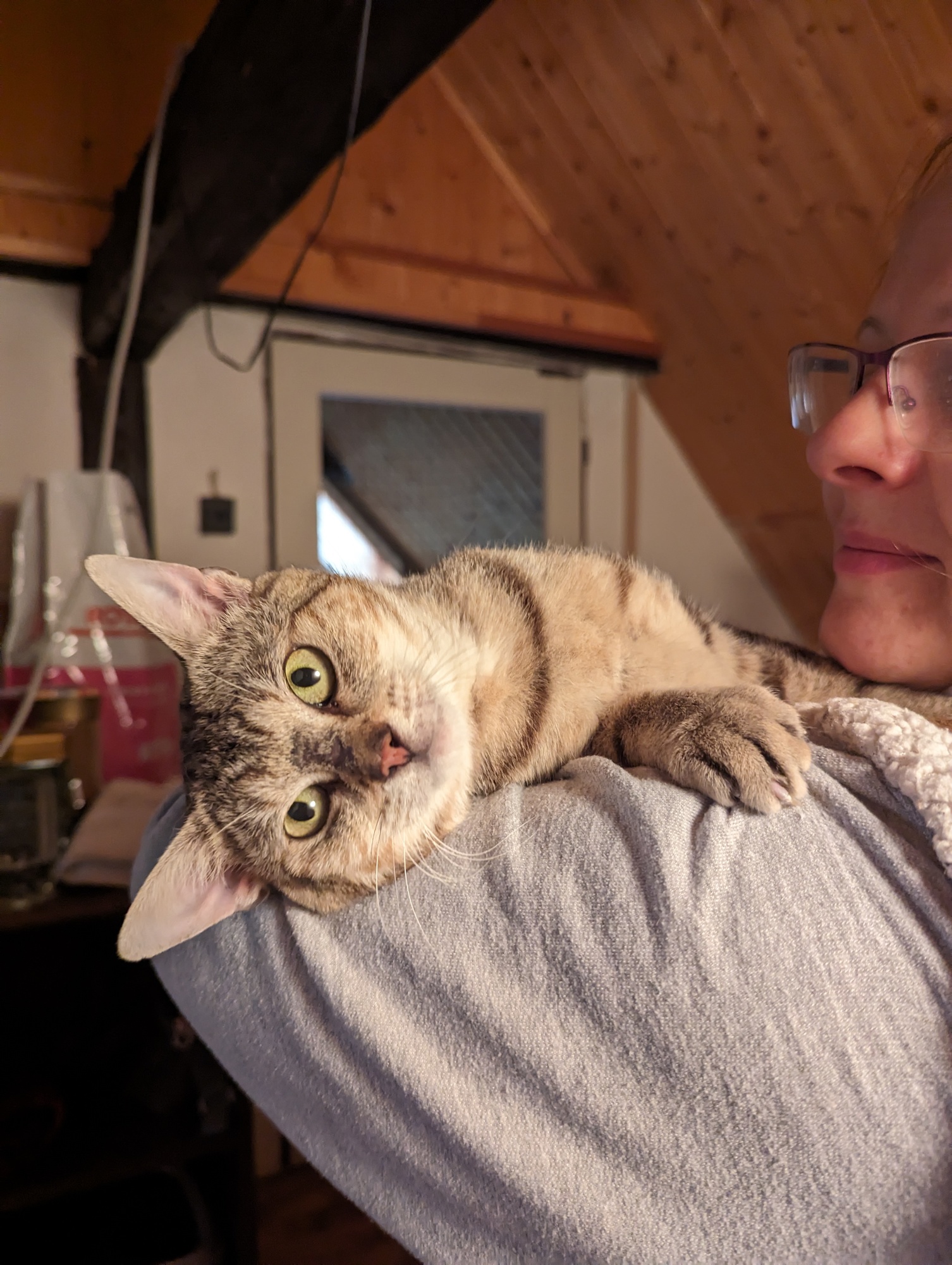 Mazánek je moc milý a tulivý kocourek. Byl odchycen v opuštěném domě v Hodkovicích nad Mohelkou. Měl odřený nosánek, takže vypadá, že se mračí a má naštvaný pohled :) Mazánek se mazlí i s neznámými lidmi, je vděčný za veškerou pozornost. Když už ho zrovna nikdo nehladí, tak se alespoň tře o nohy. Je přátelský i k jiným kočkám. Je už vykastrovaný a čeká ho první očkování.