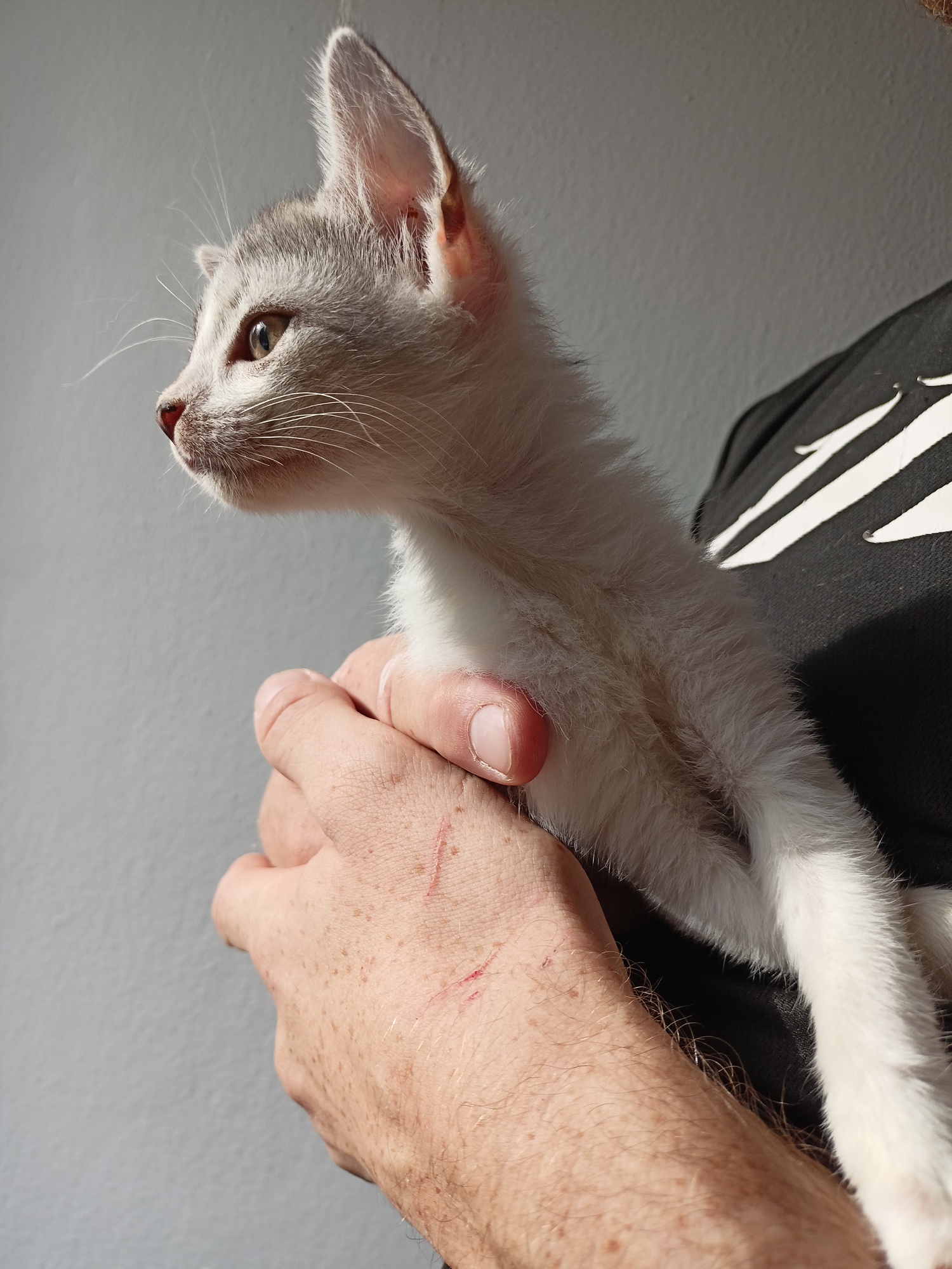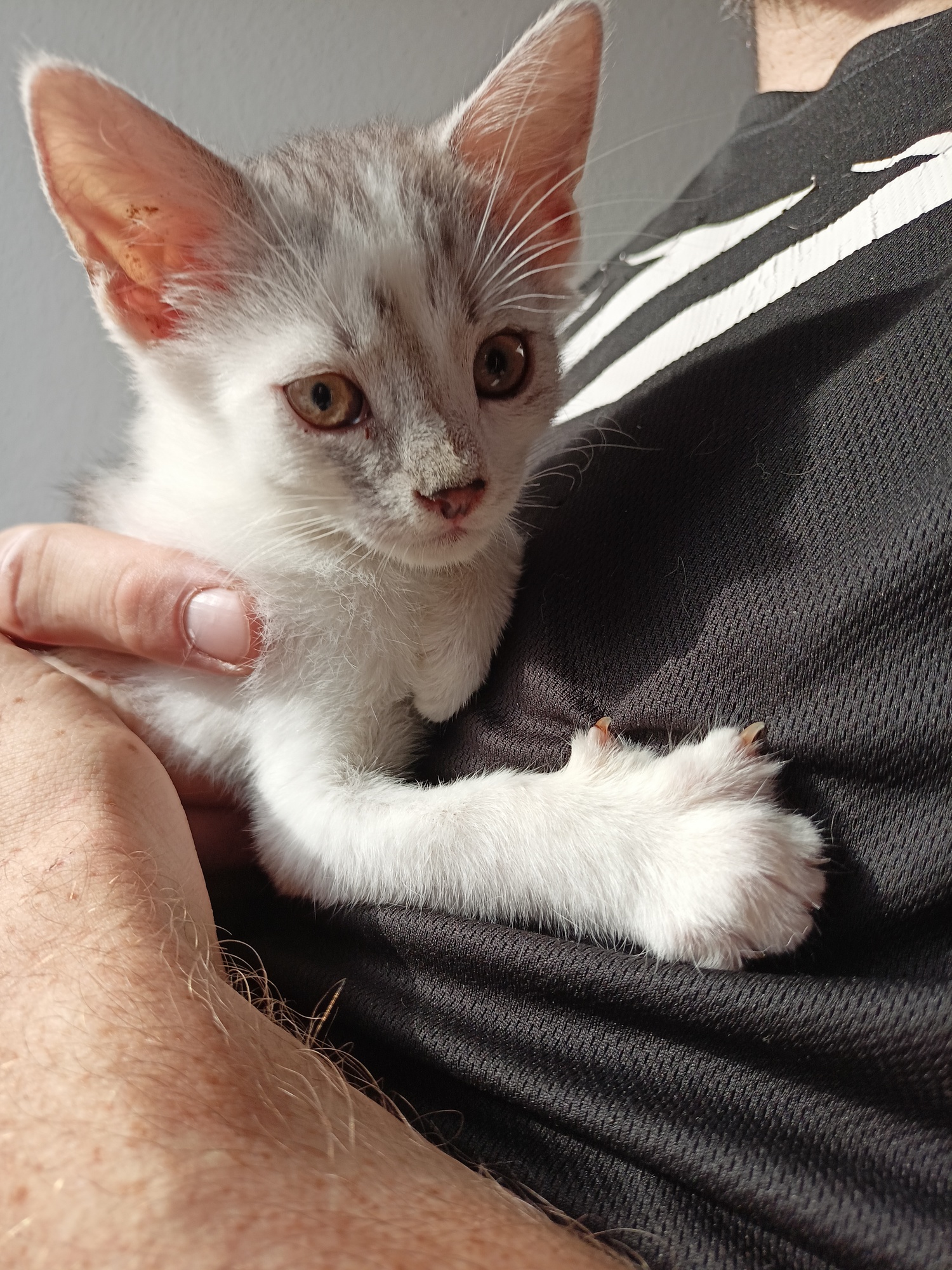 Kaylu jsme přijali dne 20.7.2023 od Městské policie Česká Lípa společně s dalšími 4 sourozenci. Koťátka byla přijatá bez maminky, která byla údajně na místě nálezu mrtvá. Koťátka jsme tedy ručně dokrmovali a o to více jsou závislá na člověku. Do adopce by měla jít buď s jedním ze sourozenců nebo k další dospělé kočce, od které se by mohla učit kočičí chování :-)