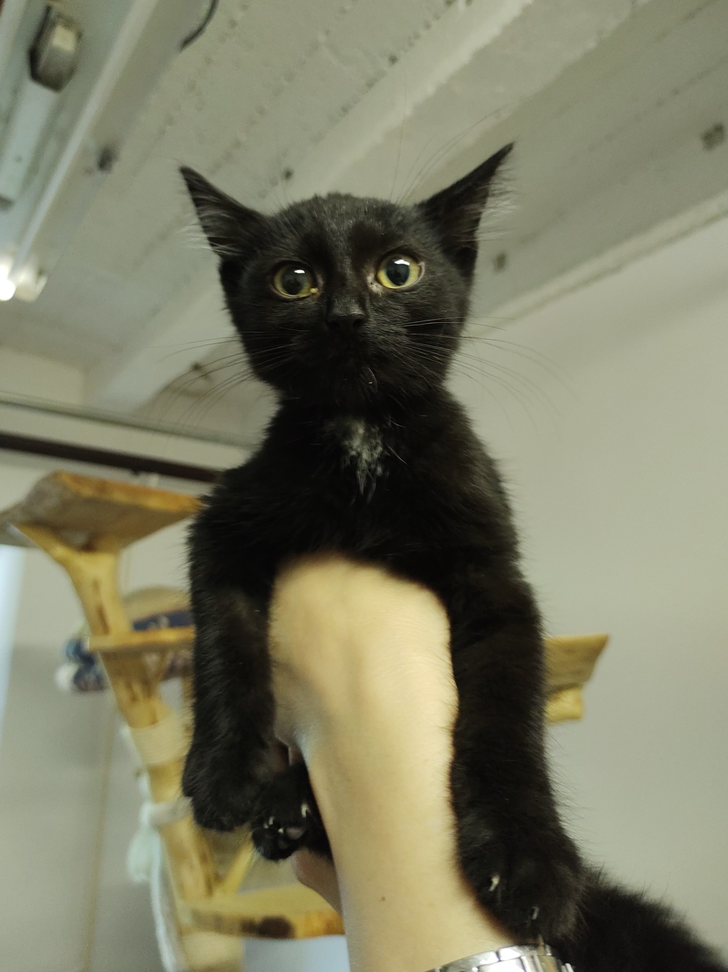 Pochází z liberecké sběrny kovů, kde se přemnožily kočky. Zprvu se boji, bude potřebovat dávku laskavosti a trpělivosti.