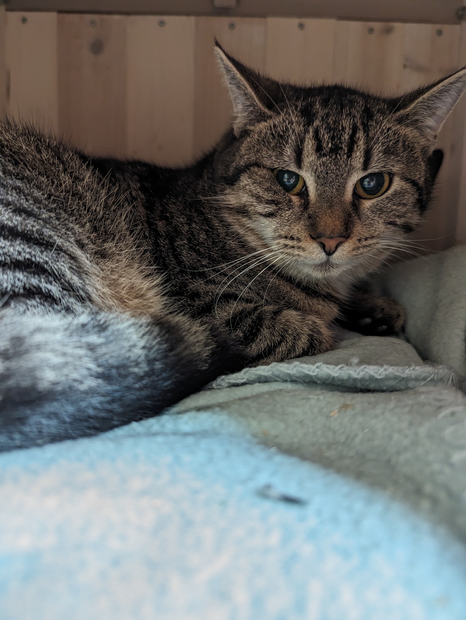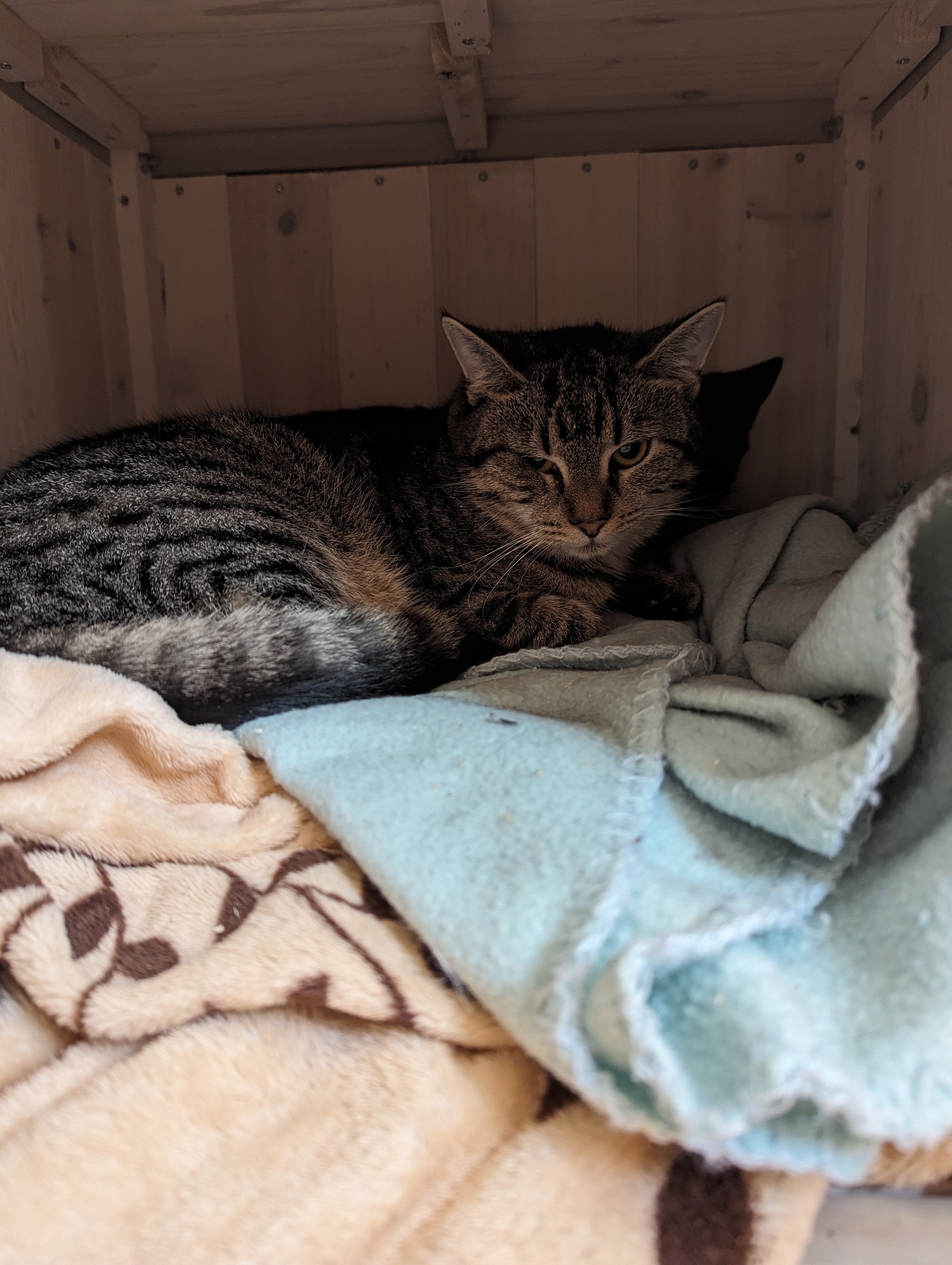 Krásná mourinka, zakřiknutá holčička přijatá v rámci kastračního programu v Ploužnici. Je opatrná vůči cizím, potřebuje trpělivý přístup, případně chodit ven v klidné lokalitě.