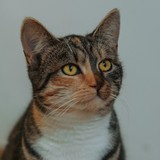 Nádherná kočička s úžasnou povahou kočkopsa. Bude u všeho asistovat stejně jako to dělala své krmičce v zahrádkářské kolonii. Zatím je v karanténě, brzy o ní přineseme více informací.