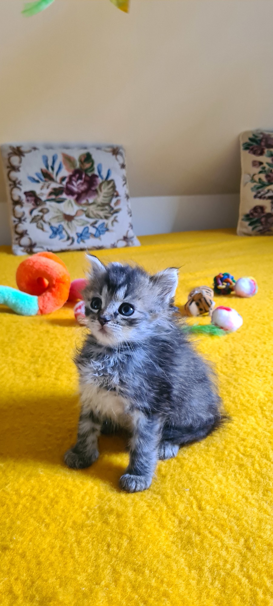 Mr. Jingles byl přijatý od Městské policie Česká Lípa. Byl se svými dalšími 3 sourozenci nalezený v krabici u brány mlékárny se silným zánětem očí. Je to moc milé koťátko. Rádi bychom, aby šel do adopce buď se svým bráškou nebo k další kočce, která by ho naučila kočičímu chování vzhledem k tomu, že jeho maminka se, bohužel, nikde nedohledala.