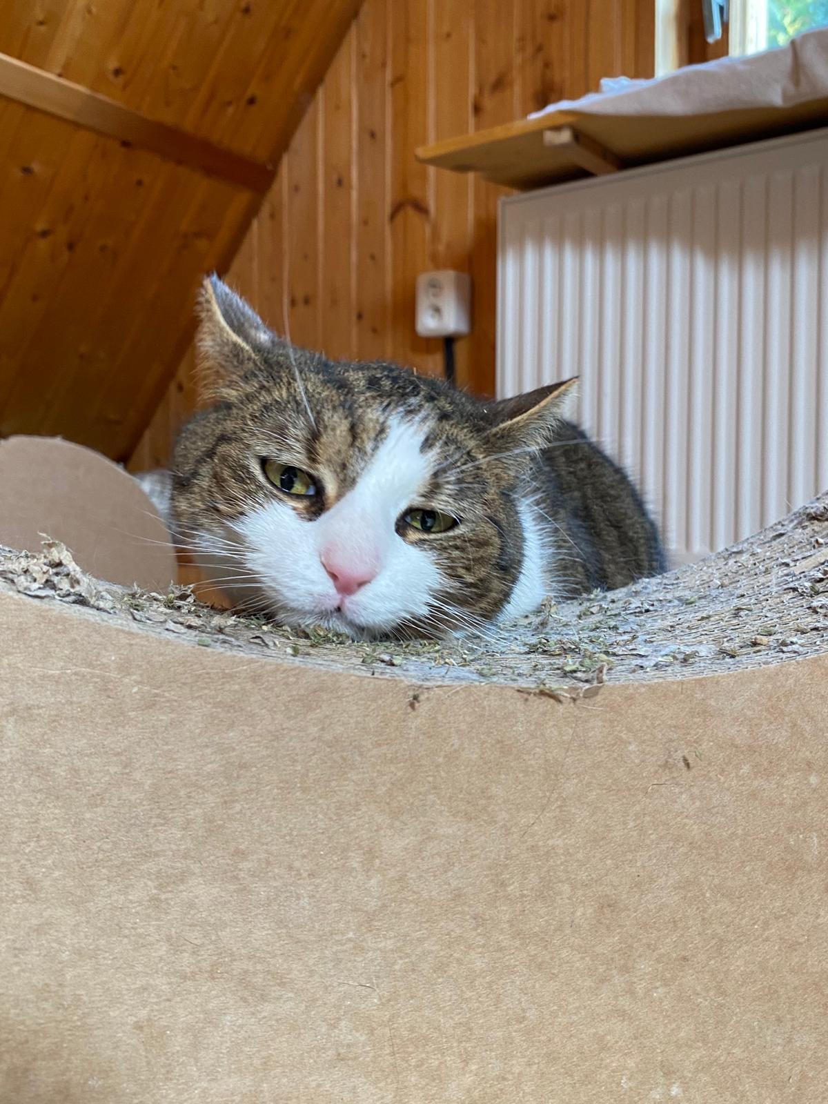 Kašpárek je pětiletý milý a jemný kocourek, který si užívá mazlení a povídání s člověkem, rád si i lebedí u člověka za krkem, i když to není žádný mrňous. I když v minulé domácnosti žil s kocourem a kočkou, ve větší skupině se necítí dobře. Byl by rád za domov s bezpečným přístupem ven, na okně tu zpívá balady o svobodě. Je očkovaný, čipovaný, kastrovaný.