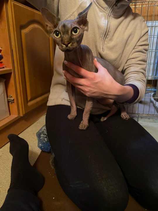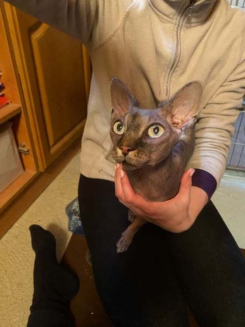 Duky je kastrovaný kocourek kanadské sphynx. Je moc milý a přítulný. Měl hezký domov, ale bohužel přestal zvládat přítomnost malých dětí. Což se projevilo čůráním na všechno myslitelné i nemyslitelné, včetně prádla na žehlení nebo svačinky pro děti. Byly vyloučeny zdravotní potíže a nezabraly ani feromonové difuzéry. Čeká ho ještě očkování a poté bude hledat domov jako domácí kočka bez malých dětí.