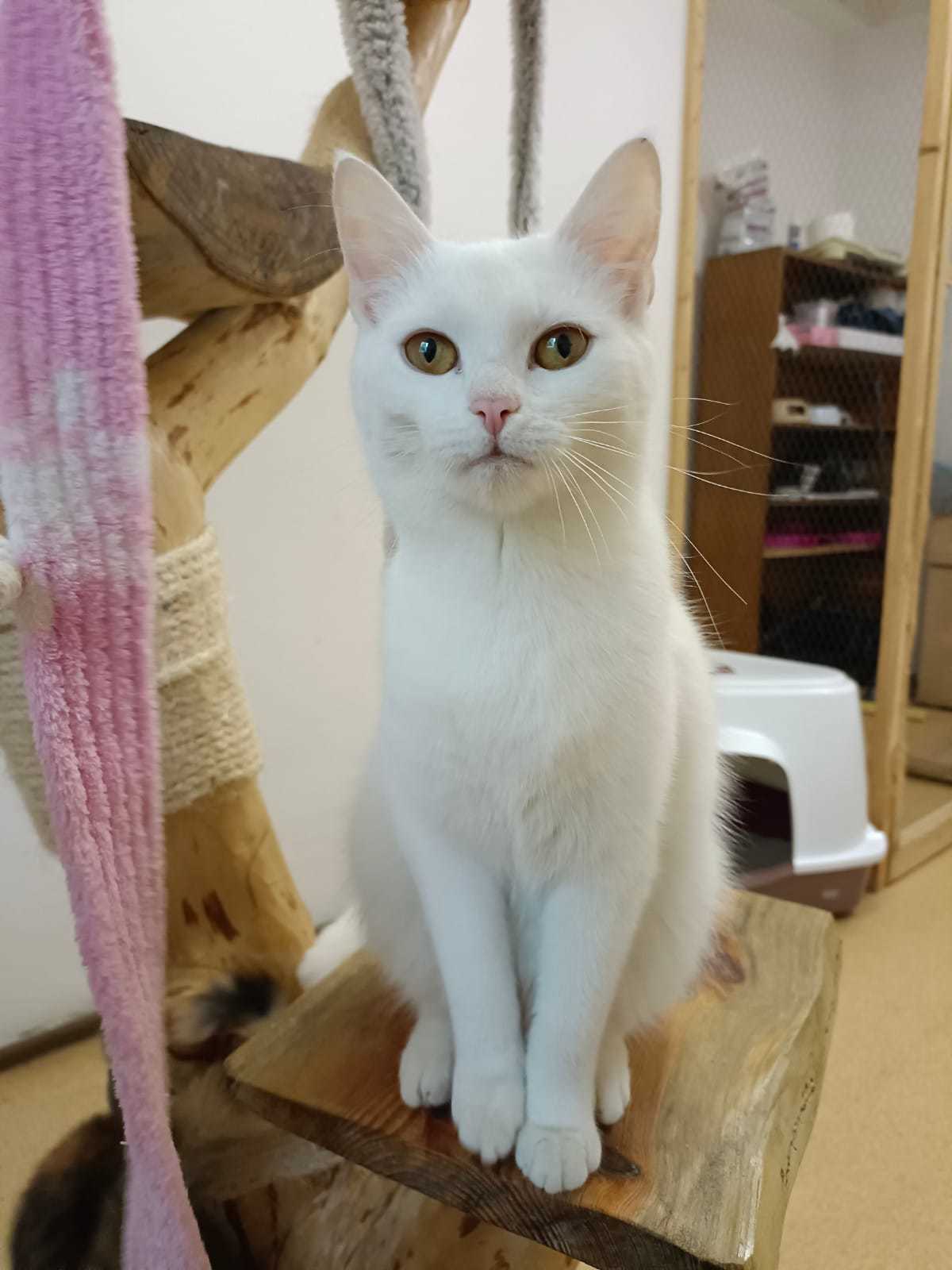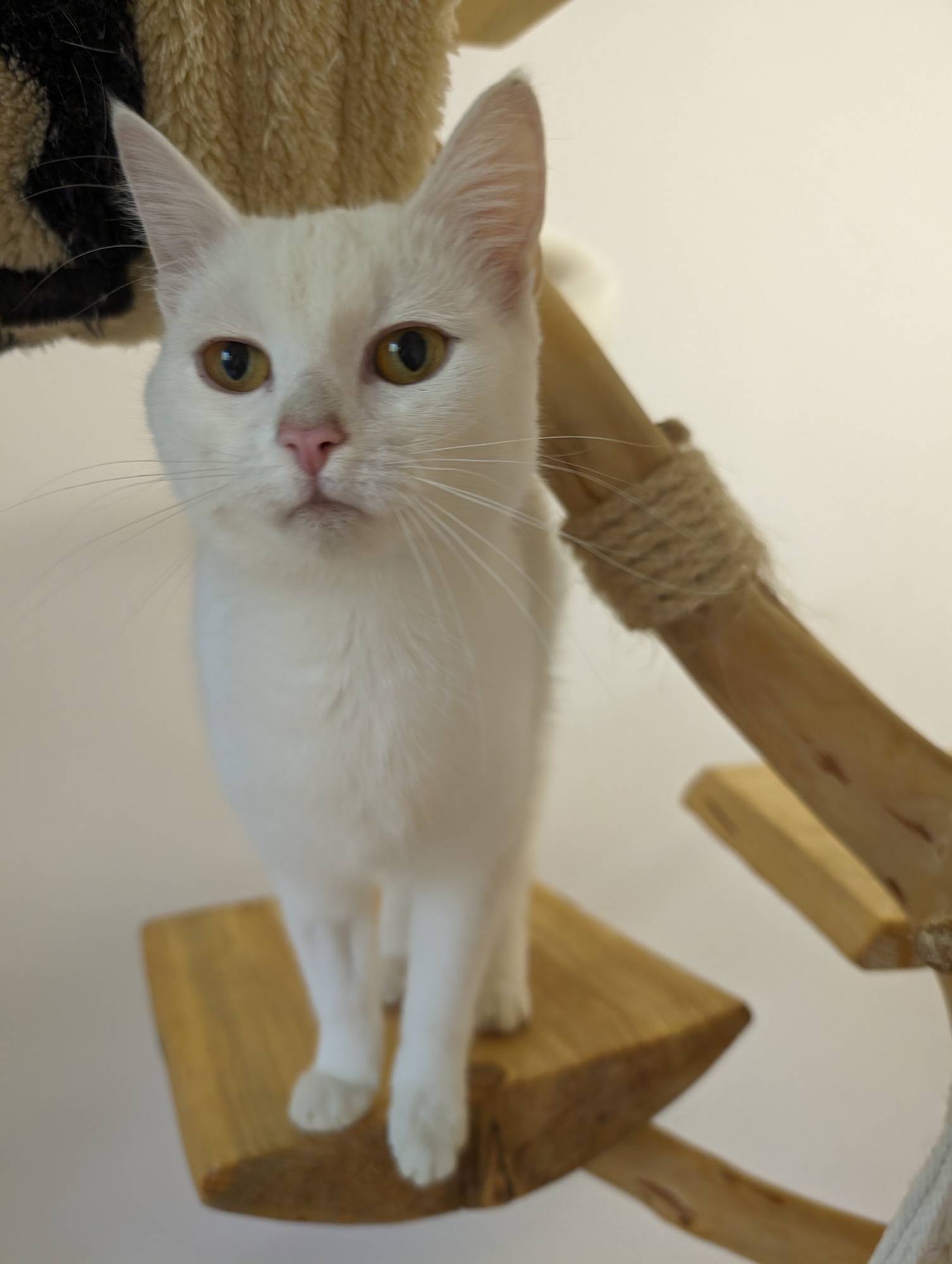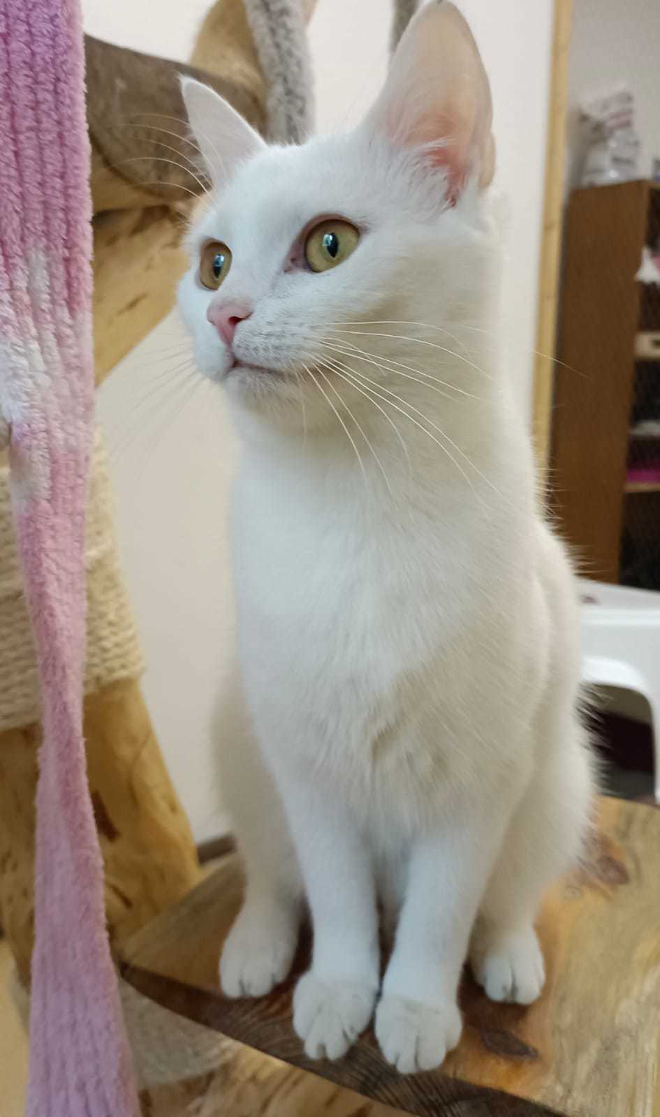 Perla je hluchá roční kočička. Je zvyklá pouze na indoor pobyt. Rozumí si dobře s Pampeliškou, bylo by hezké, kdyby mohly zůstat spolu.