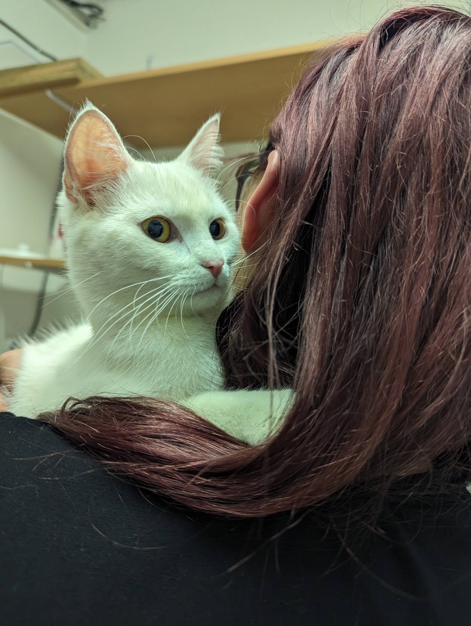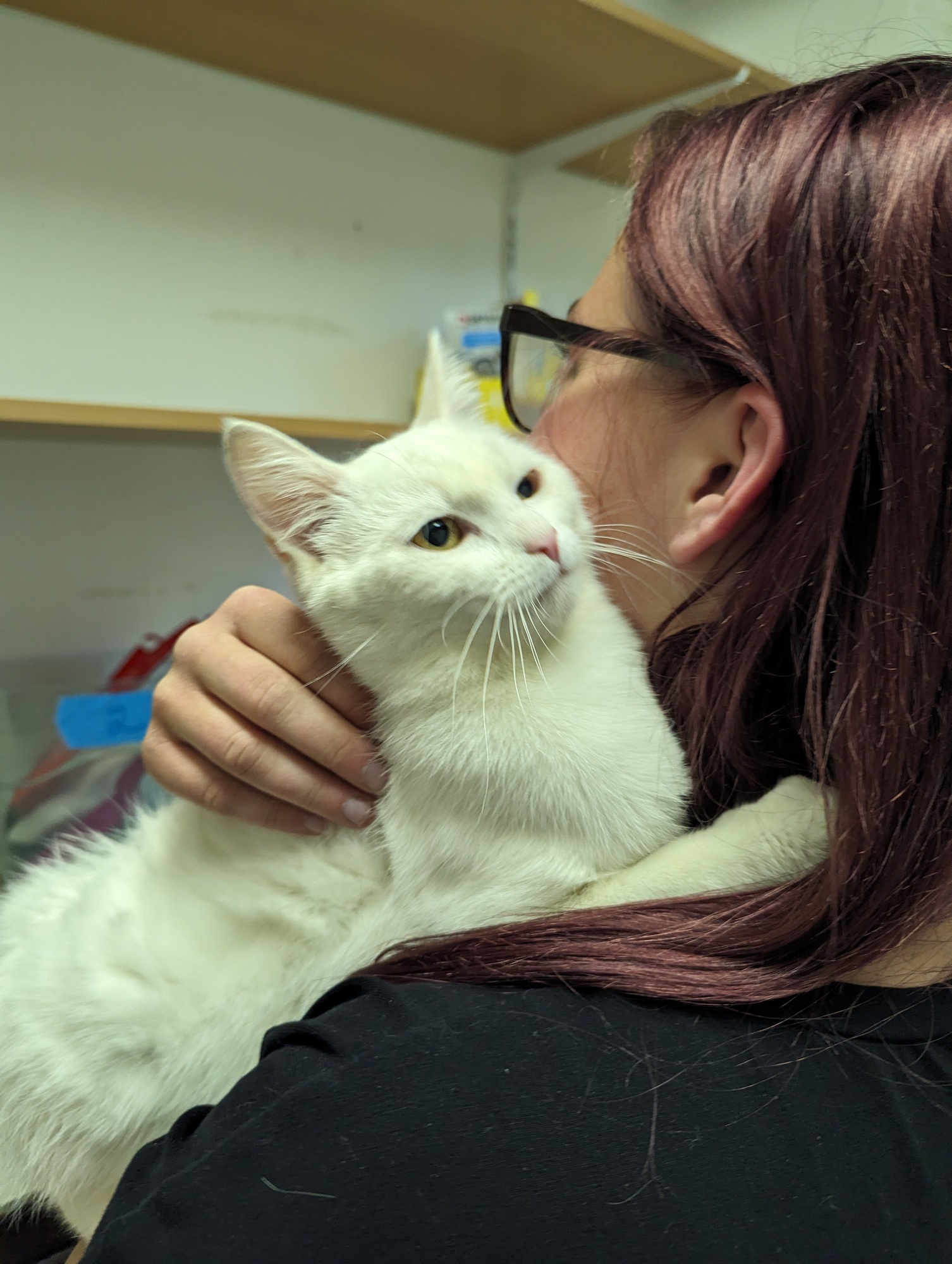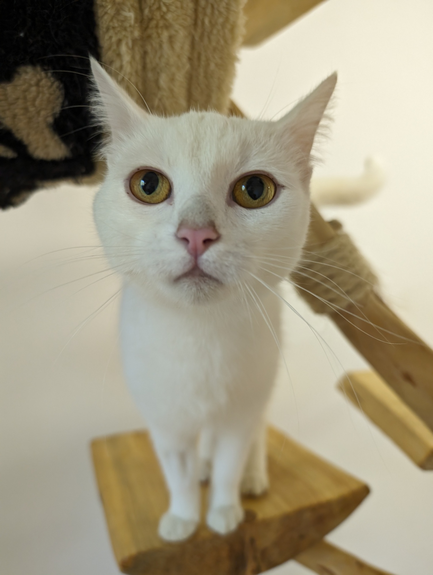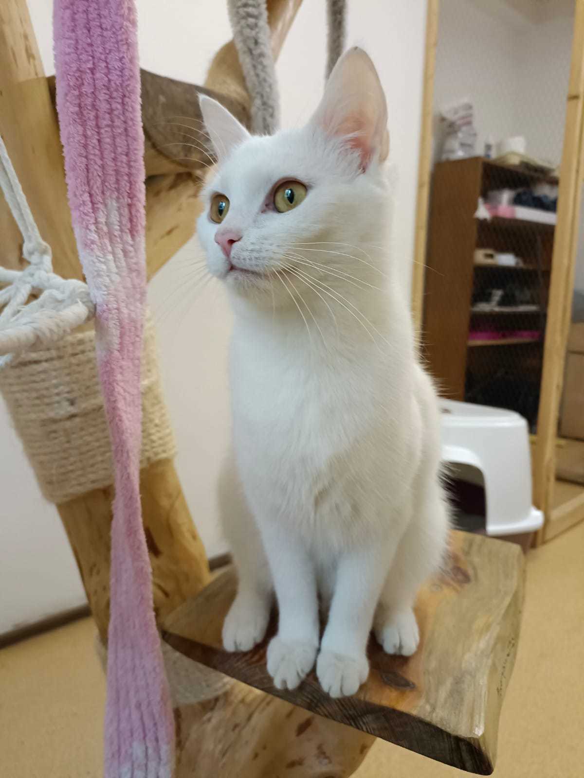Perla je hluchá roční kočička. Je zvyklá pouze na indoor pobyt. Rozumí si dobře s Pampeliškou, bylo by hezké, kdyby mohly zůstat spolu.